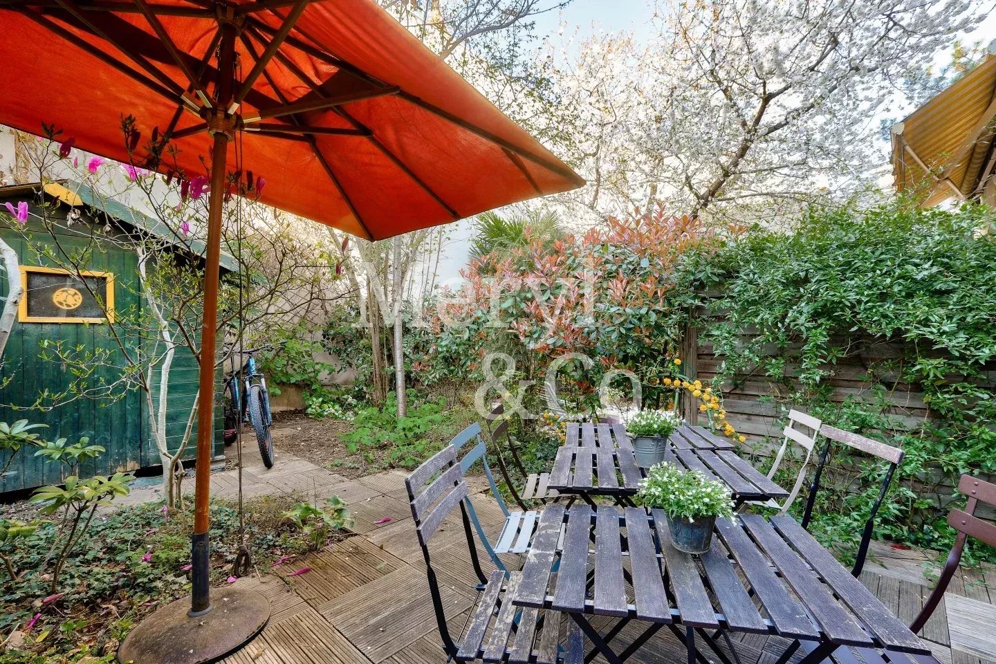 La maison bénéficie d’une luminosité remarquable, grâce à ses nombreuses ouvertures et ses trois espaces extérieurs (jardin + 2 terrasses), rare à Paris.