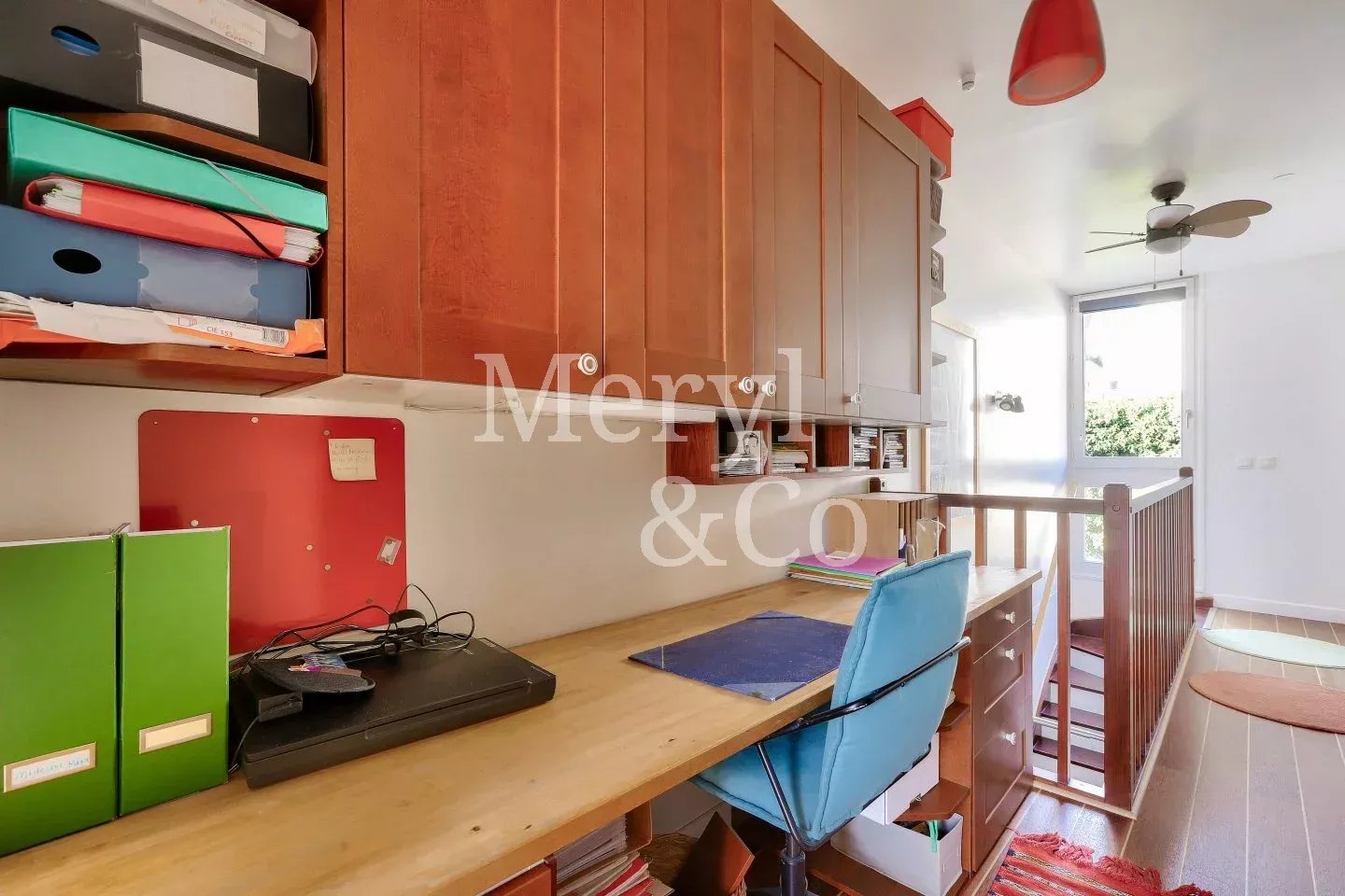 Au dernier niveau, deux autres chambres confortables, un coin bureau idéal pour le télétravail, ainsi qu’une salle de bains avec WC forment un espace nuit parfaitement adapté à une vie de famille.