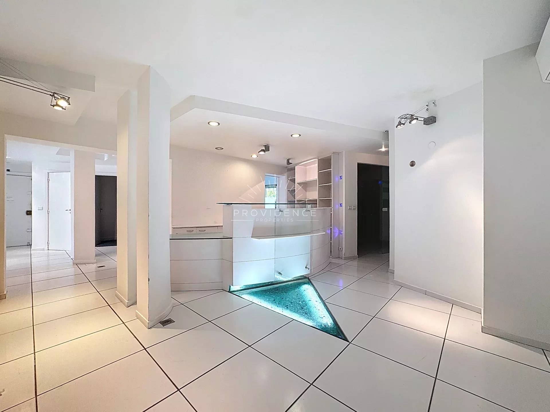 À proximité immédiate de la Mairie du Cannet, dans une résidence de grand standing sécurisée avec gardien, piscine et tennis, découvrez ce magnifique rez-de-jardin traversant d’environ 225 m² offrant de très beaux volumes.