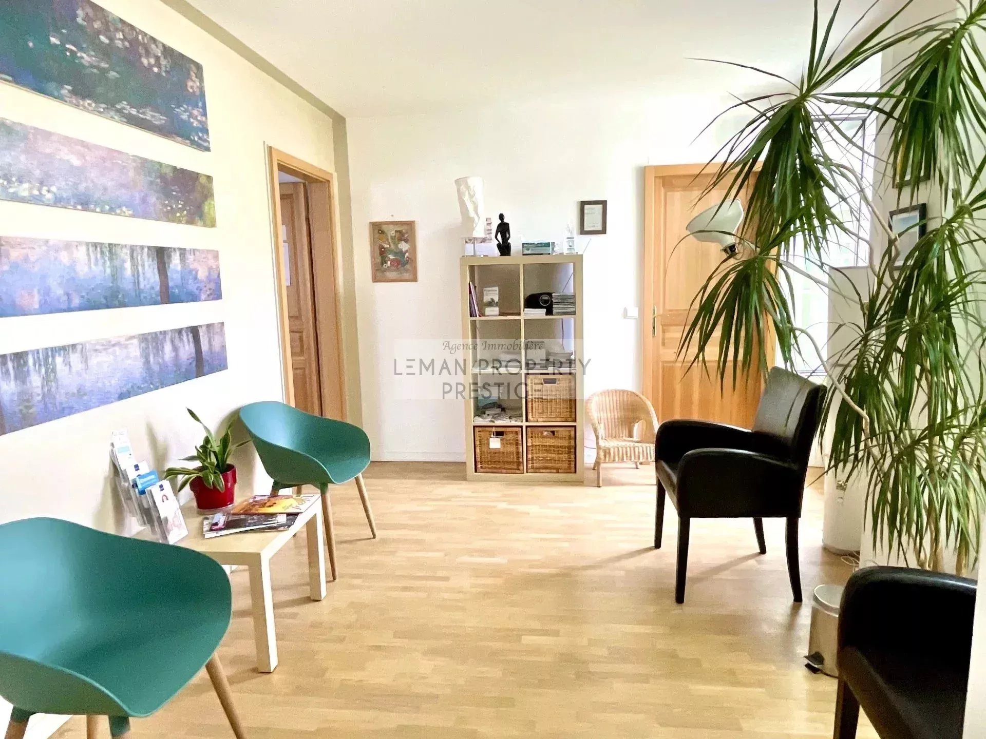 L'appartement de 74,3m2 est au premier étage avec ascenseur et dispose d'une grande salle d'attente et de trois cabinets dont deux avec salle de douche et le troisième un lavabo, ainsi que des wc indépendants et une place de parking au sous-sol.