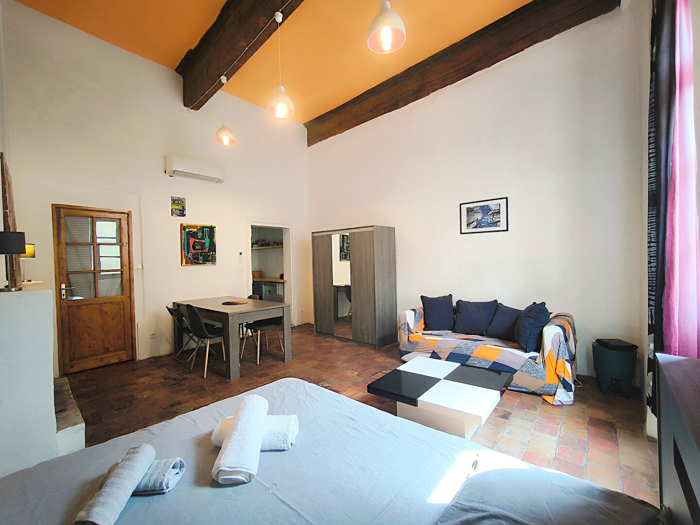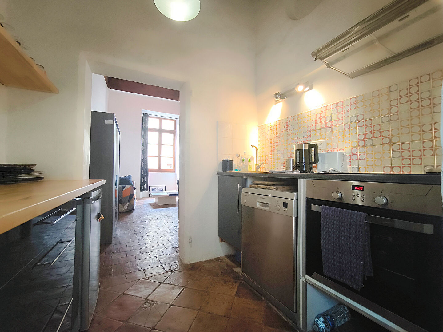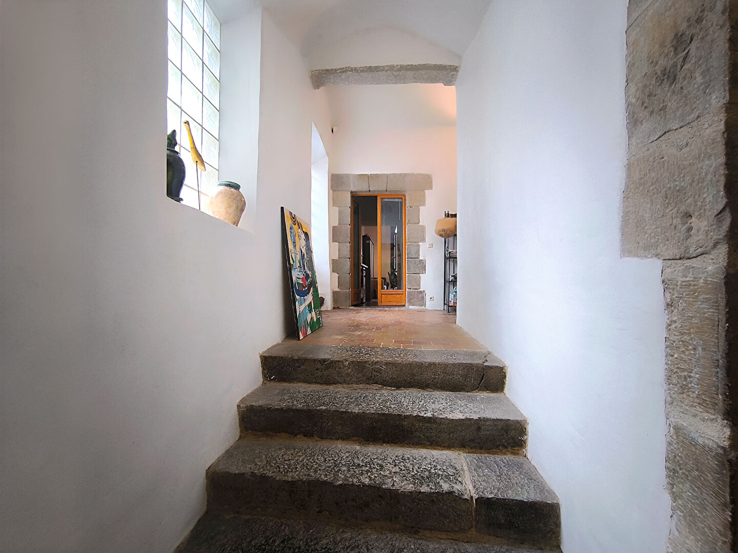 Maison avec terrasse et vue sur l'abbaye à vendre à Lagrasse village classé - Au centre du village historique de Lagrasse, bâtisse en pierre de trois niveaux, environ 150 m² habitables. Rez-de-chaussée avec grande entrée et cheminée en pierre. Studio de 37 m² au premier étage avec espace nuit, coin cuisine et salle d'eau. Au deuxième, loft de 42 m² avec vue directe sur l'abbaye et l'église. Terrasse privative sur le toit. Cave voûtée de 35 m². Belle hauteur sous plafond, escalier ancien, charpente apparente. Maison exploitée en location saisonnière, bon rendement touristique. Convient également à un projet de résidence principale ou secondaire. Sabine MORALES (EI) Agent Commercial - Numéro RSAC : 804186021 - CARCASSONNE.
