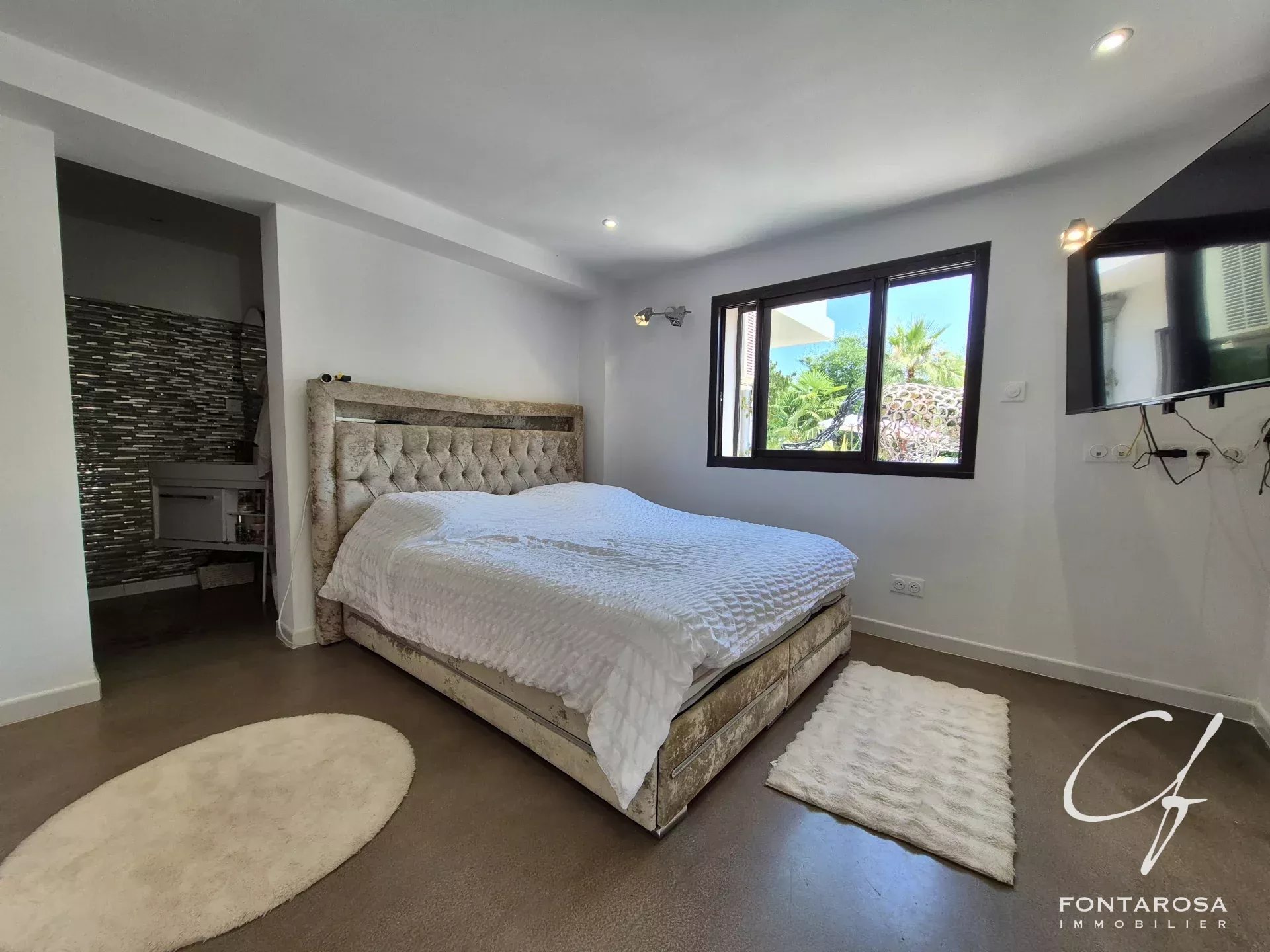 All'interno, sarete sedotti da un ampio soggiorno con soffitti alti, una cucina moderna completamente attrezzata e quattro grandi camere da letto, ognuna con bagno privato con doccia e ampio spogliatoio.