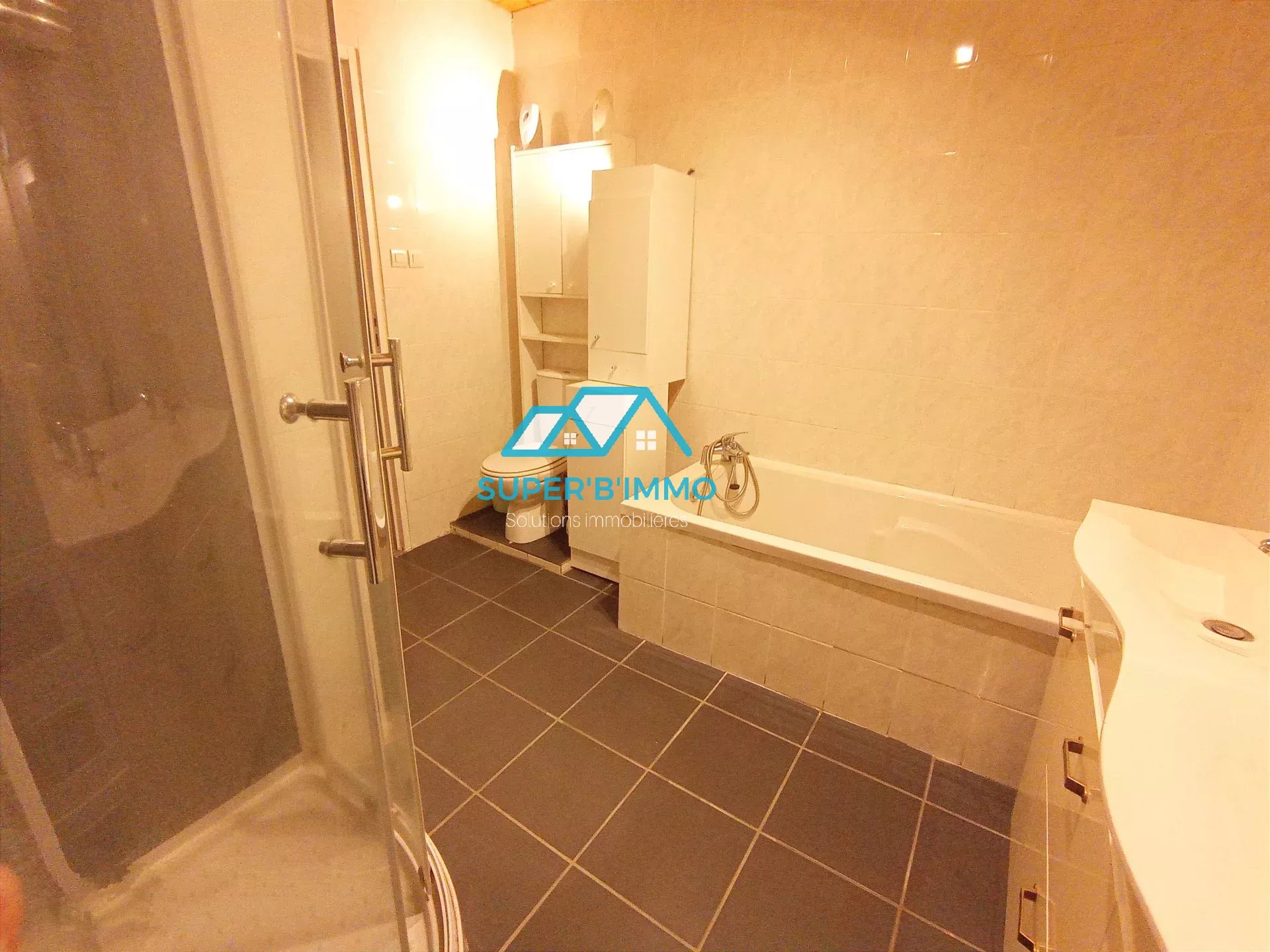 - Au 1er étage : deux grandes chambres dont une avec terrasse et une salle de bains avec douche et WC.