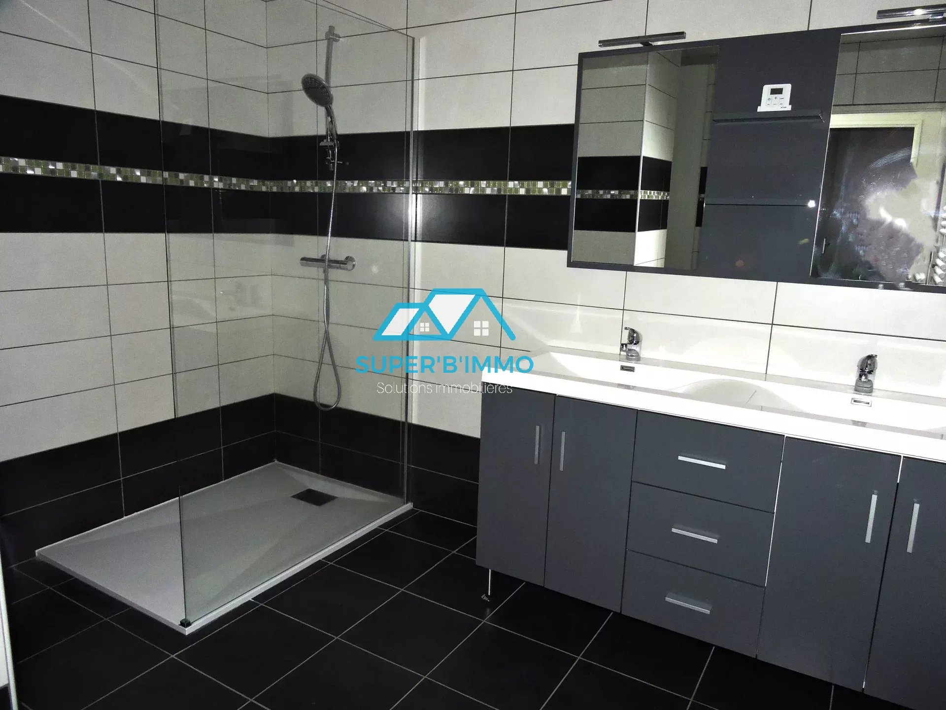 Construction de qualité avec de grandes ouvertures, une bonne isolation, double vitrage, volets roulants ainsi qu'une pompe à chaleur Atlantic.