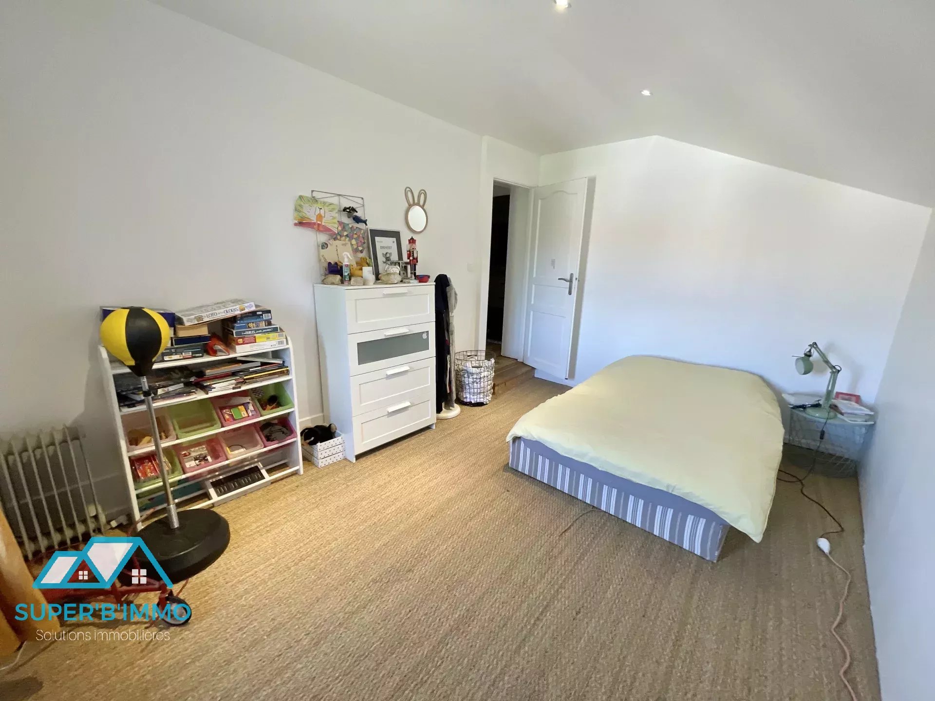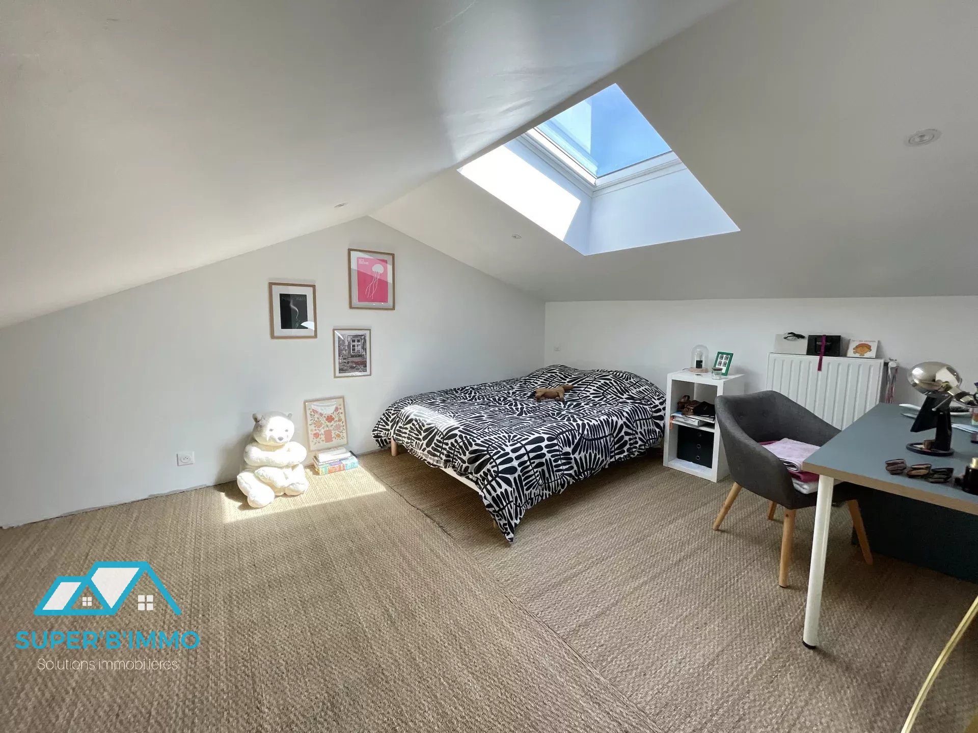 La maison dispose de quatre grandes chambres lumineuses, dont une avec sa propre salle d'eau, idéales pour accueillir une famille nombreuse. Chaque chambre offre un espace confortable, parfait pour la détente et le repos. La pièce de vie principale est conviviale et s'ouvre sur de vastes fenêtres, laissant entrer une lumière naturelle abondante.