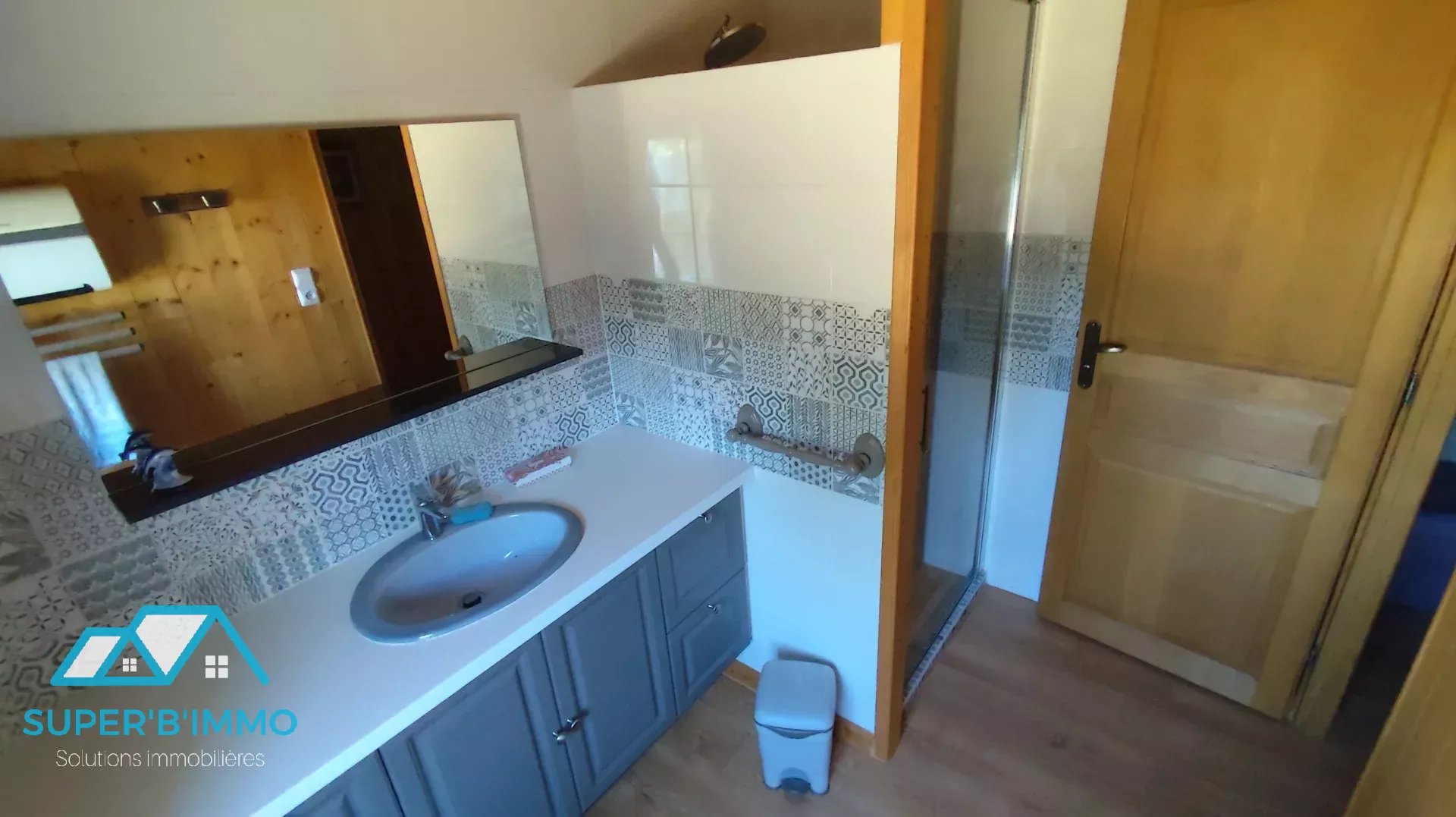 En rdc belle pièce de vie trés lumineuse avec cuisine équipée et cheminée. Une chambre et une salle de douche/wc viennent compléter ce niveau.
