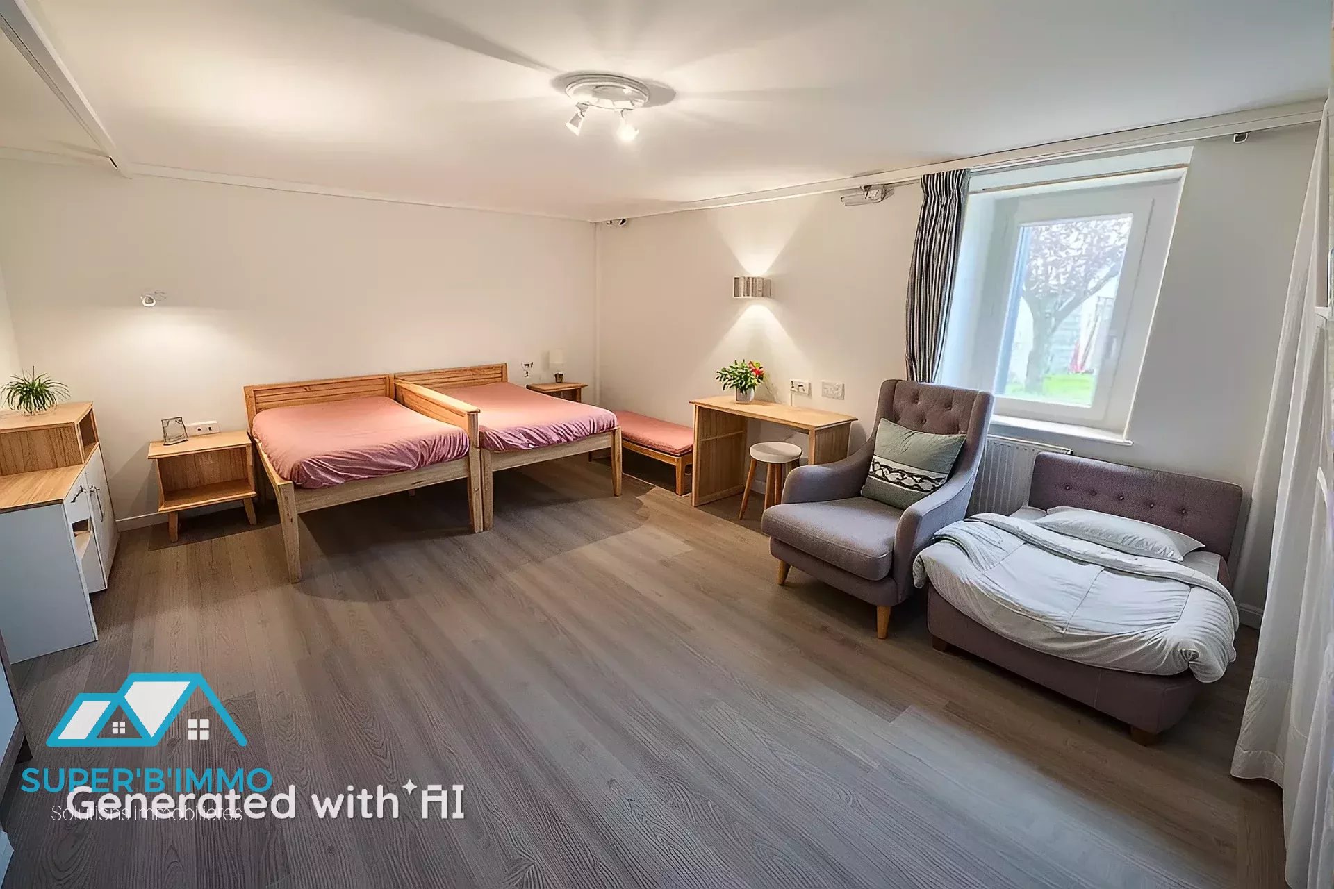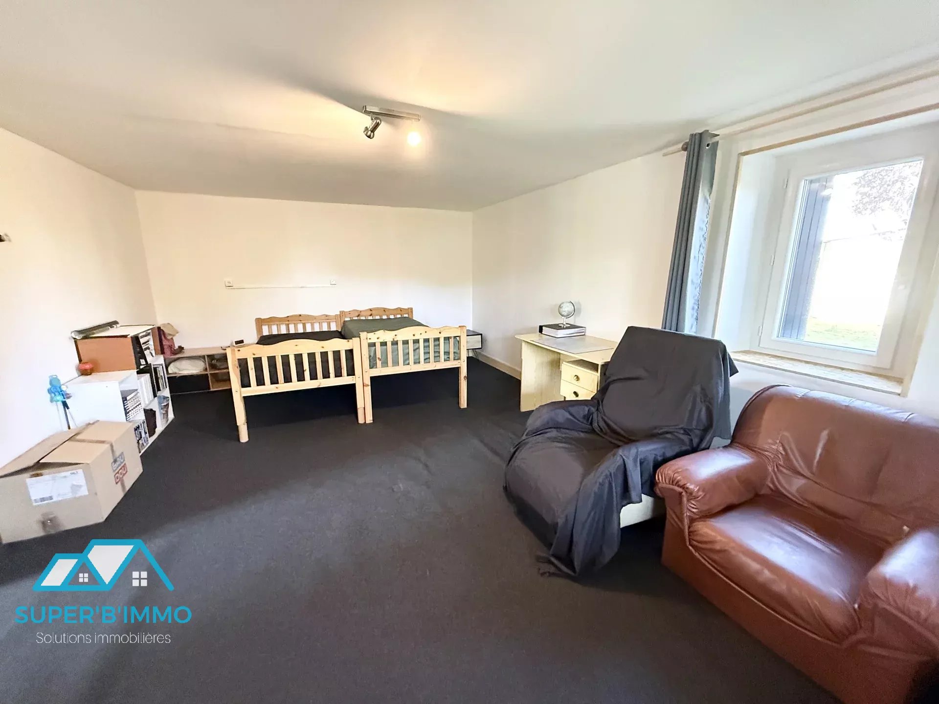 La maison propose trois chambres confortables au premier étage et un logement indépendant au rez-de-chaussée avec deux chambres, salle d'eau avec WC et une pièce de vie lumineuse avec coin cuisine. Chaque espace est conçu pour optimiser le confort et la tranquillité de ses occupants.