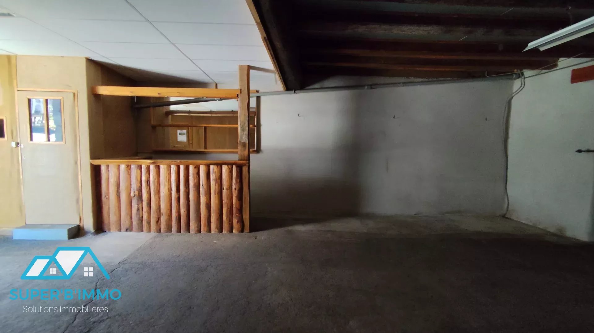 Au rez-de-chaussée : un grand garage de 60 m2 avec un atelier de 25 m2 et une cave chaufferie de 25 m2 et également un wc indépendant.