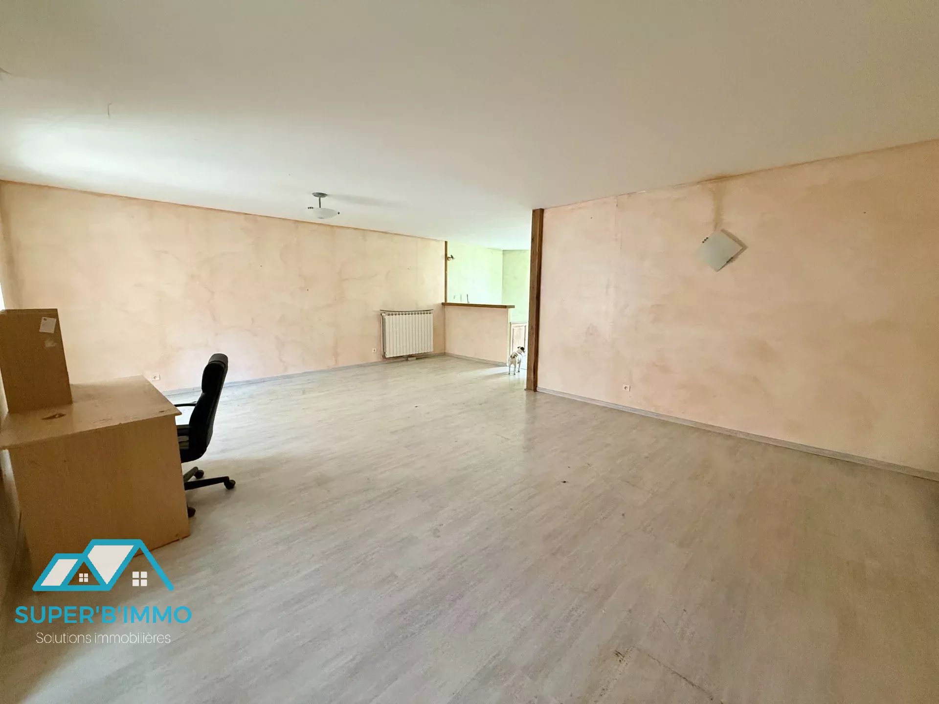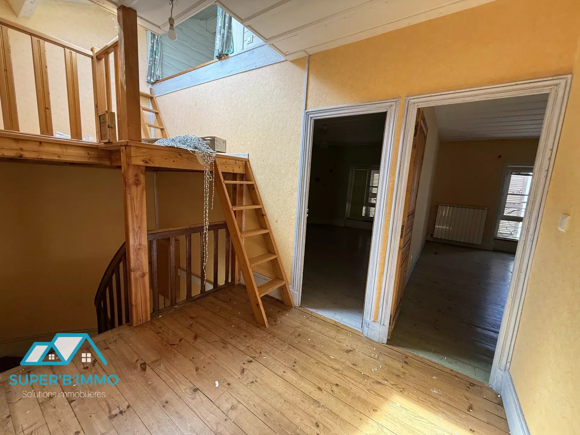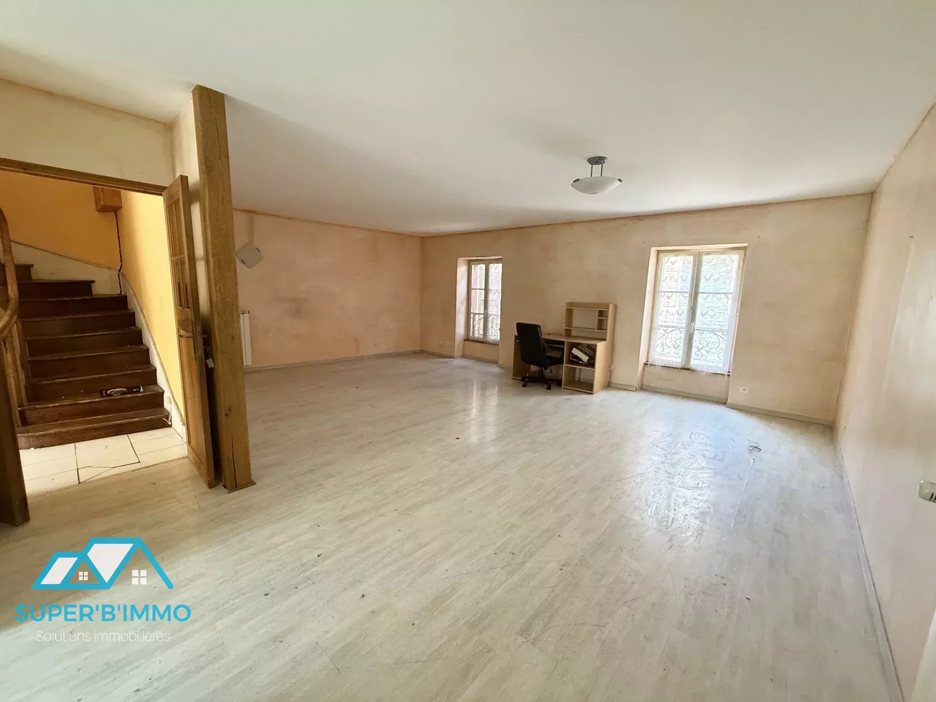 À l'étage, un appartement de type 4 en duplex, comprenant une pièce de vie ouverte avec une cuisine et un séjour de 35 m², trois grandes chambres, un dégagement, une buanderie avec WC et une salle de bains. Le bien dispose d'une cour d'environ 20 m².