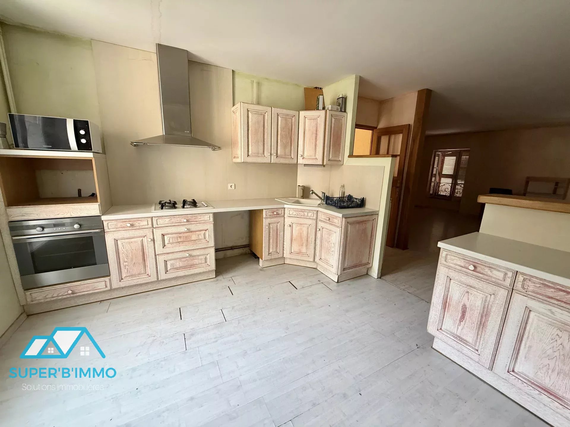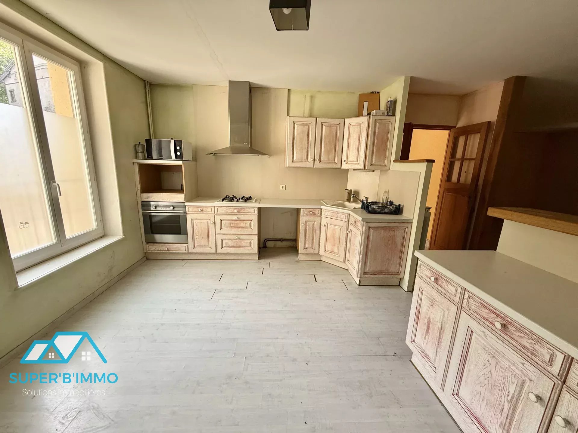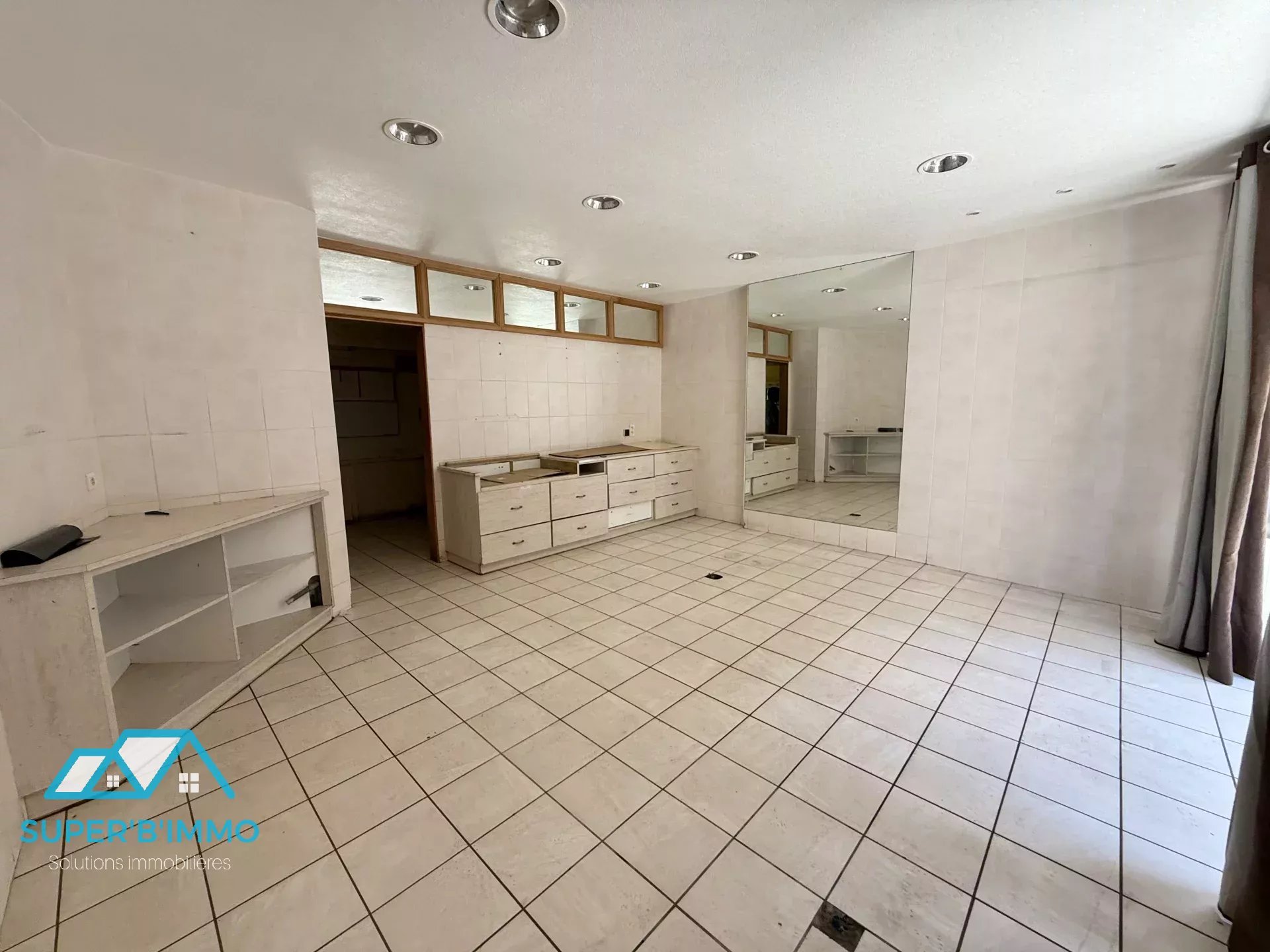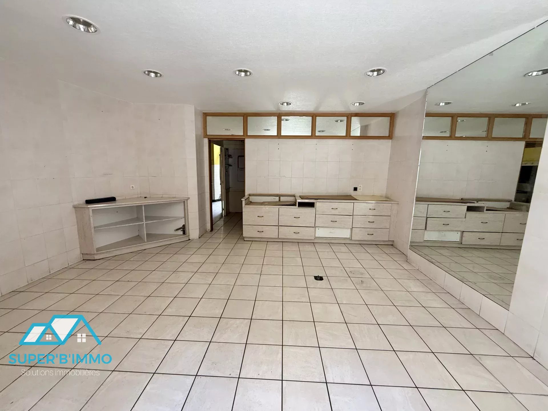 - au rez-de-chaussée : une ancienne boucherie avec le magasin, un bureau, une cuisine et une chambre froide.