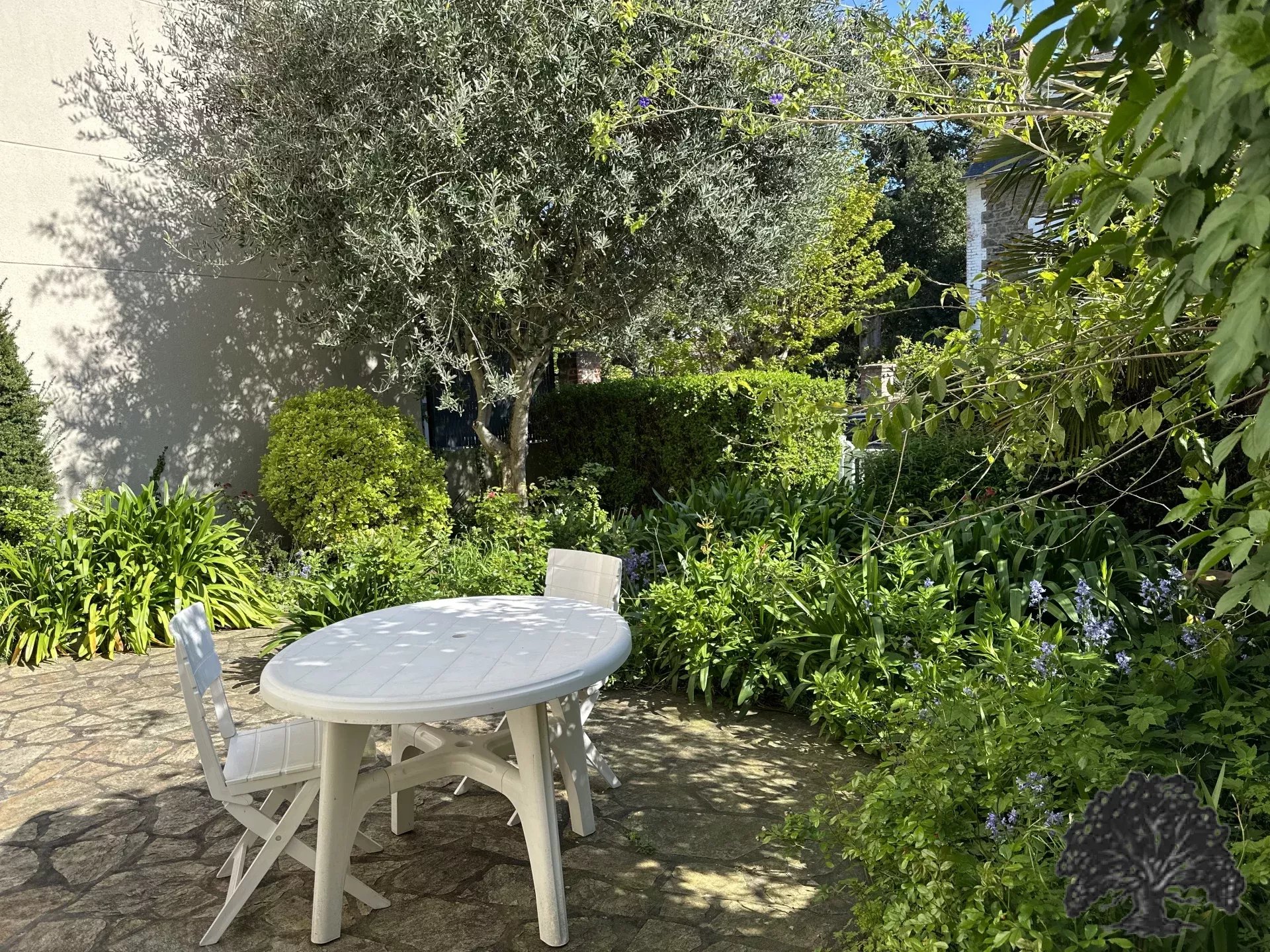 Le jardin arboré est orienté au Sud.