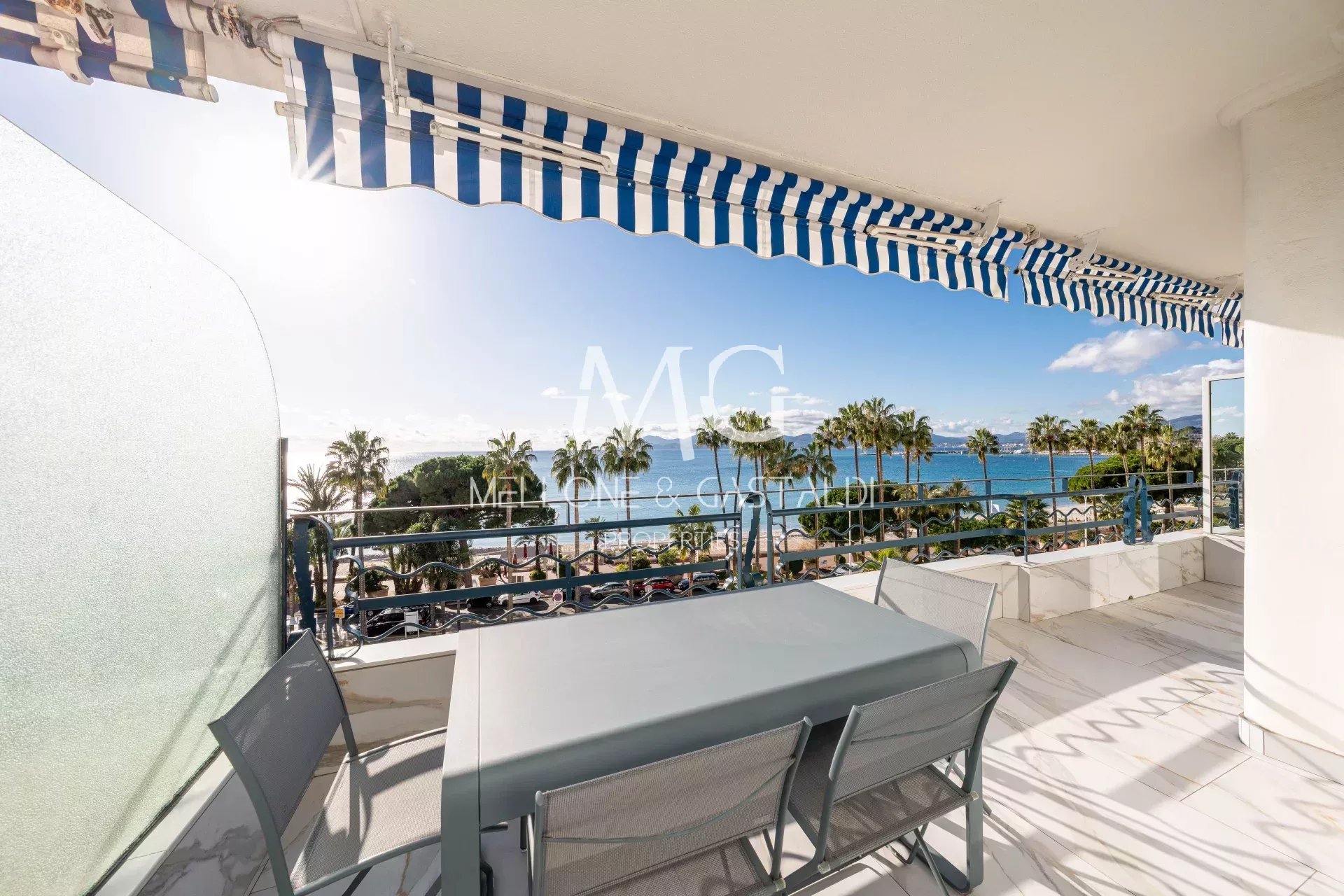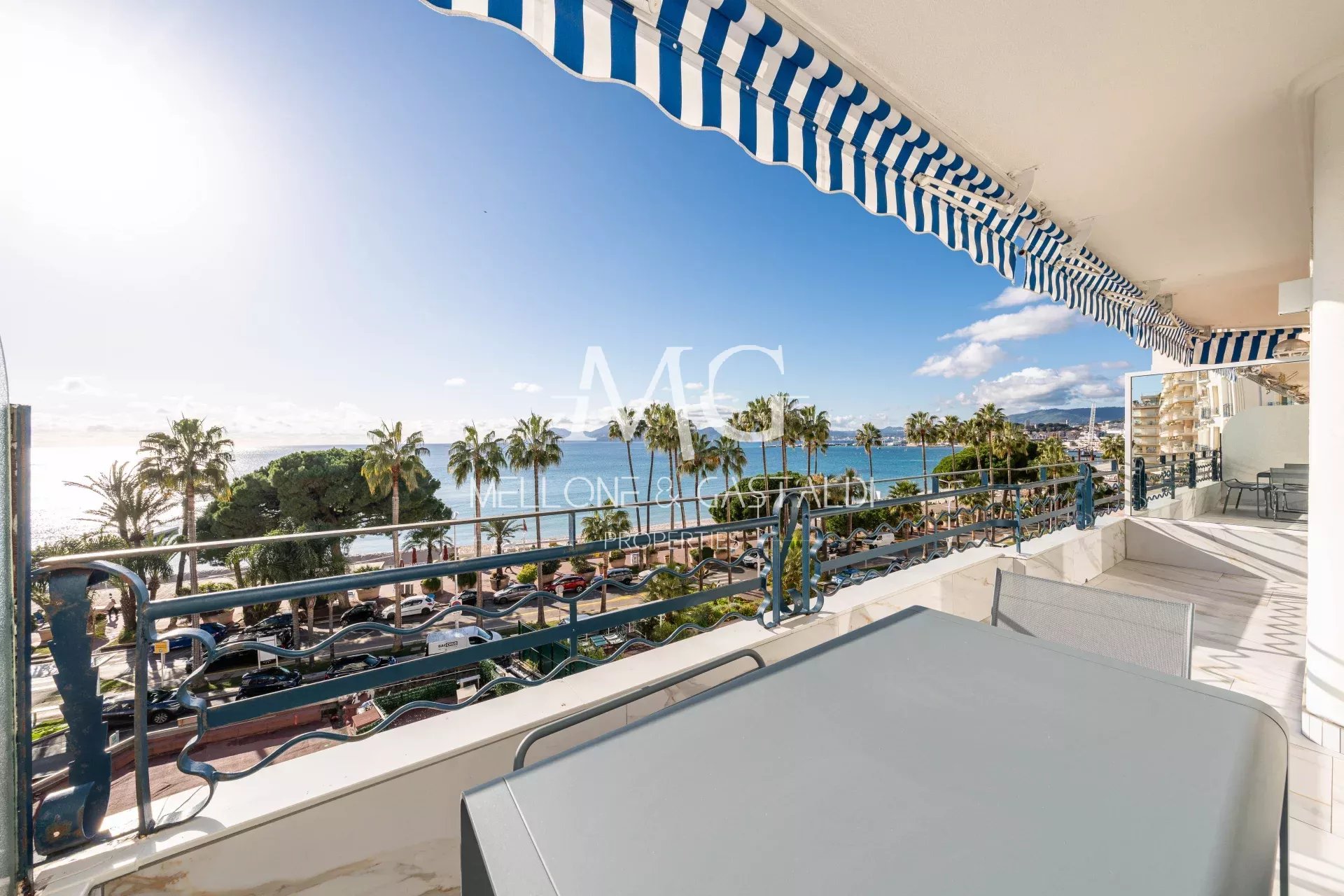 Idéalement situé sur la prestigieuse Croisette, à quelques pas du Palais des Festivals, ce superbe appartement de 78 m², entièrement rénové en 2024 avec des matériaux haut de gamme, se trouve au sein d’une résidence sécurisée avec gardien La pièce de vie, baignée de lumière, intègre une élégante cuisine ouverte et s’ouvre sur une spacieuse terrasse de 15 m² exposée plein sud, offrant une vue mer panoramique exceptionnelle L’espace nuit se compose d’une suite parentale avec dressing, salle de bains avec toilettes et accès direct à la terrasse, ainsi que d’une chambre d’amis bénéficiant de sa salle de douche privative. Un toilette invité vient compléter ce bien d’exception Un parking en sous-sol de 17 m², situé dans une résidence voisine (valeur estimée 200 000 €), ainsi qu’une cave, sont inclus
