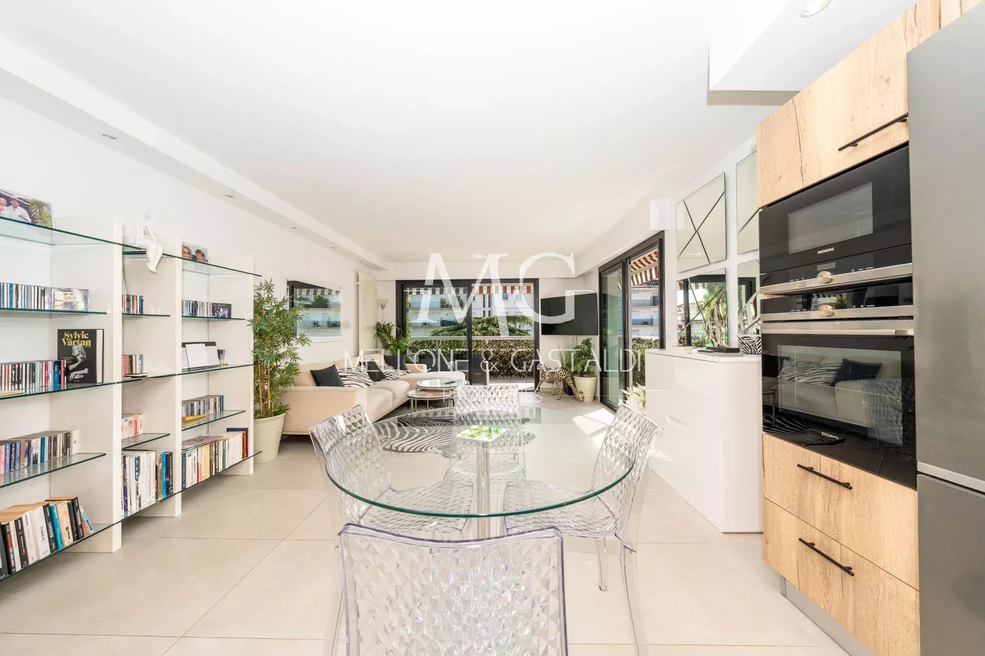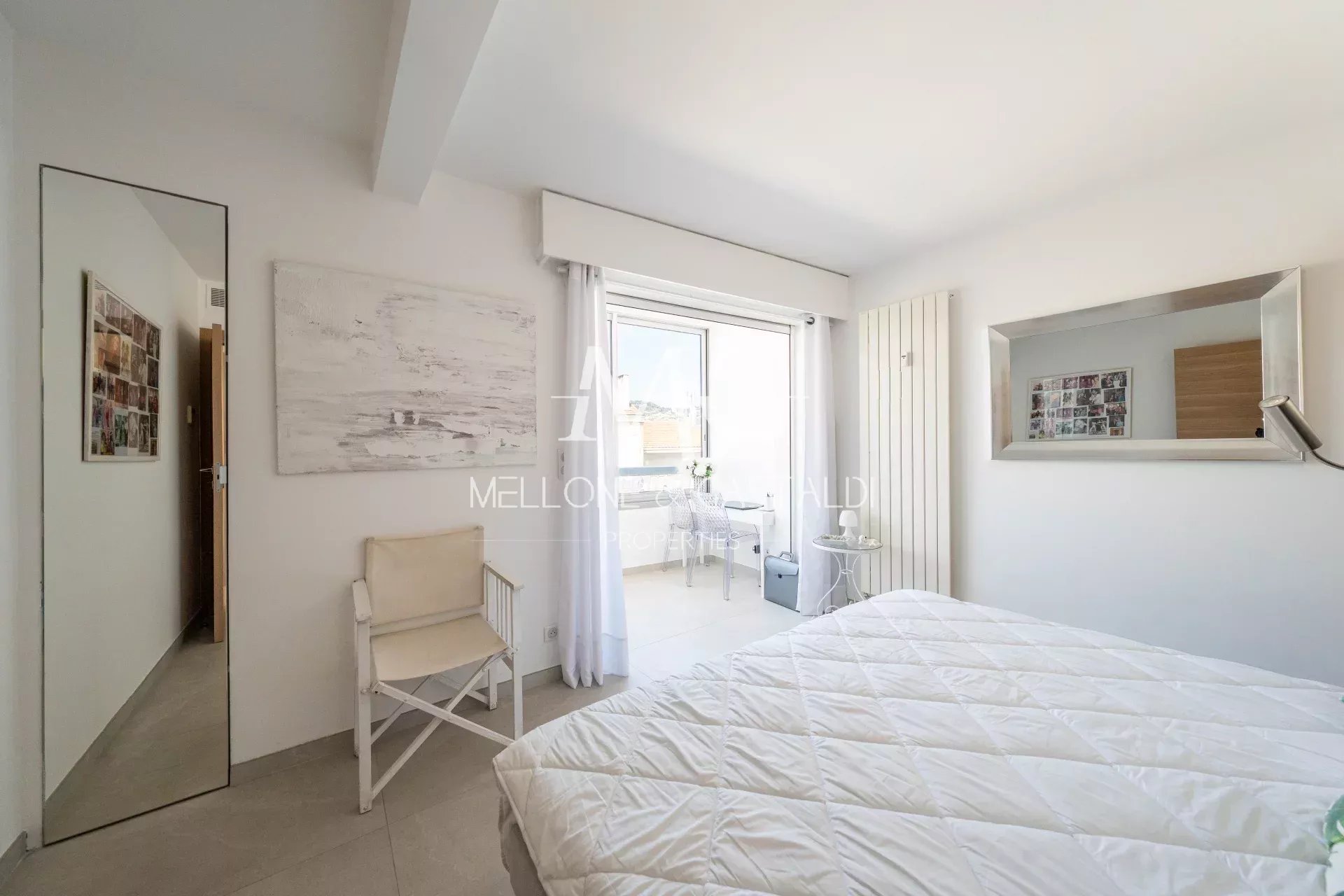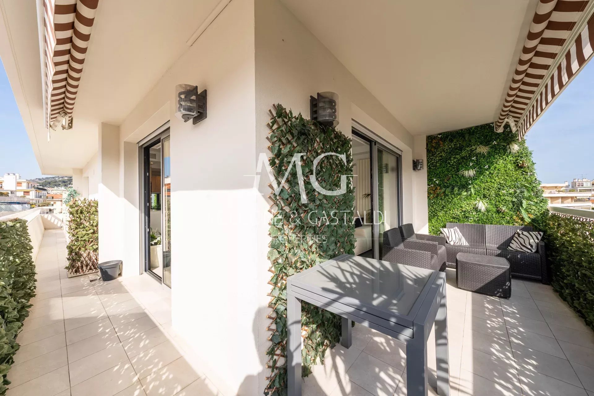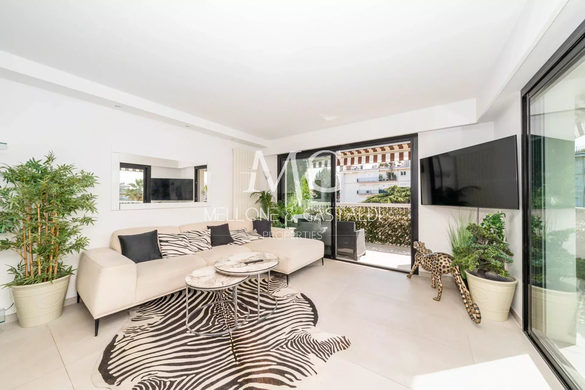 Idéalement situé en plein centre de Cannes, à deux pas de la rue d’Antibes et du Marriott, ce magnifique appartement traversant se trouve au sein d’une résidence de standing, en avant-dernier étage D’une surface habitable de 79,12 m² (74,33m² Loi Carrez), il offre de beaux volumes et un agencement optimisé. L’entrée mène à un vaste séjour lumineux avec une cuisine contemporaine entièrement équipée. Deux belles chambres en suite viennent compléter ce bien : l’une avec salle de douche, l’autre avec salle de bain et WC. Un WC invité est également présent La terrasse d’angle, baignée de soleil, permet de profiter d’une vue dégagée sur la ville Entièrement rénové avec goût, cet appartement lumineux et confortable vous séduira par sa situation exceptionnelle et la qualité de ses prestations. Restaurants, plages, commerces et animations sont accessibles à pied Un garage au sein de la résidence est disponible en option