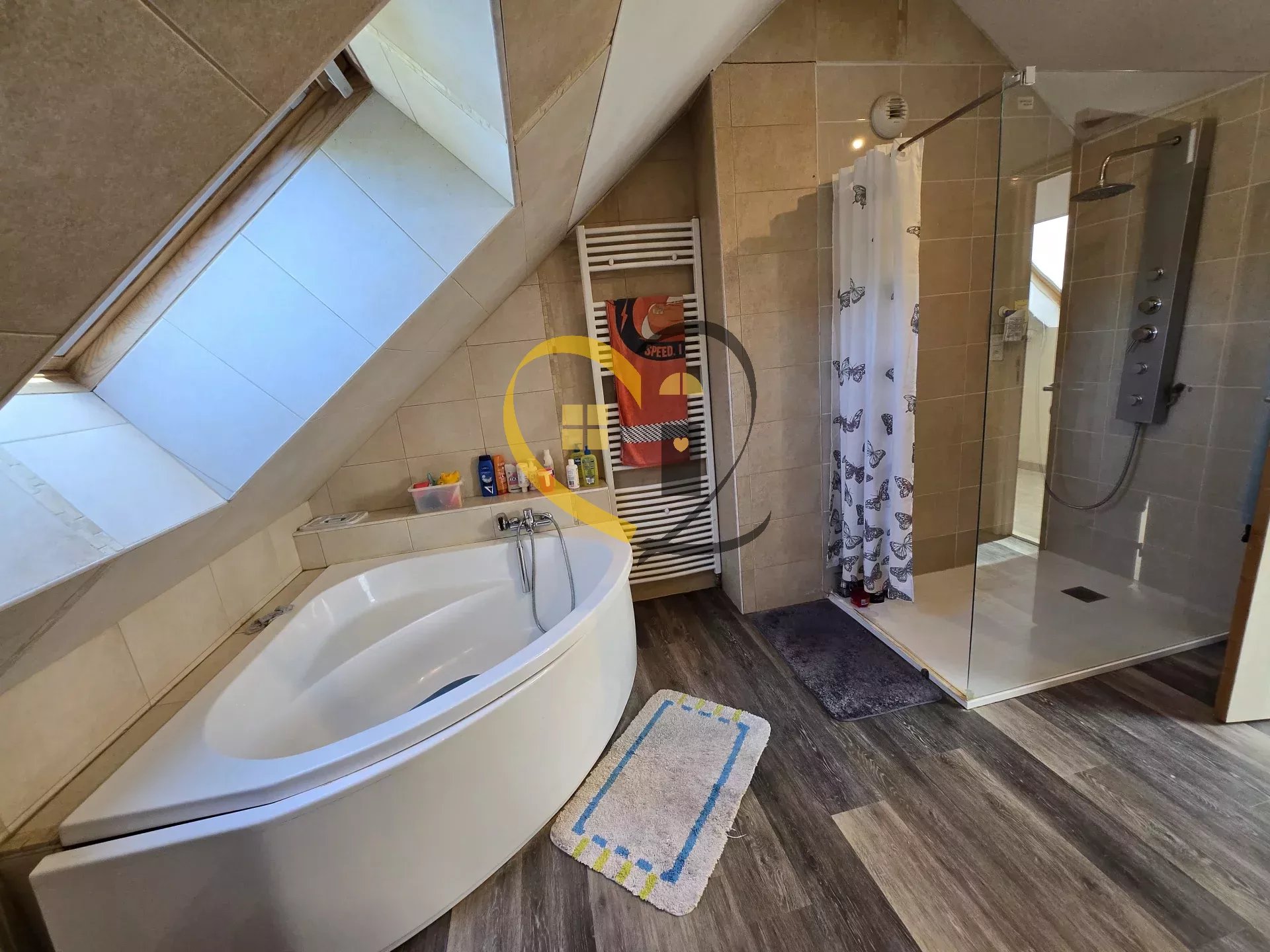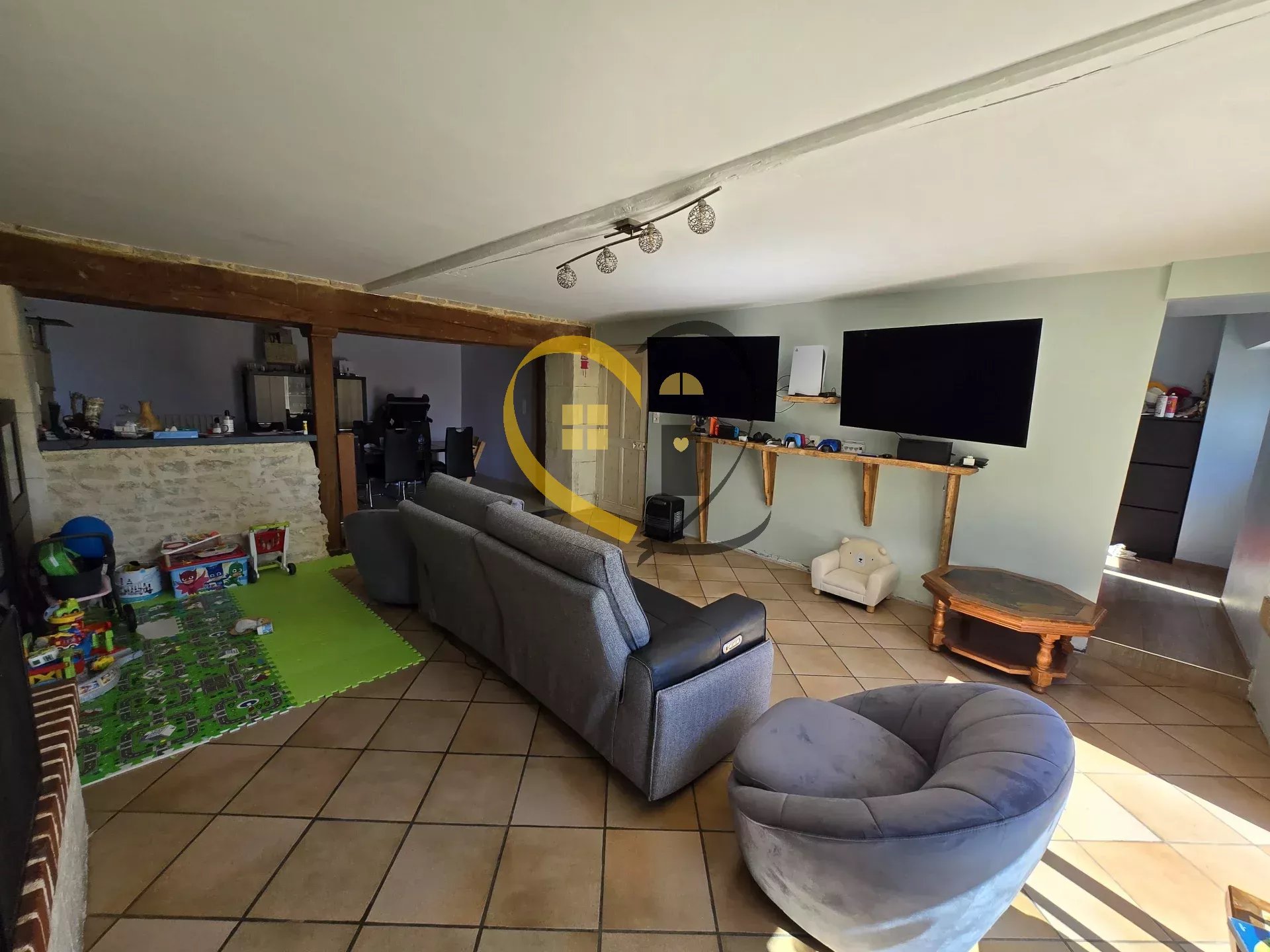Au rez-de-chaussée. l’entrée mène à un vaste salon lumineux. une salle à manger chaleureuse et une cuisine indépendante. fonctionnelle pour les repas du quotidien. Une buanderie. un local technique et des toilettes séparées viennent compléter ce niveau.