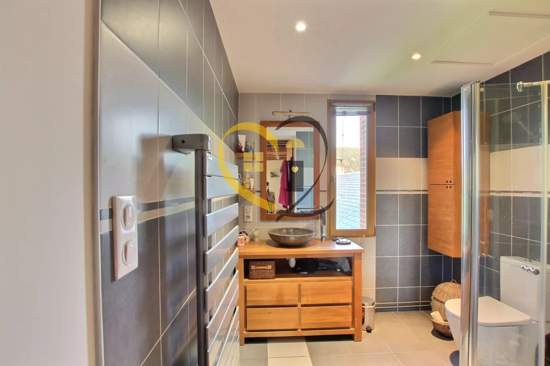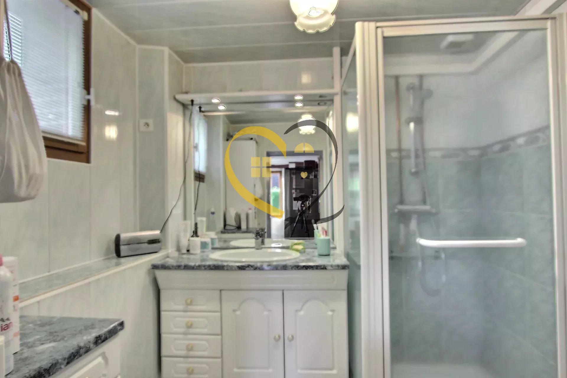 - Salle d’eau avec douche et sèche-serviette