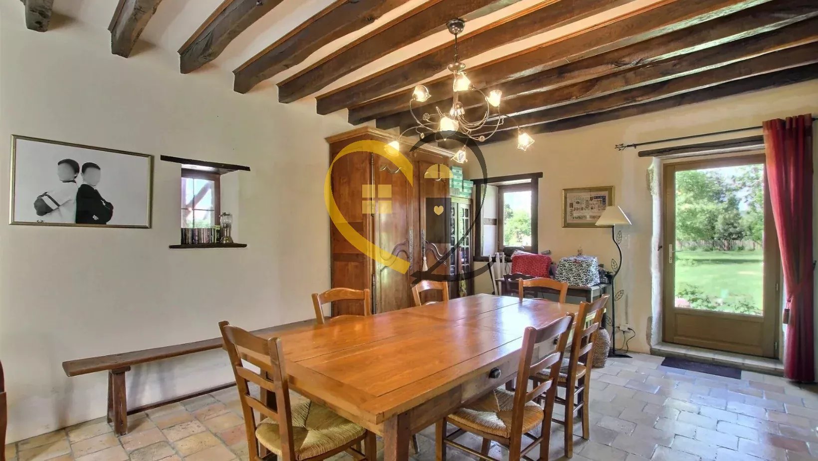 - Salle à manger (23m²) avec une lumière traversante et un sol en terre cuite