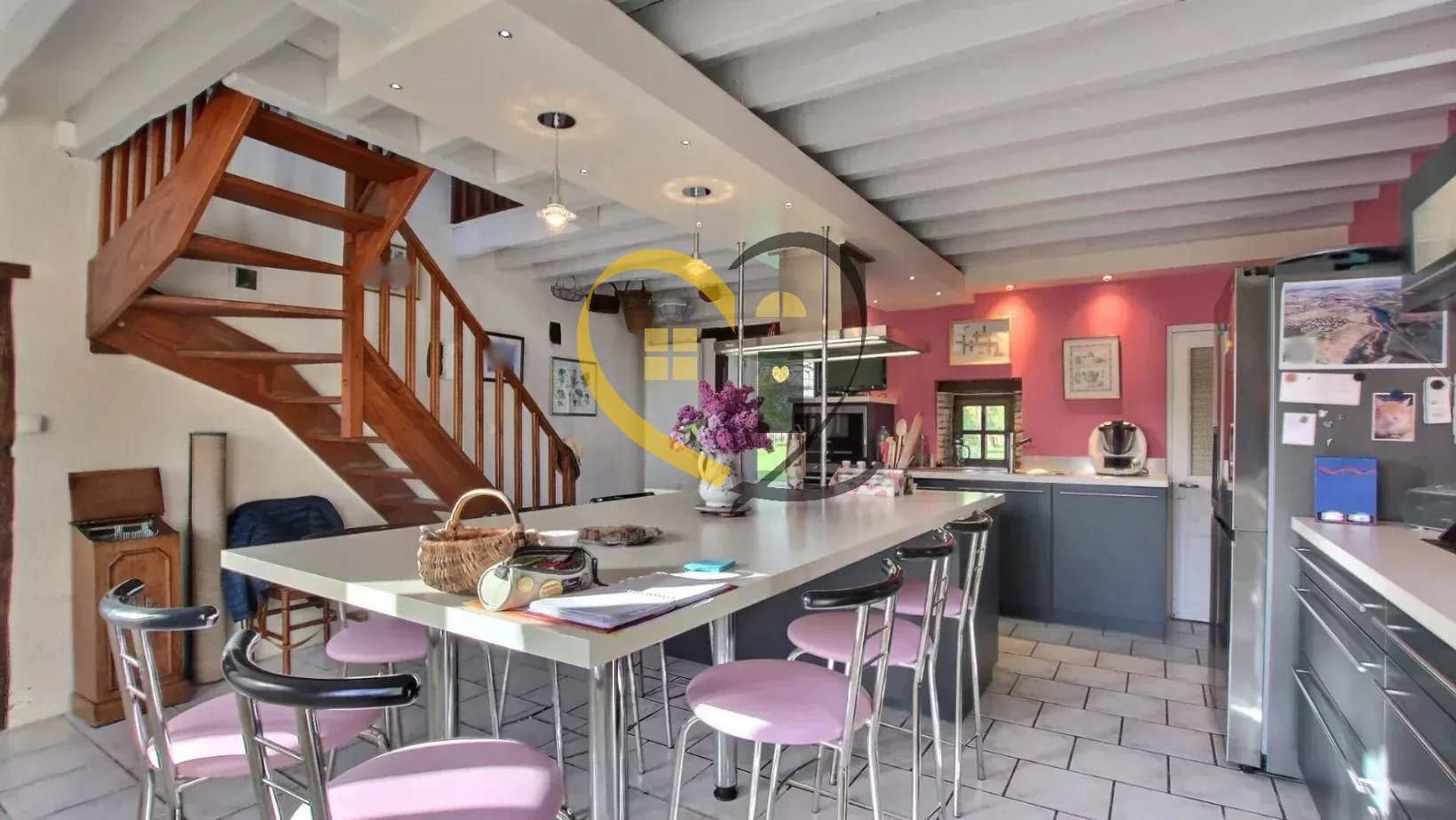 - Cuisine équipée (29 m²) au design contemporain et lignes épurées (réalisation sur mesure)