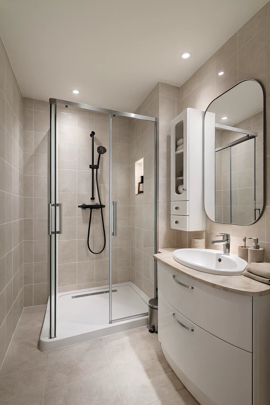Une salle d’eau, WC séparés, buanderie et cellier
