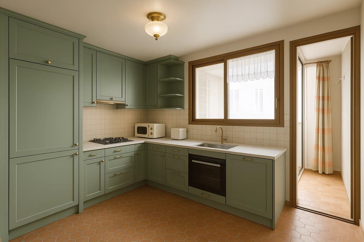 Une cuisine indépendante également dotée d’une loggia