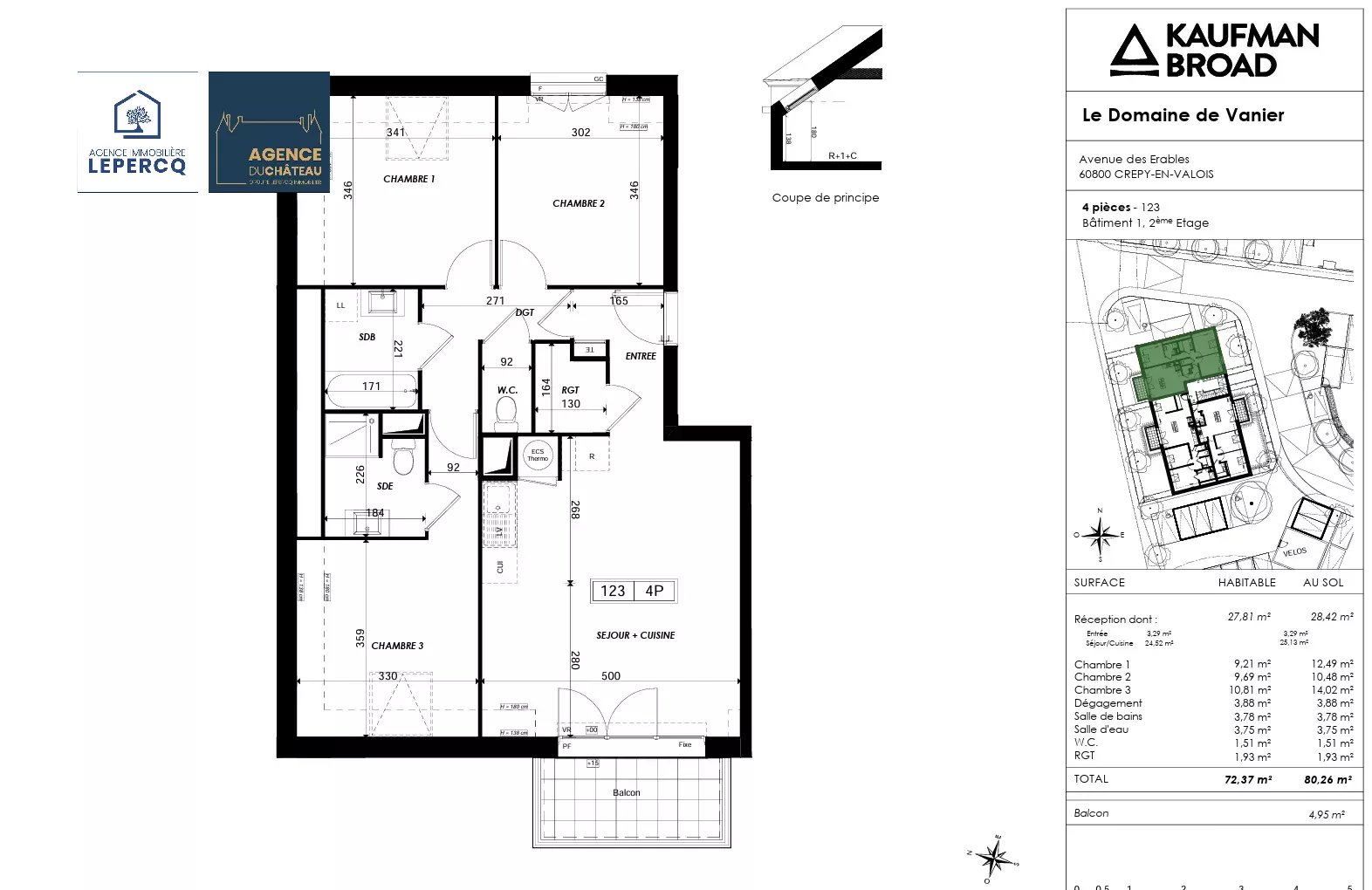 Domaine de Vannier - Crépy-en-Valois Découvrez ce nouveau projet de logements neufs signé Kaufman & Broad situé dans un secteur calme et disposant de toutes les commodités à proximité. Nous vous proposons ici l’acquisition de cet appartement T4 de 72 m² avec un balcon de 4,95 m², situé au 2ème étage, de la résidence. L'appartement comprend entrée, séjour / cuisine, tois chambres, une salle de bains, une salle d'eau avec WC ainsi qu'un wc indépendant. Possibilité de LMNP et TVA réduite pour les investisseurs ! Cet appartement dispose également d'une place de stationnement. D'autres types de logements sont également disponibles. N'hésitez pas à nous contacter pour plus de renseignements sur le programme ! Livraison du logement au 2ème trimestre 2027.