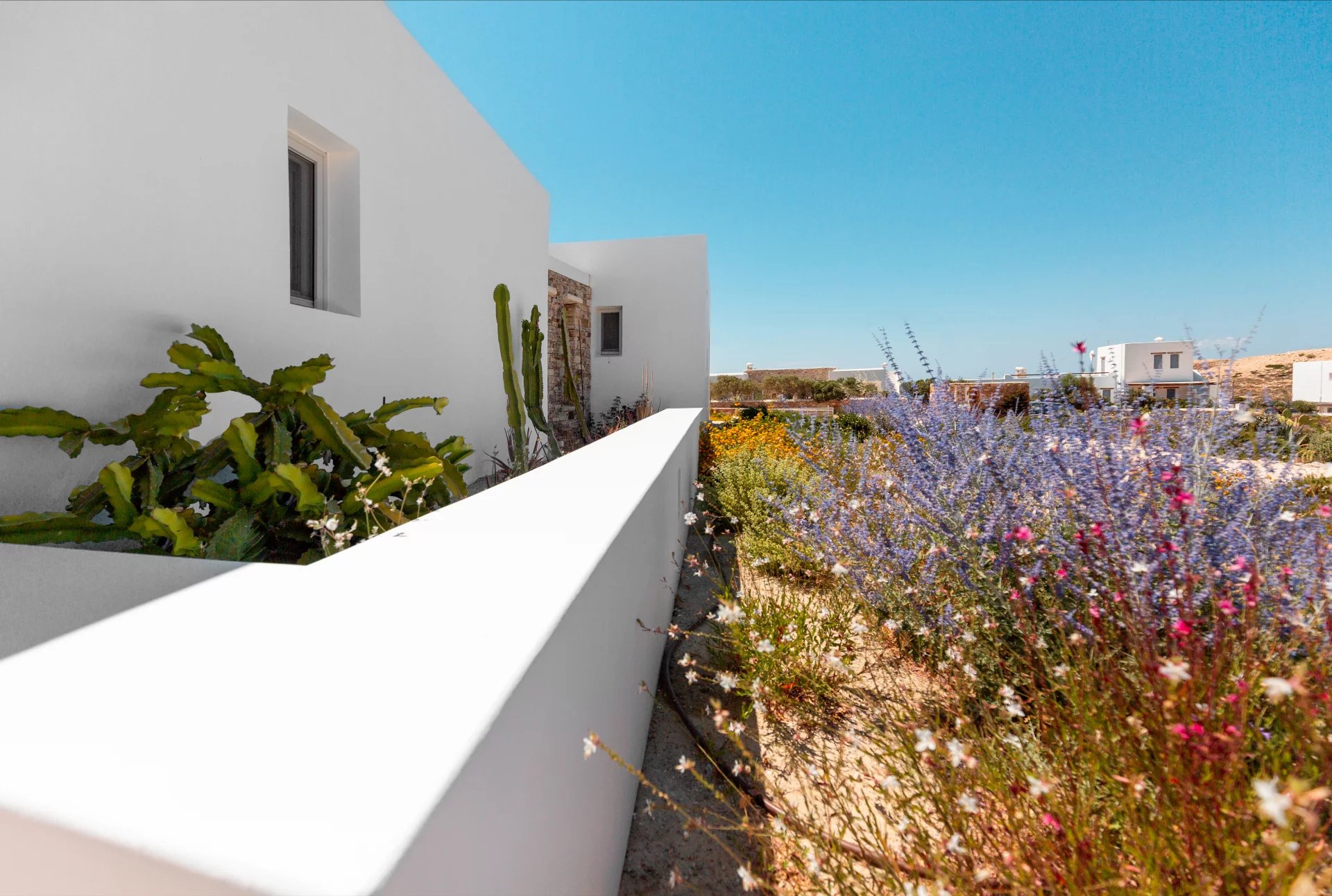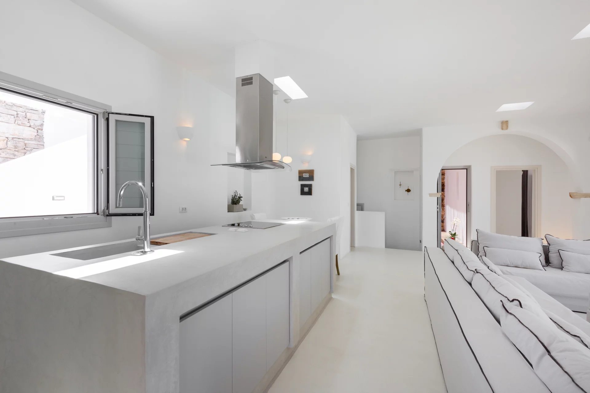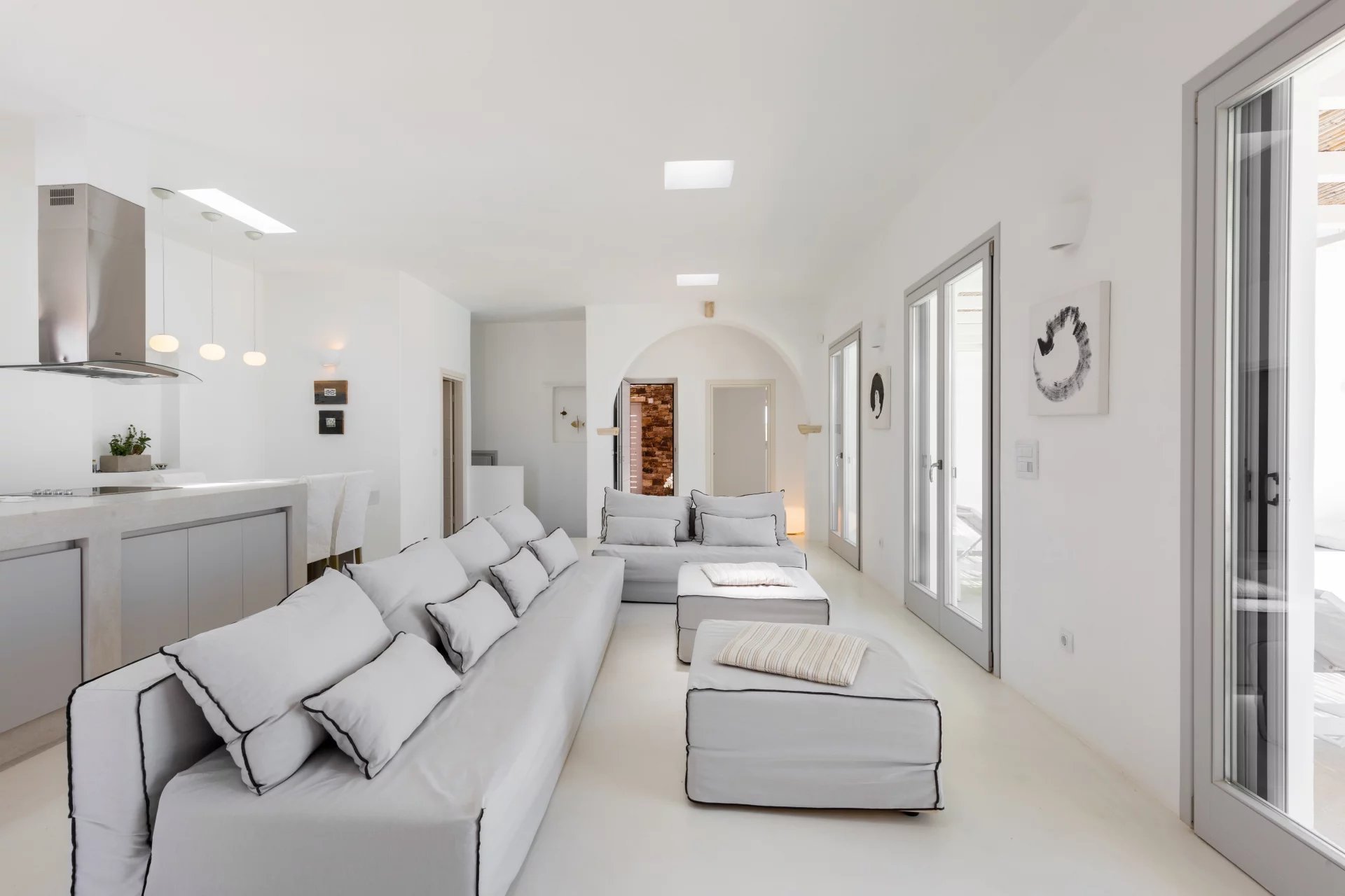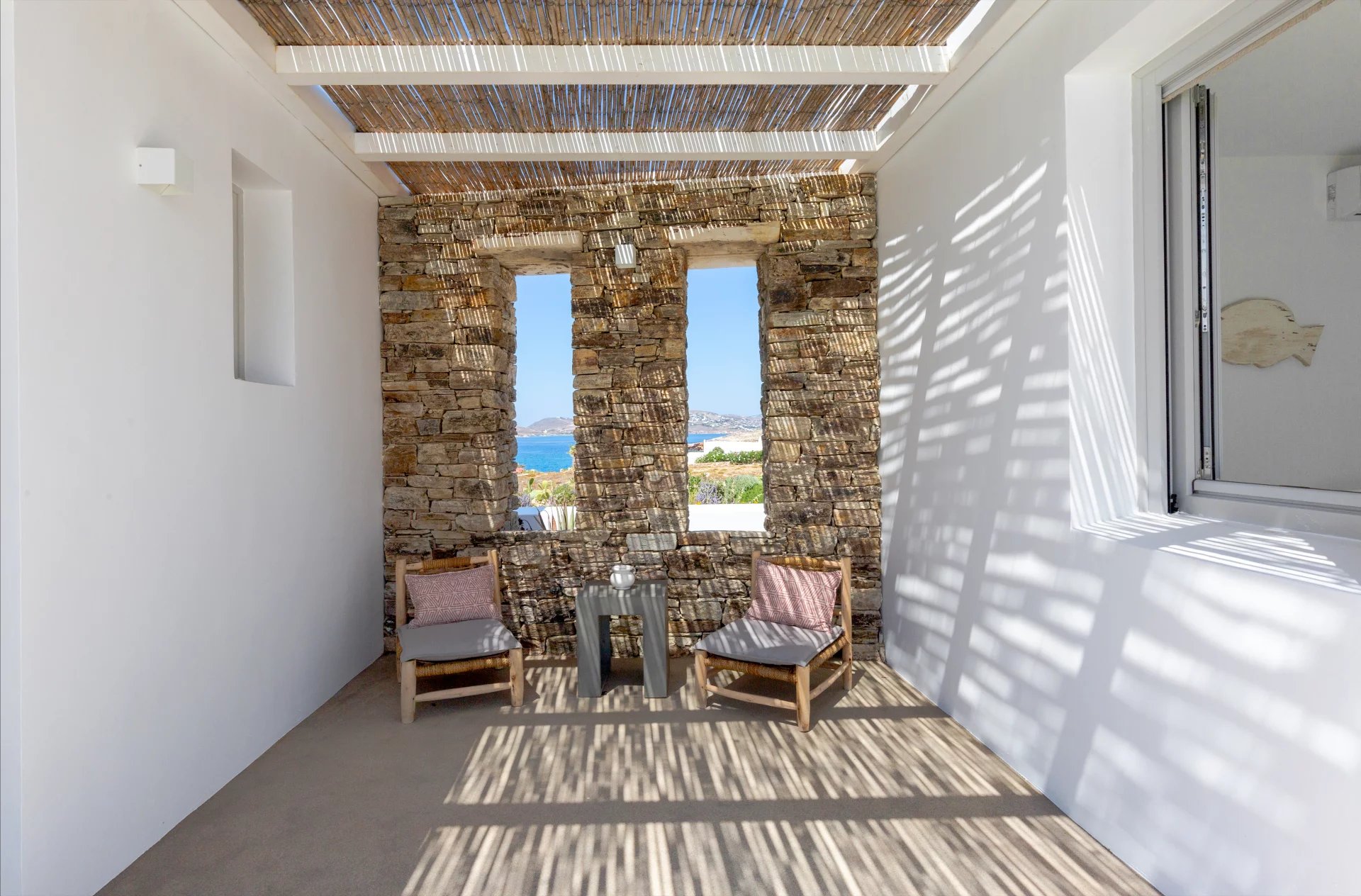 Évadez-vous dans une villa cycladique moderne, un paradis paisible situé à seulement 5 km de la capitale animée de l'île et à quelques minutes de la célèbre plage de Parasporos. Idéalement positionnée pour capturer des couchers de soleil à couper le souffle sur la mer, cette demeure luxueuse est conçue pour des vacances inoubliables.