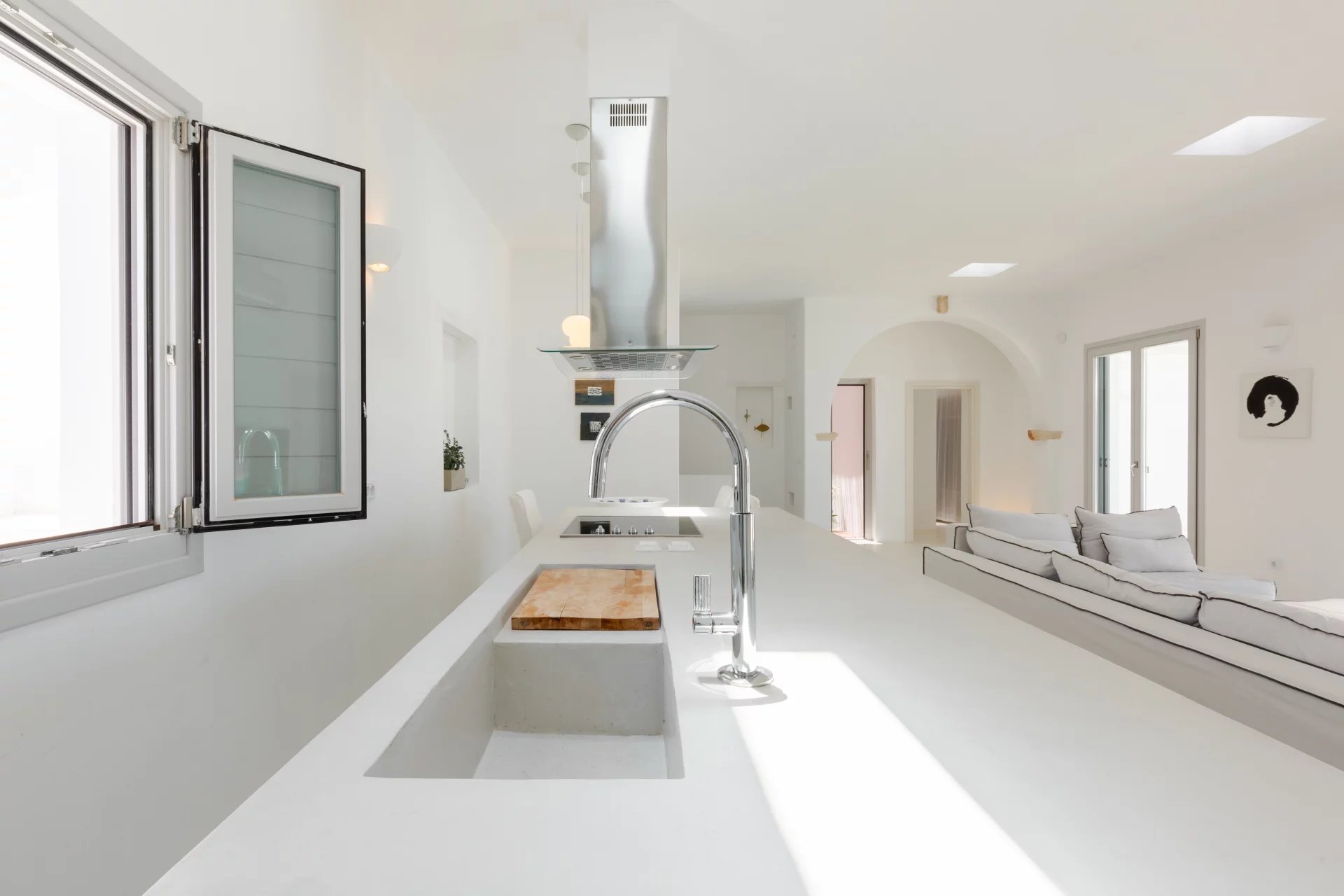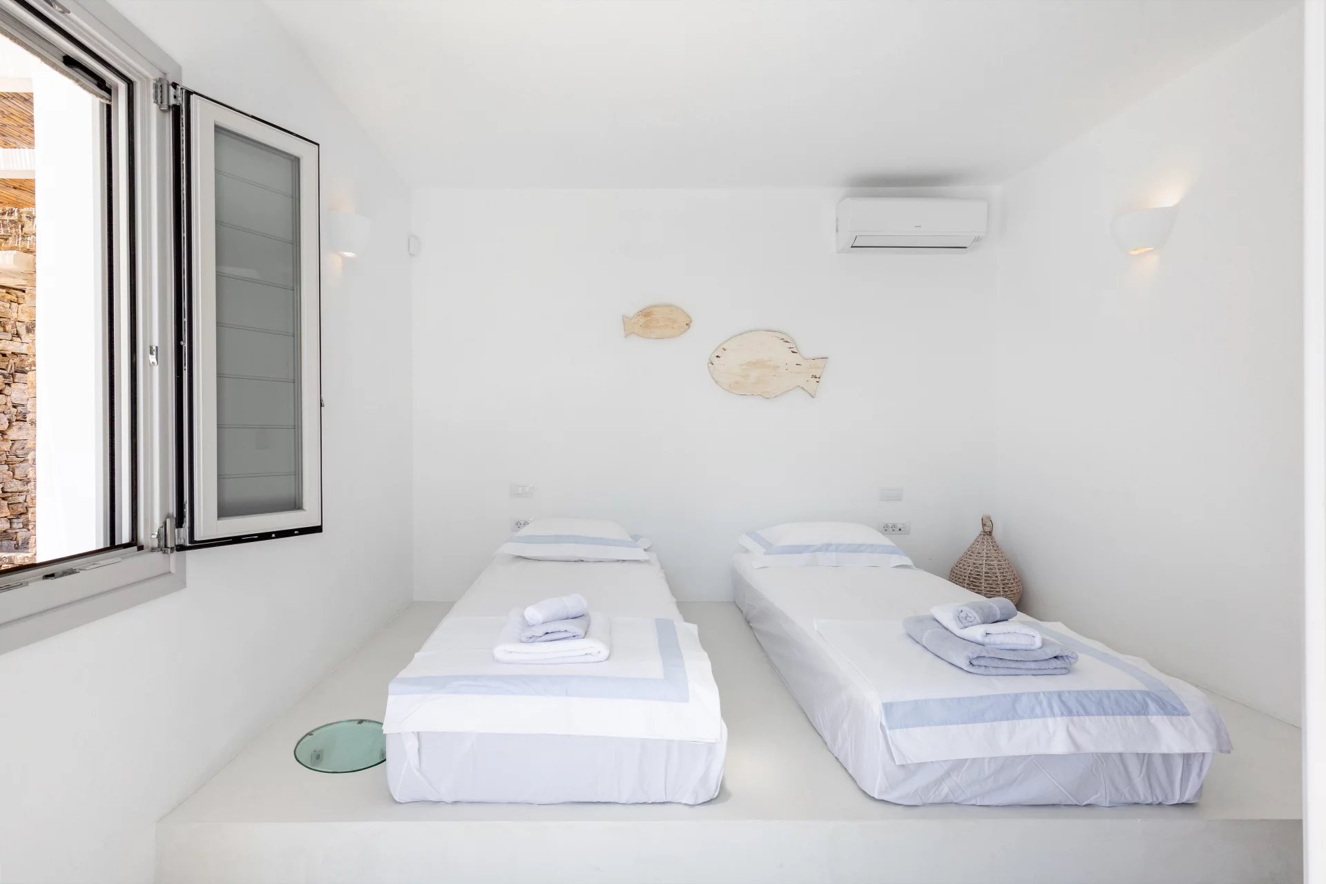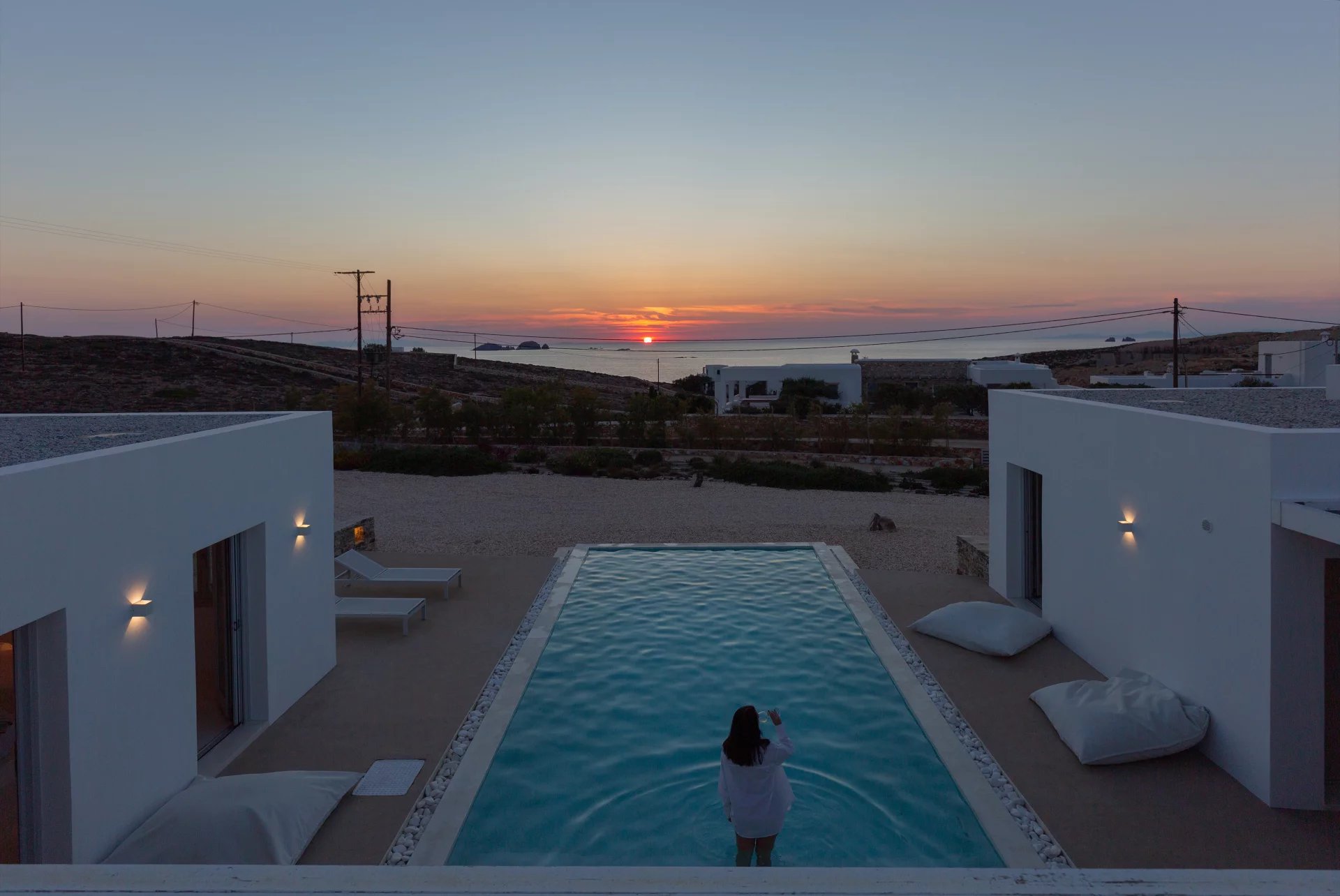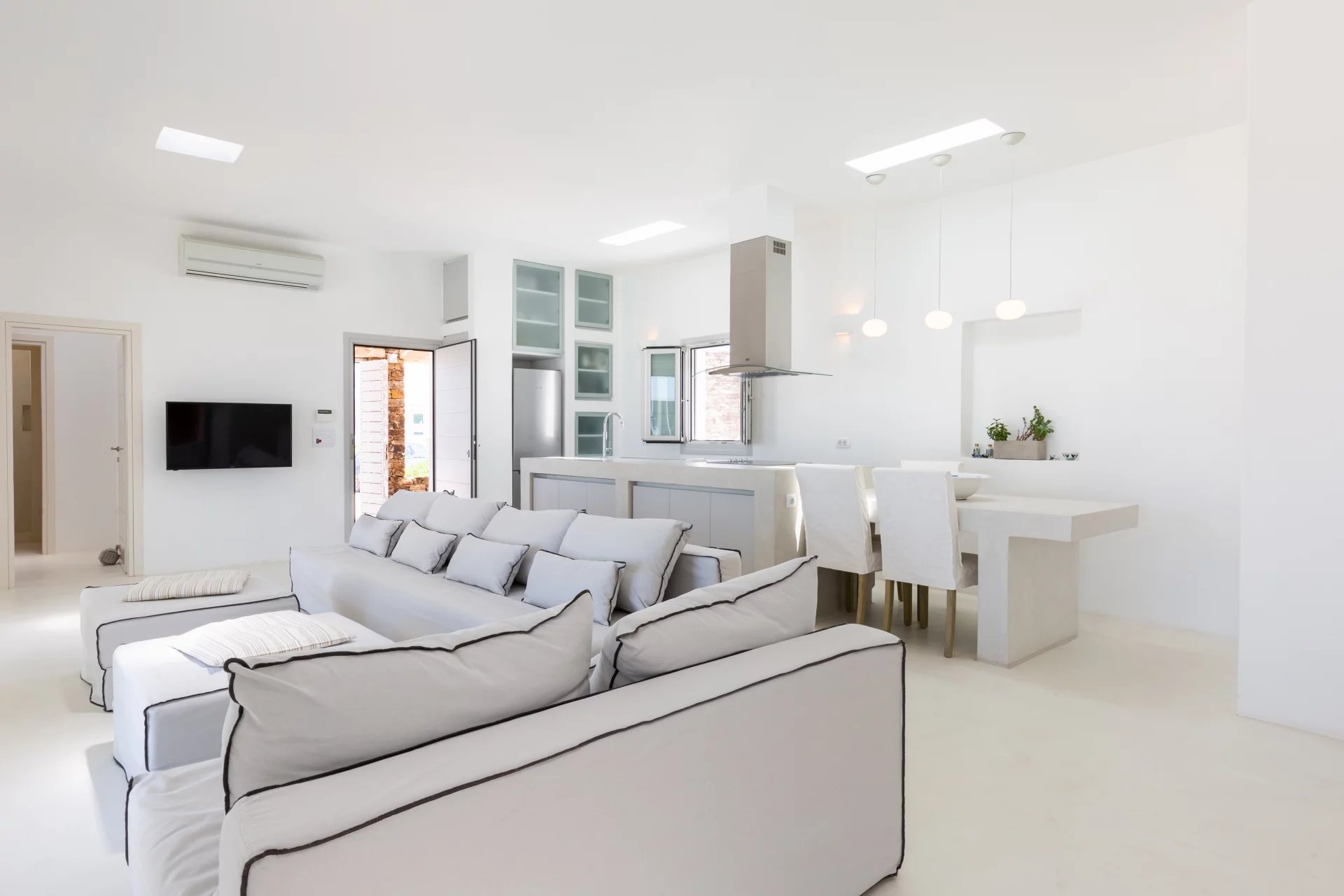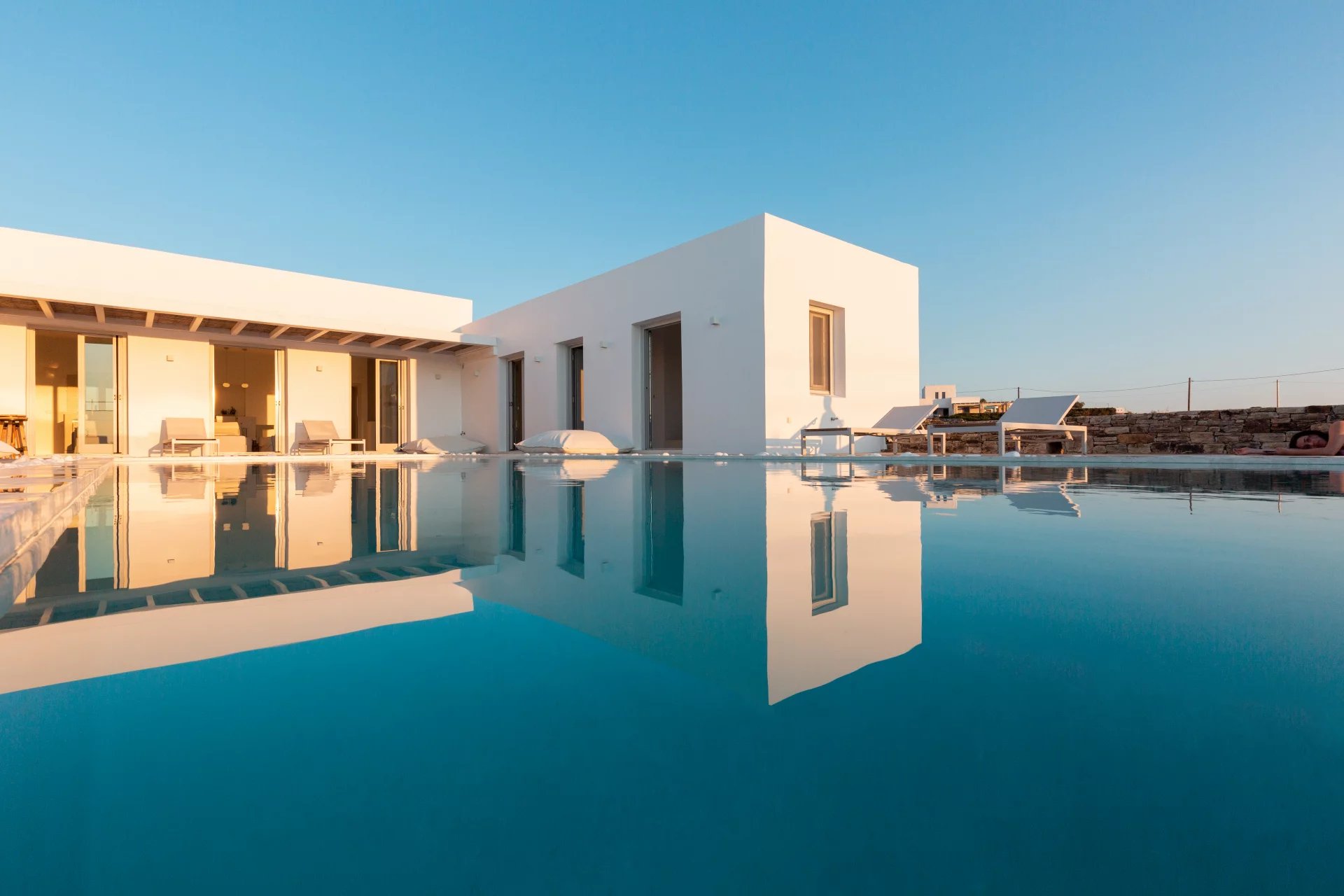 Évadez-vous dans une villa cycladique moderne, un paradis paisible situé à seulement 5 km de la capitale animée de l'île et à quelques minutes de la célèbre plage de Parasporos. Idéalement positionnée pour capturer des couchers de soleil à couper le souffle sur la mer, cette demeure luxueuse est conçue pour des vacances inoubliables.