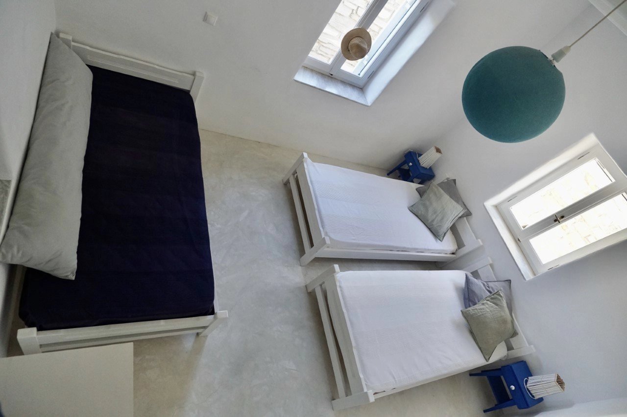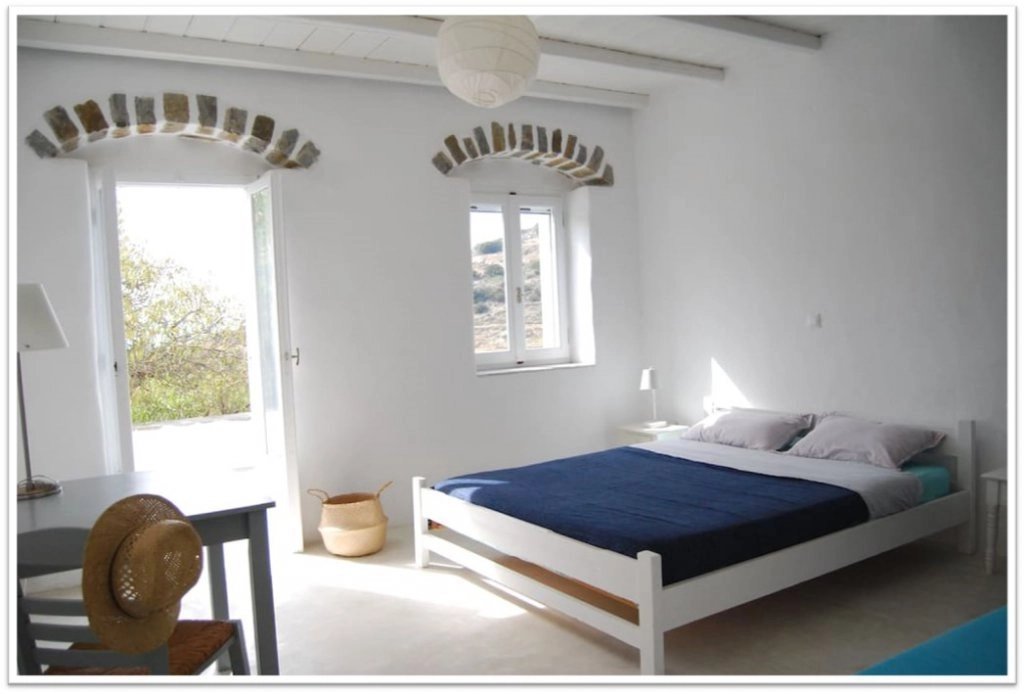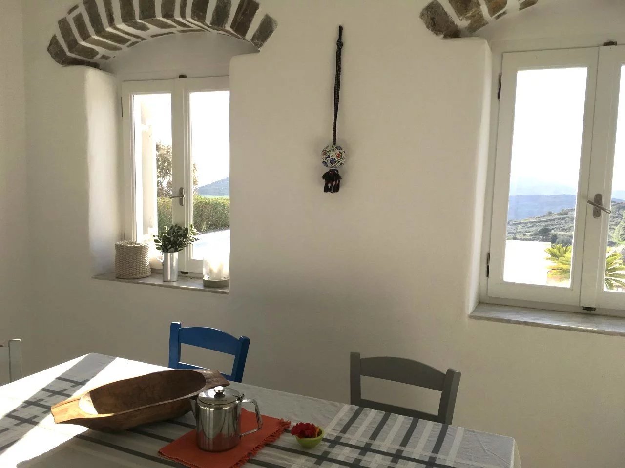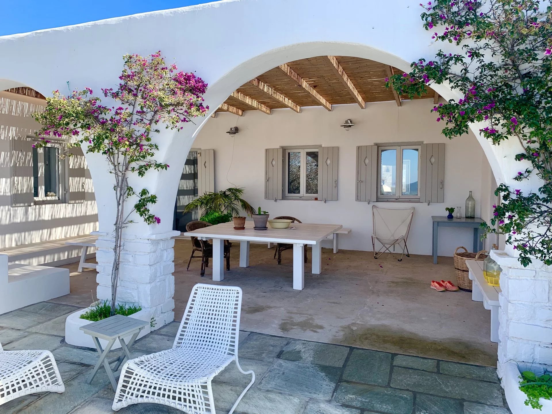 Située au sud de l'île à Kamari, jolie maison cycladique de plain pied avec une très belle vue mer, au calme absolu, en pleine nature. A 2 km du village de pêcheurs et des plages d'Aliki. Maison idéale pour 4 à 7 personnes. Elle se compose d'un séjour avec cheminée, une cuisine familiale, une chambre double avec sa salle de douche + wc, une seconde chambre double et une chambre triple (trois lits simples), 1 salle de douche + wc. Belles et grandes terrasses, une cuisine d'été avec BBQ. Tarif Location (frais de ménage inclus) De 2 395 € à 3 195 € la semaine selon la saison TTC Numéro d'enregistrement : 0145035