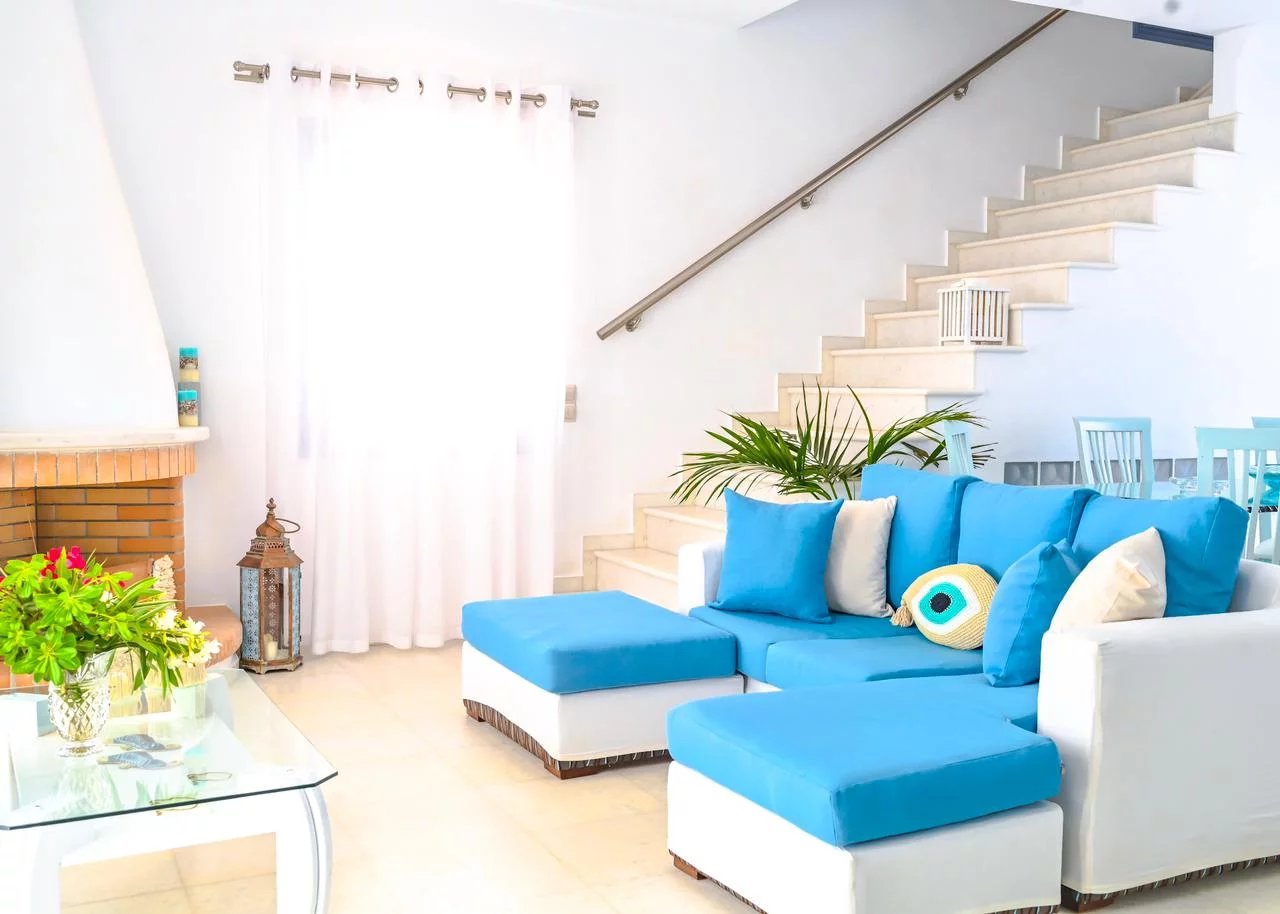 La partie principale de l'habitation se compose notamment d'une cuisine entièrement équipée, d'un espace salon/salle à manger très confortable. Situés au niveau inférieur, deux appartements indépendants donnant sur une grande terrasse éclairée, très confortables eux aussi car entièrement équipés, peuvent accueillir respectivement deux et quatre personnes.