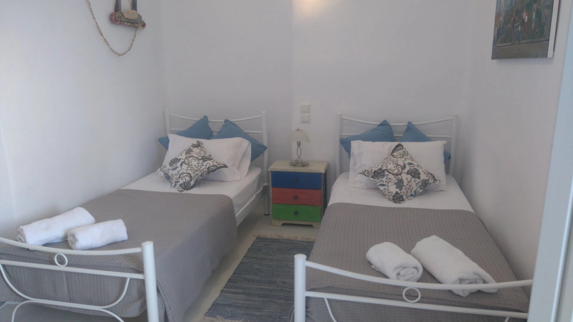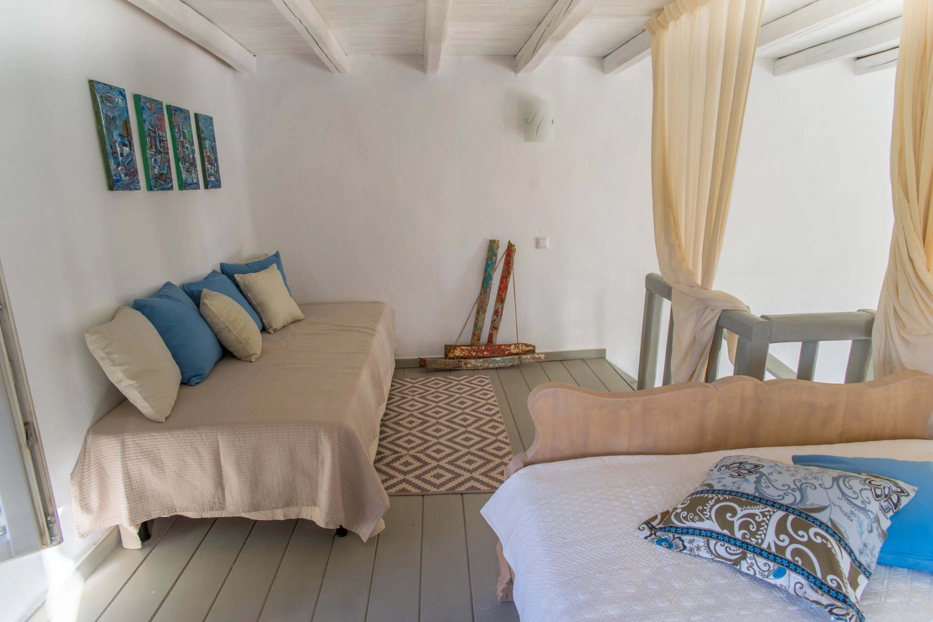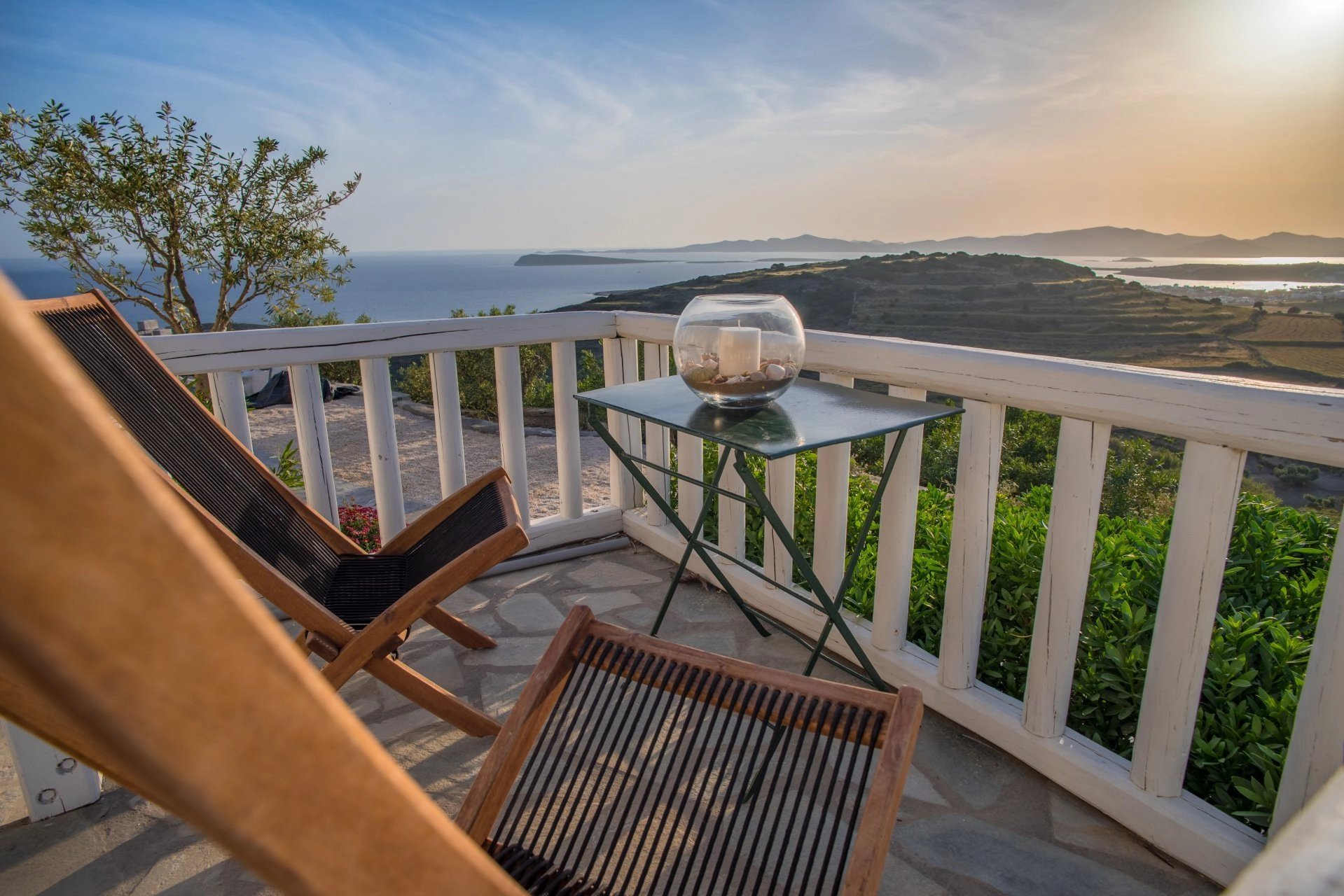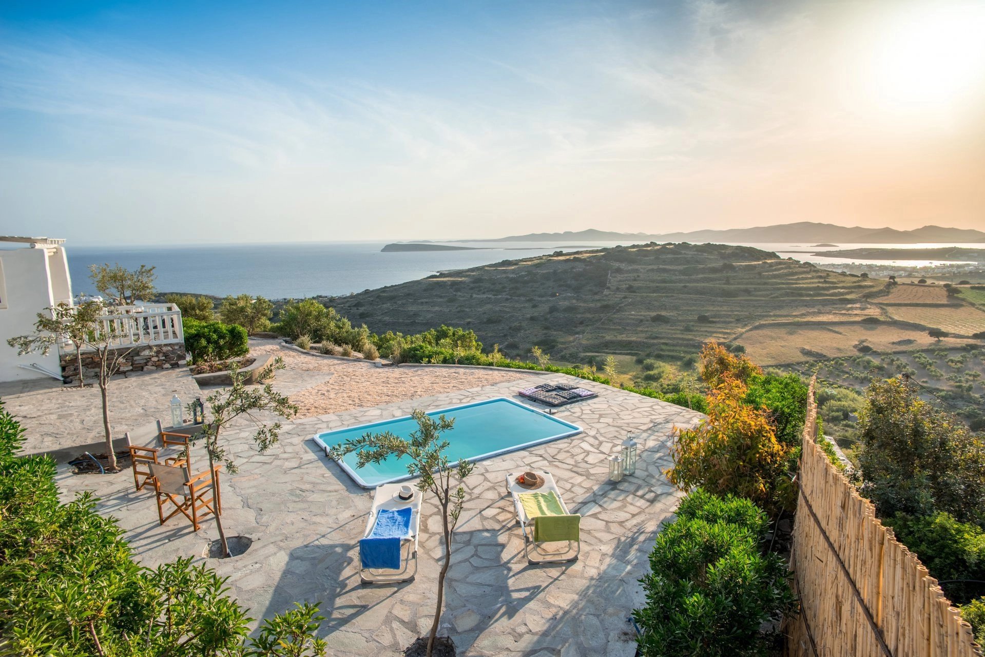 Dans un petit domaine, à 700 m d'une des plages les plus convoitées de Paros, maison de style cycladique avec vue spectaculaire sur la mer, les collines et les îles d’Antiparos, Ios, Sikinos et Folegandros.