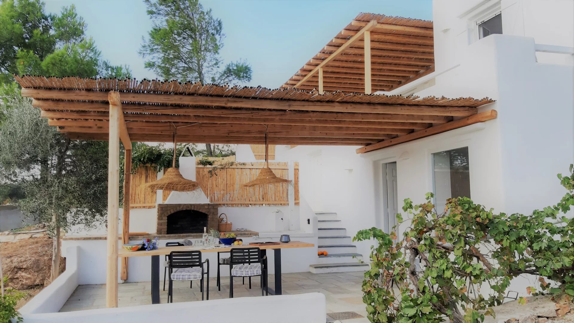 Située au sud-ouest de l’île sur les hauteurs d’Agkeria avec une vue magnifique sur la mer, le village de pêcheurs Aliki et l’île d’Antiparos, cette maison cycladique bénéficie d'un coucher du soleil spectaculaire. Elle se compose d’un bel espace de vie (salon, salle à manger, cuisine) ouvrant sur une terrasse qui s’étend sur toute la longueur de la maison, 4 chambres dont 2 en accès indépendant, 3 salles de douche avec toilettes, un bel espace de stockage. Une jolie piscine se fond dans le jardin très joliment arboré d’oliviers. Un vrai coup de cœur !