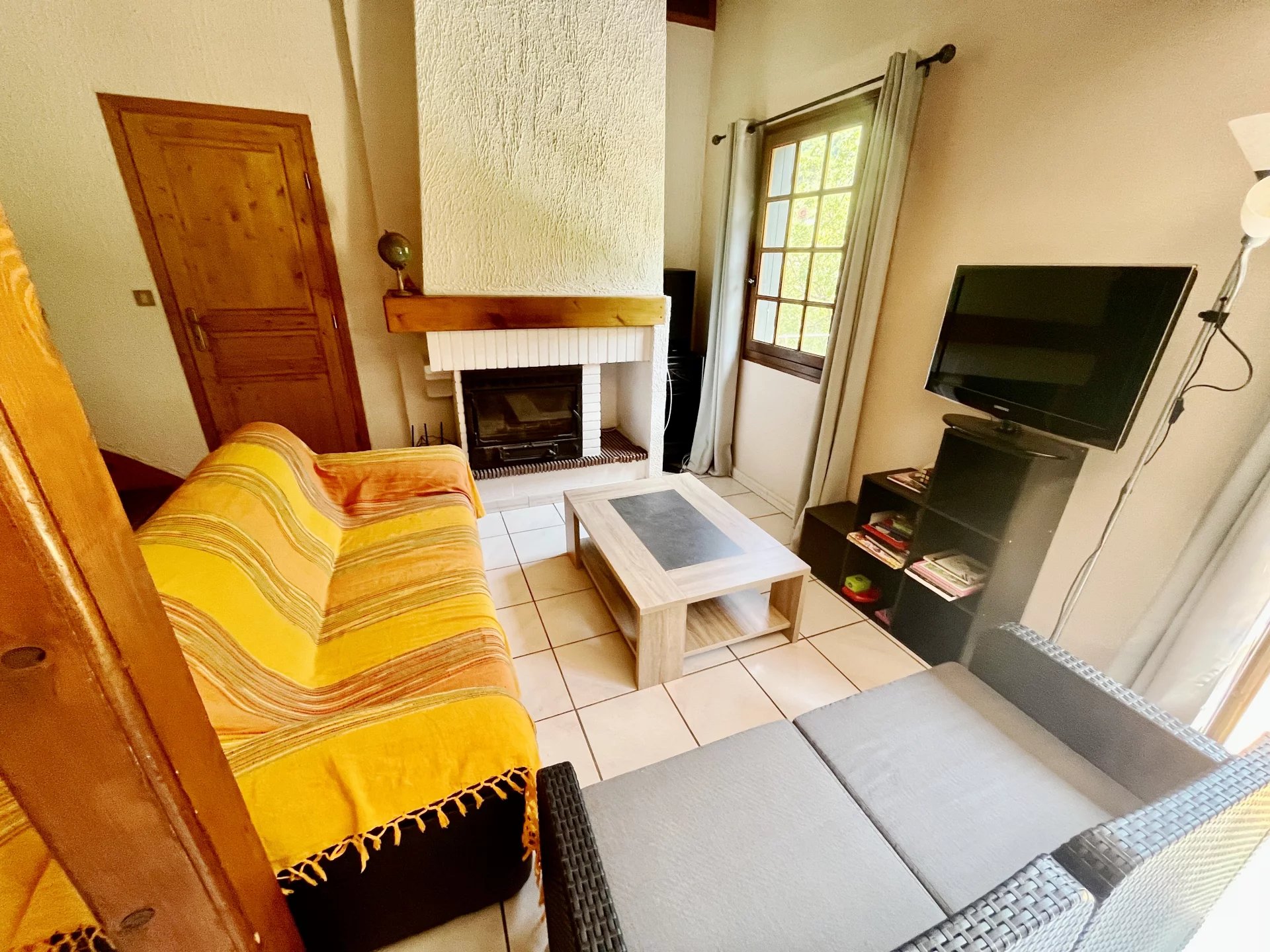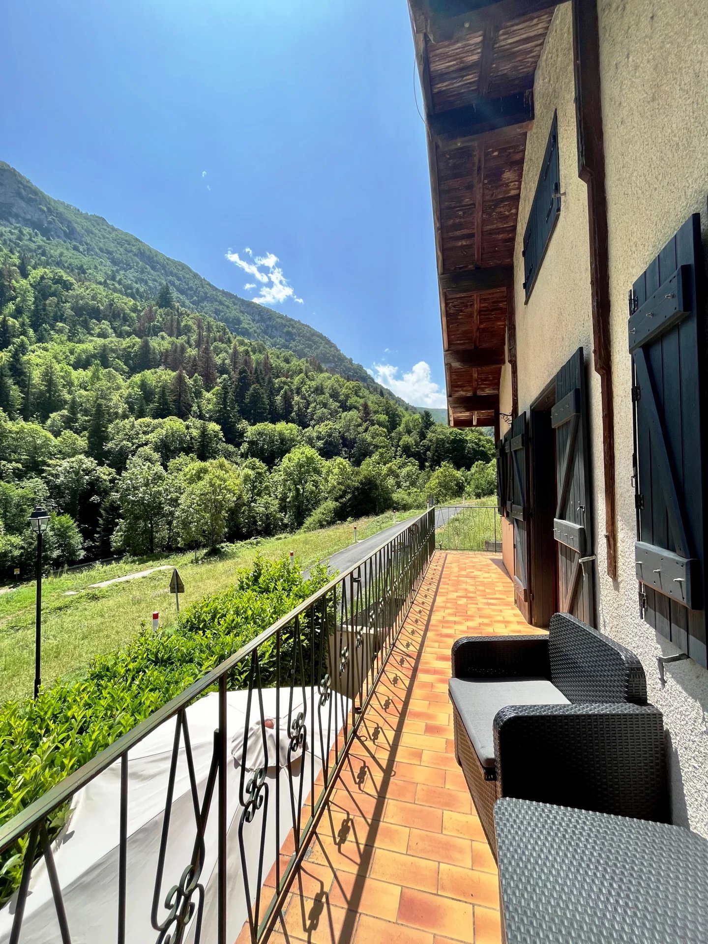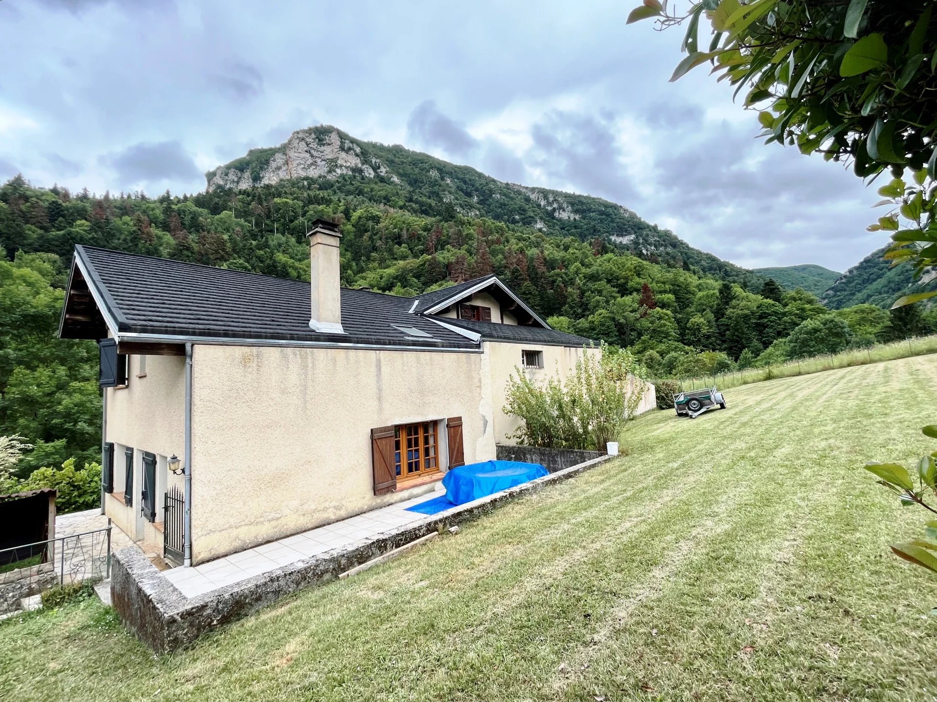 Cette propriété comprend une maison individuelle ainsi qu'un gîte rénové de 3 chambres (87m²), doté d'un balcon offrant une vue imprenable sur la rivière et les montagnes. Elle dispose également d'un grand jardin et d'un garage. La maison principale dispose d'un salon de 58m² avec cheminée et poutres apparentes. Le rez-de-chaussée se compose d'un couloir, d'une cuisine, d'une douche/WC, d'une chambre, d'une buanderie et d'une cave. Le premier étage comprend deux chambres doubles, un palier, une salle de bains/WC, un dressing, un jardin et une terrasse. La ville la plus proche, avec ses commodités, se trouve à 12 minutes en voiture. La propriété est située à 1 heure et 15 minutes de la Méditerranée et à proximité de stations de ski, de lacs et de sources thermales (30 minutes). Une vidéo est disponible sur demande.