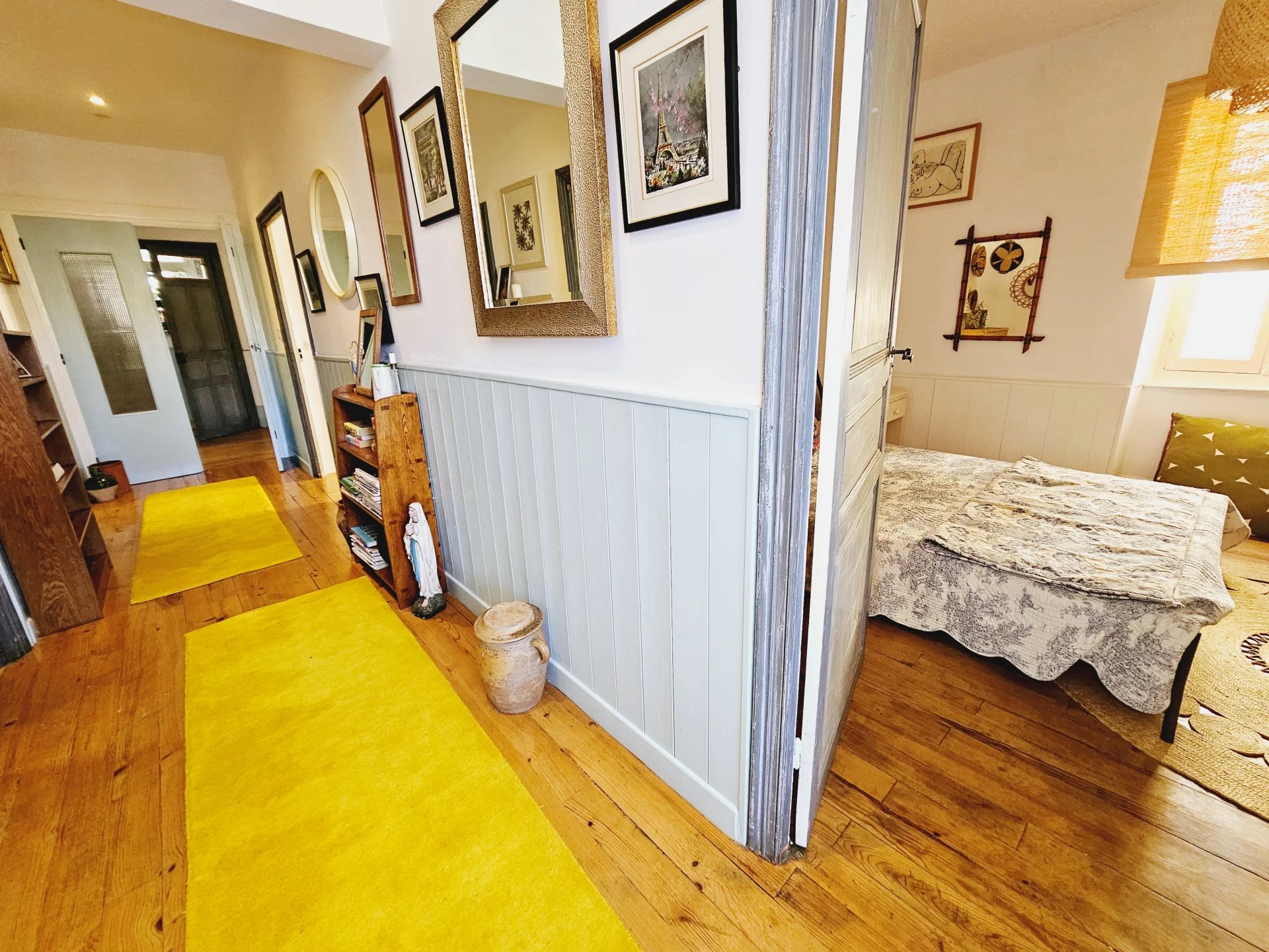 Découvrez cette charmante Maison de Maître de 214 m² située dans la ville pittoresque de Quillan, en France. Construite en 1887, elle a conservé la plupart de ses caractéristiques d'origine. Les hauts plafonds et les grandes fenêtres inondent la propriété de lumière, et la plupart des pièces à vivre du rez-de-chaussée s'ouvrent sur le balcon enveloppant où vous pouvez vous prélasser au soleil ou vous détendre à l'ombre des platanes. Avec six chambres spacieuses et trois salles de bains/douches avec WC, cette charmante propriété offre suffisamment d'espace pour une famille ou pour ceux qui aiment recevoir. La cheminée classique ajoute de la chaleur et du caractère, créant une atmosphère douillette parfaite pour les soirées de détente. Le design élégant de la maison allie le charme traditionnel au confort moderne. La cuisine lumineuse et accueillante est idéale pour préparer de délicieux repas, tandis que le magnifique salon de 32 m², doté d'un poêle à bois, est un endroit idéal pour se détendre en hiver. Chaque chambre est décorée avec soin, offrant une retraite unique et accueillante pour les résidents et les invités. À l'extérieur, vous pourrez profiter d'un magnifique jardin offrant une vue imprenable sur le paysage et les montagnes environnantes. Cet espace extérieur paisible est parfait pour profiter du cadre serein, organiser des réunions ou simplement se détendre dans la nature. Cette charmante propriété est un véritable bijou pour ceux qui recherchent un mode de vie à la fois tranquille et luxueux. Le sous-sol comprend un garage et plusieurs caves pour le stockage, la transformation ou les activités créatives, ainsi qu'un parking hors route. Le marché bihebdomadaire, les festivités, les restaurants et les cafés se trouvent à quelques minutes à pied de la ville. VIDÉO DISPONIBLE.