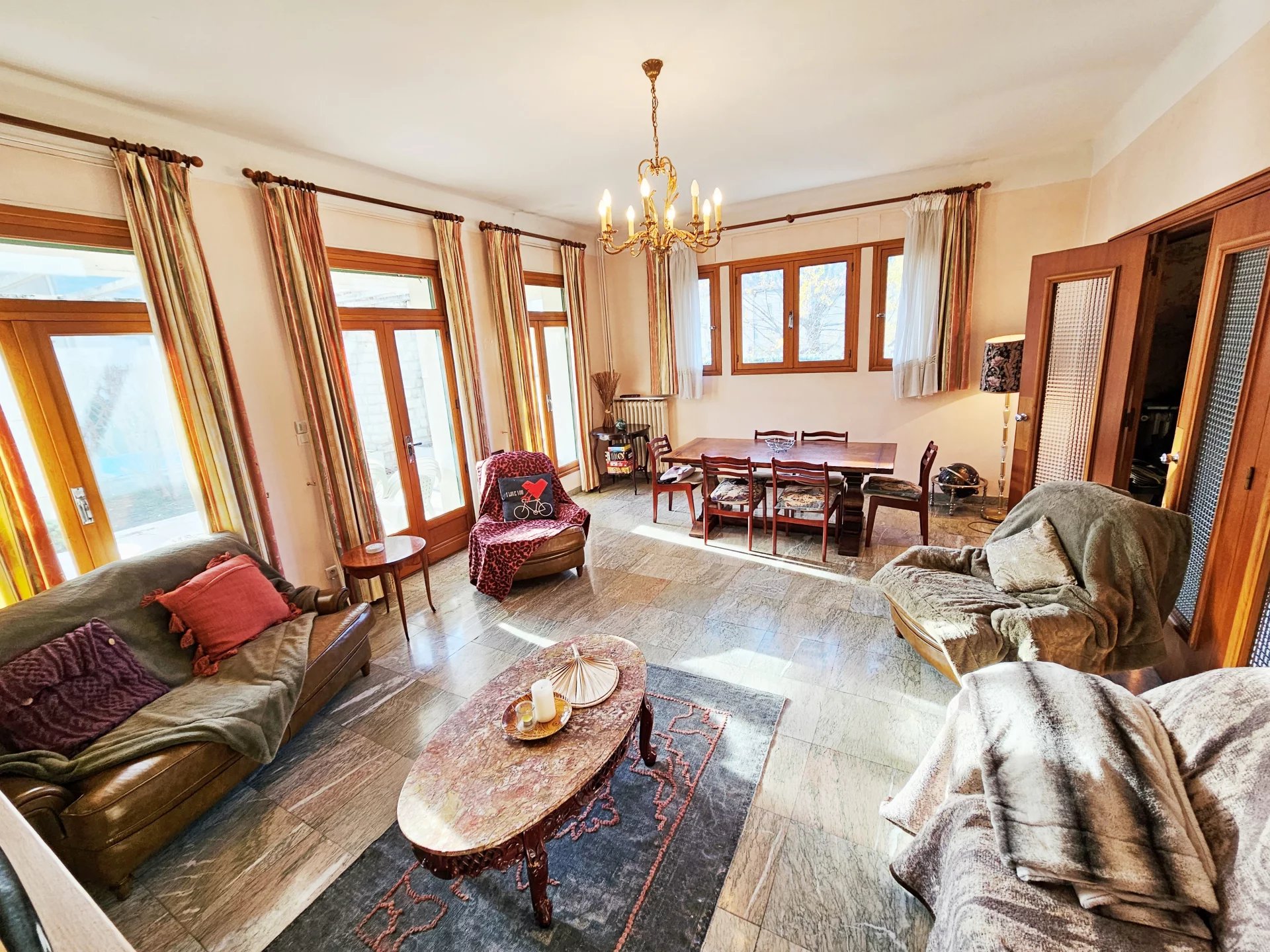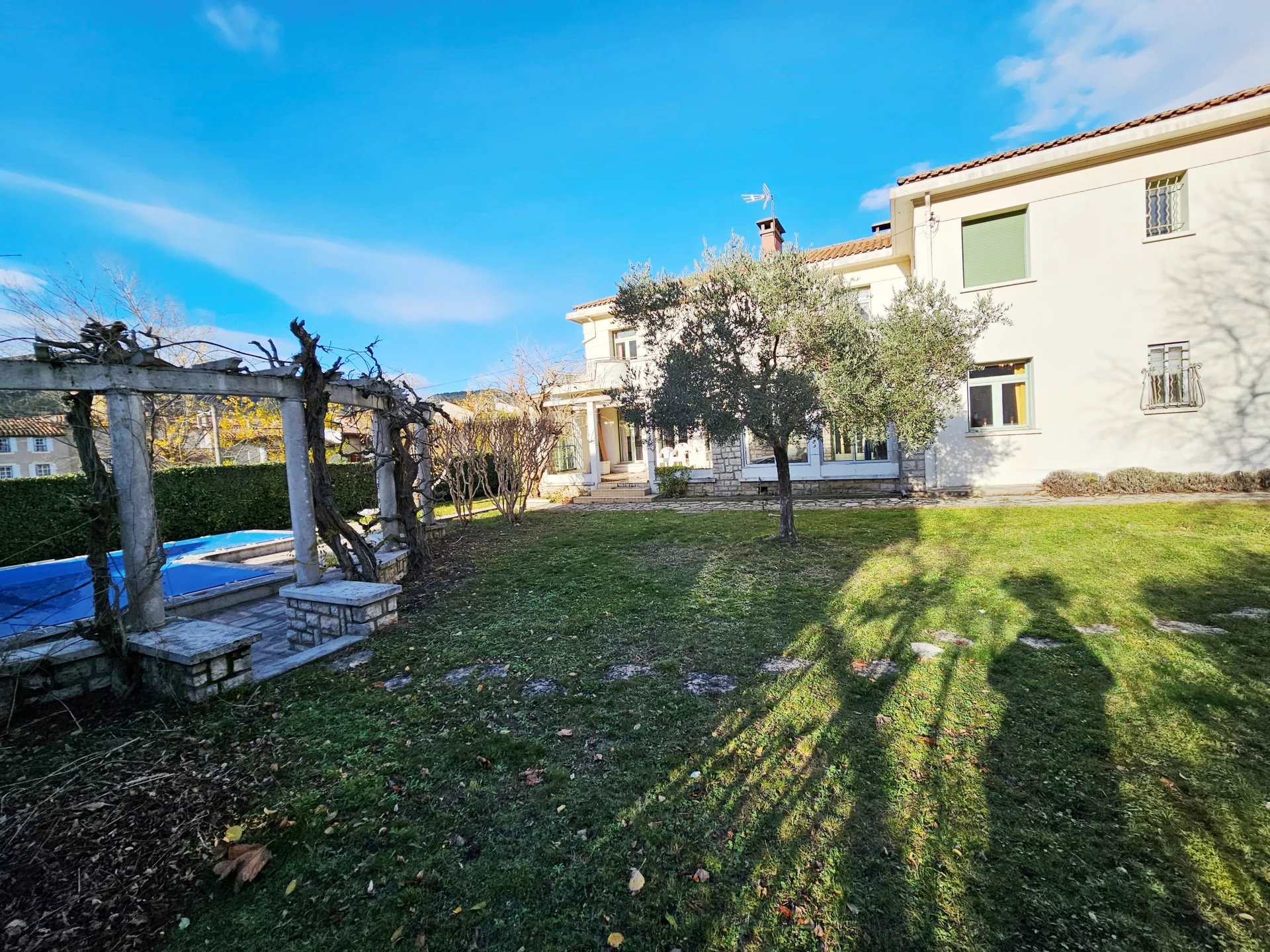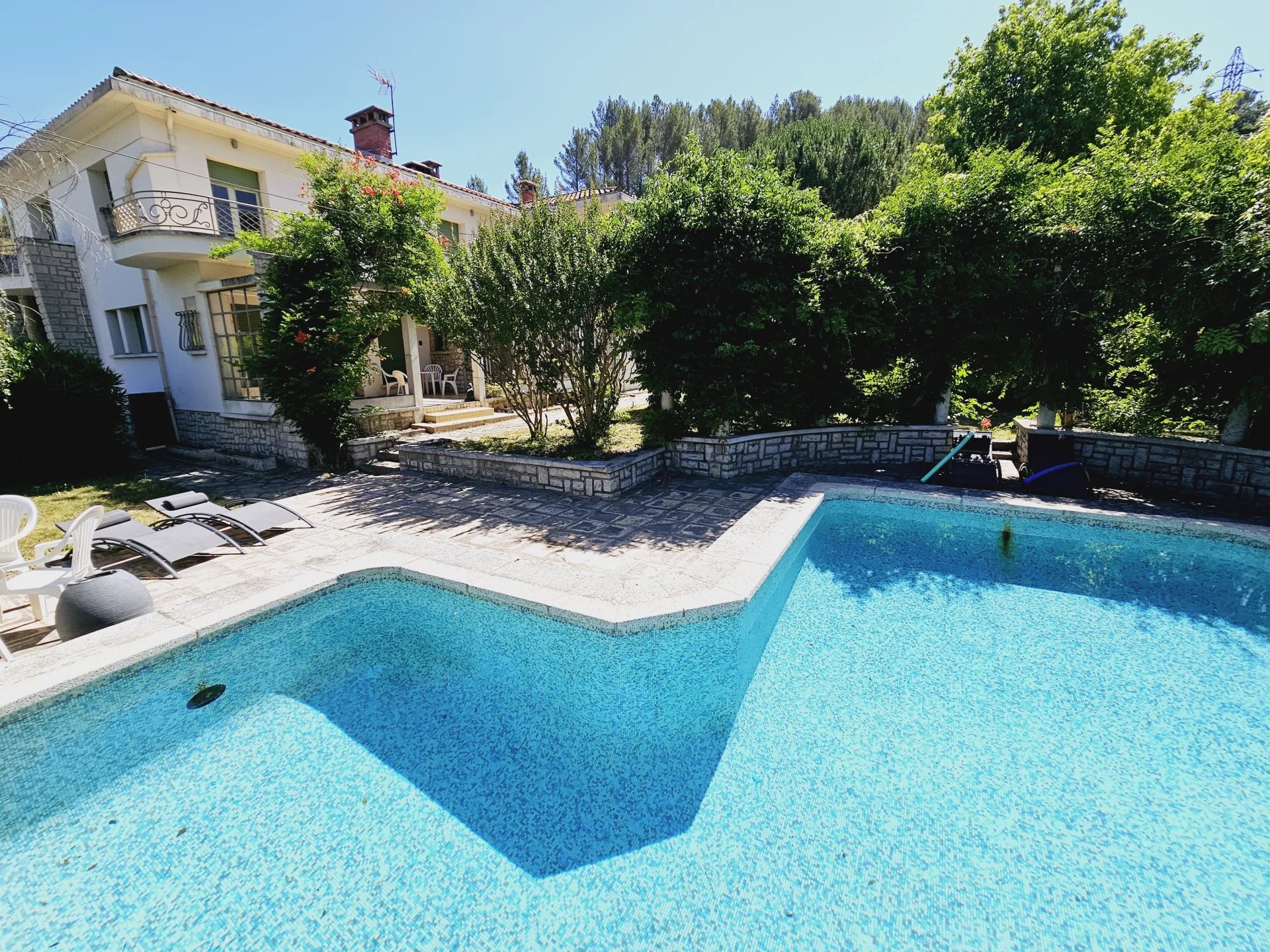 Propriété Art Déco avec grand jardin et piscine, offrant une vue panoramique sur la vallée et les montagnes. Emplacement privilégié au cœur d'un bourg populaire au bord de l'Aude. Un paradis pour les activités de plein air : ski, lacs, Méditerranée et rivière à deux pas. La place principale est accessible en 2 minutes à pied. La propriété dispose d'une entrée à colonnes et d'un vaste hall de réception avec escalier en pierre. Depuis le hall, vous accédez à un grand séjour lumineux avec portes-fenêtres donnant sur une terrasse pergola au bord de la piscine. La grande cuisine, équipée d'un canapé-lit devant le poêle à bois, s'ouvre sur la véranda dont les portes coulissantes permettent de dîner ou de profiter du soleil toute l'année. Des chambres, une deuxième cuisine, des toilettes et une entrée indépendante permettent de transformer facilement cette partie de la maison en gîte ou de réduire les escaliers. À l'étage, vous trouverez trois grandes chambres doubles, dont trois s'ouvrant sur les terrasses exposées sud et est pour profiter du soleil et de la vue. Une chambre dispose d'une salle de bains privative avec WC. Une autre chambre dispose d'une salle d'eau spacieuse avec WC. Grand jardin avec accès arrière à l'allée, garage de 30 m², atelier et salle de cactus. Grande cave pour stocker votre vin ou salle de sport. Superbe propriété au cœur d'une ville dynamique. VIDÉOS DISPONIBLES.