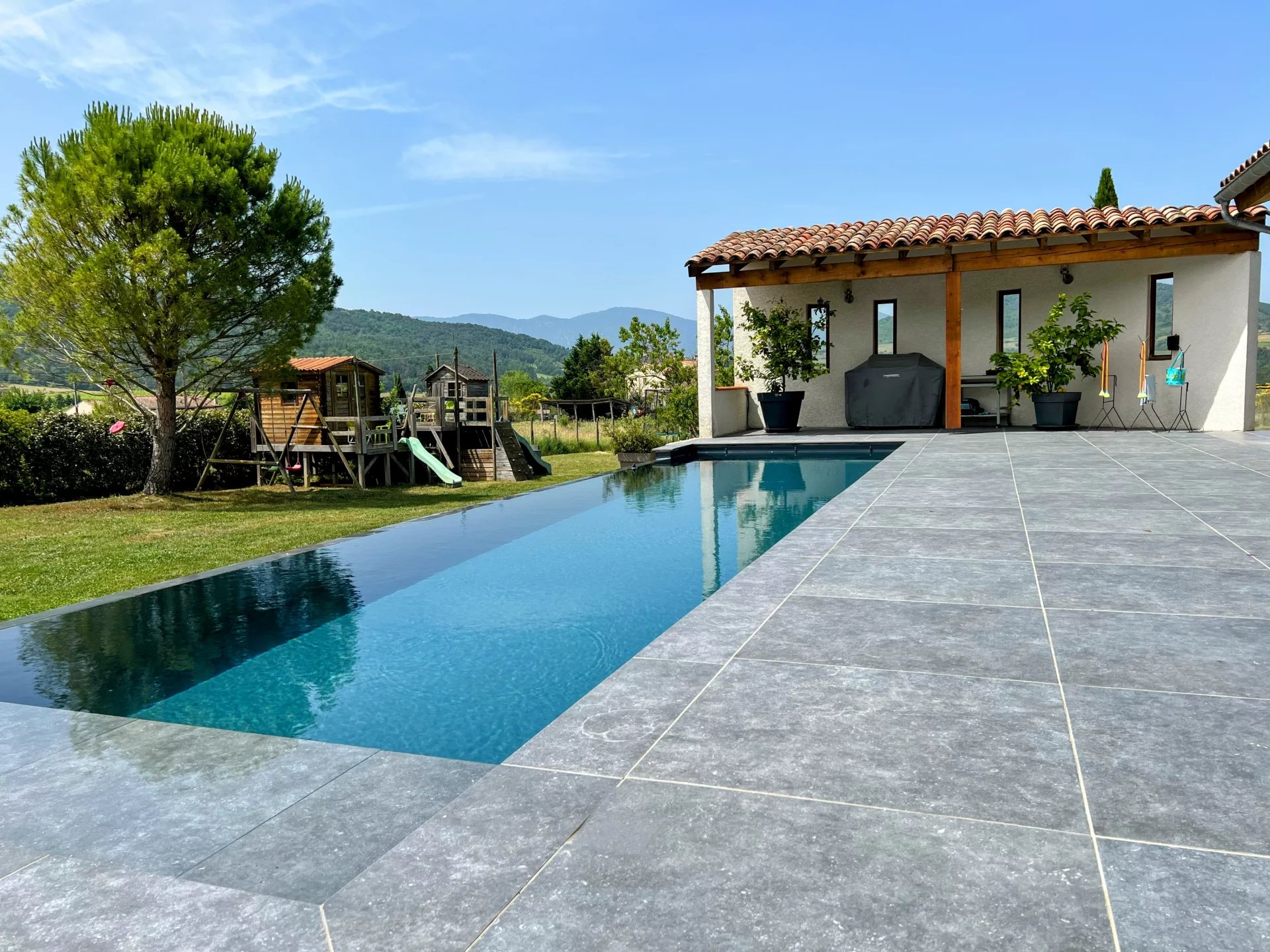 Située dans un cadre champêtre paisible avec une vue imprenable, à quelques minutes de Couiza et de toutes ses commodités, cette propriété exceptionnelle offre la tranquillité de la vie rurale tout en étant à quelques minutes en voiture de la ville animée de Quillan, avec ses magasins, ses cafés, ses écoles et ses services essentiels. Idéalement située entre la côte méditerranéenne et les pistes de ski des Pyrénées, elle offre un accès facile à des activités de plein air tout au long de l'année, des journées ensoleillées à la plage aux aventures alpines enneigées, le tout à environ une heure de route. Cette combinaison unique de beauté naturelle, de confort contemporain et d'emplacement pratique en fait un refuge idéal pour la vie familiale moderne ou une escapade rurale relaxante avec tout à portée de main. Les propriétés de ce calibre dans un cadre aussi recherché sont rares sur le marché, et il est fortement recommandé de les visiter rapidement.