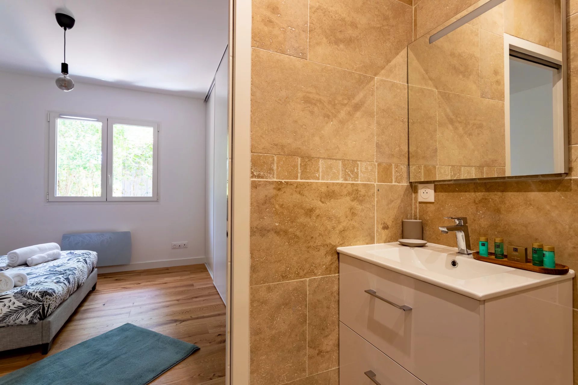 Baia Immobilier vous présente la résidence OYANA, idéalement située au pied de la majestueuse Dune du Pilat et à deux pas du prestigieux hôtel 5 étoiles La Coorniche. Découvrez cet appartement 3 pièces de 95 m², vendu entièrement meublé, situé en rez-de-chaussée. Il se compose d’un vaste salon/séjour lumineux de 43 m² ouvrant sur une cuisine américaine aménagée et équipée, de deux chambres confortables et de deux salles d’eau modernes. Vous profiterez également d’une grande terrasse de 91 m², exposée Sud-Est, parfaite pour vos moments de détente en plein air. Appartement vendu meublé – clé en main ! Ce bien est vendu dans le cadre du régime para-hôtelier, permettant au futur acquéreur de bénéficier d’une fiscalité particulièrement avantageuse (possibilité de récupération de TVA, amortissements comptables, etc.), tout en proposant des prestations locatives avec services (accueil, ménage, linge, etc.). Un cadre idéal pour concilier usage personnel et rentabilité. À découvrir sans tarder. Pour toute visite, contactez-nous au 06.18.80.58.65