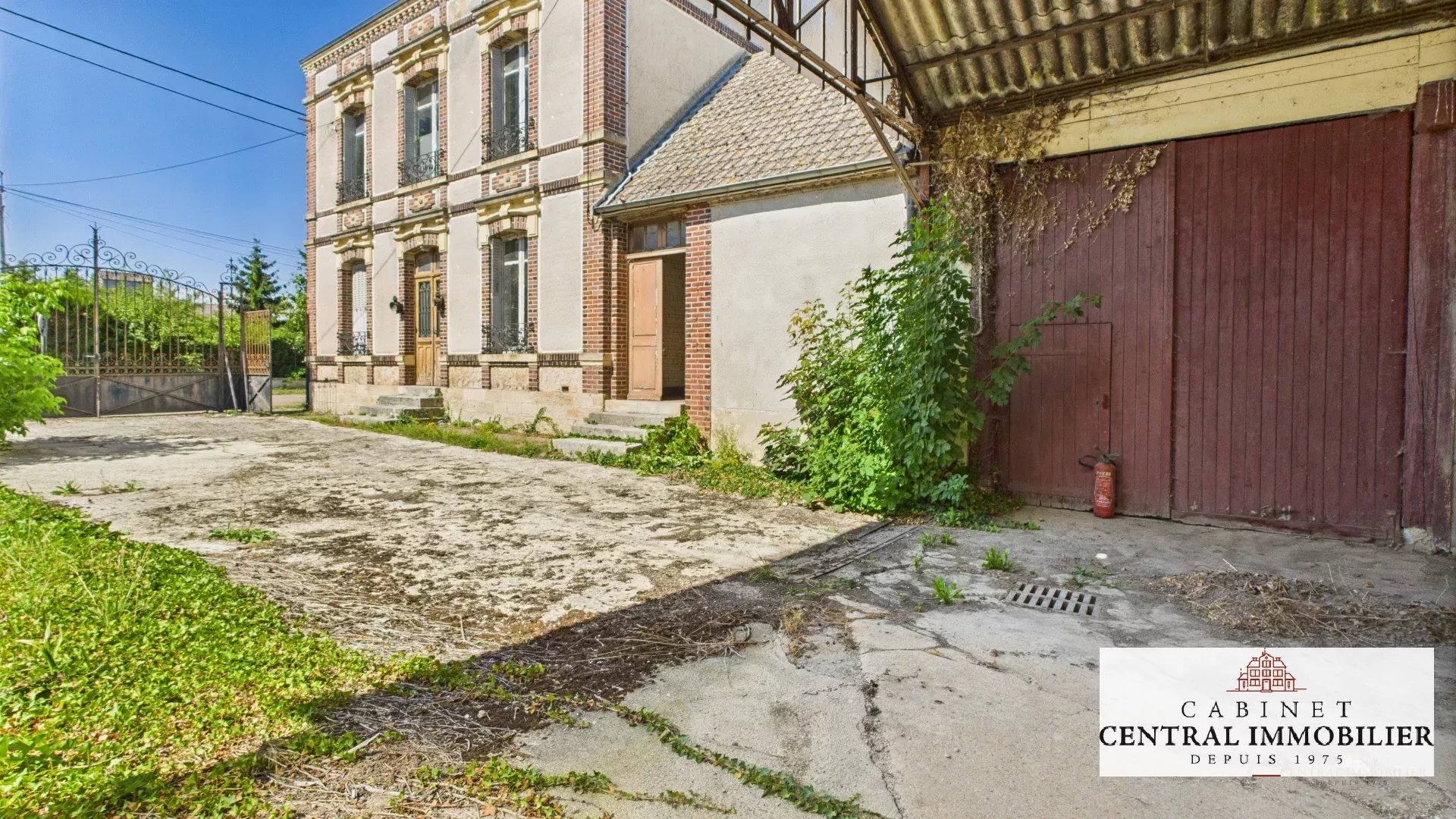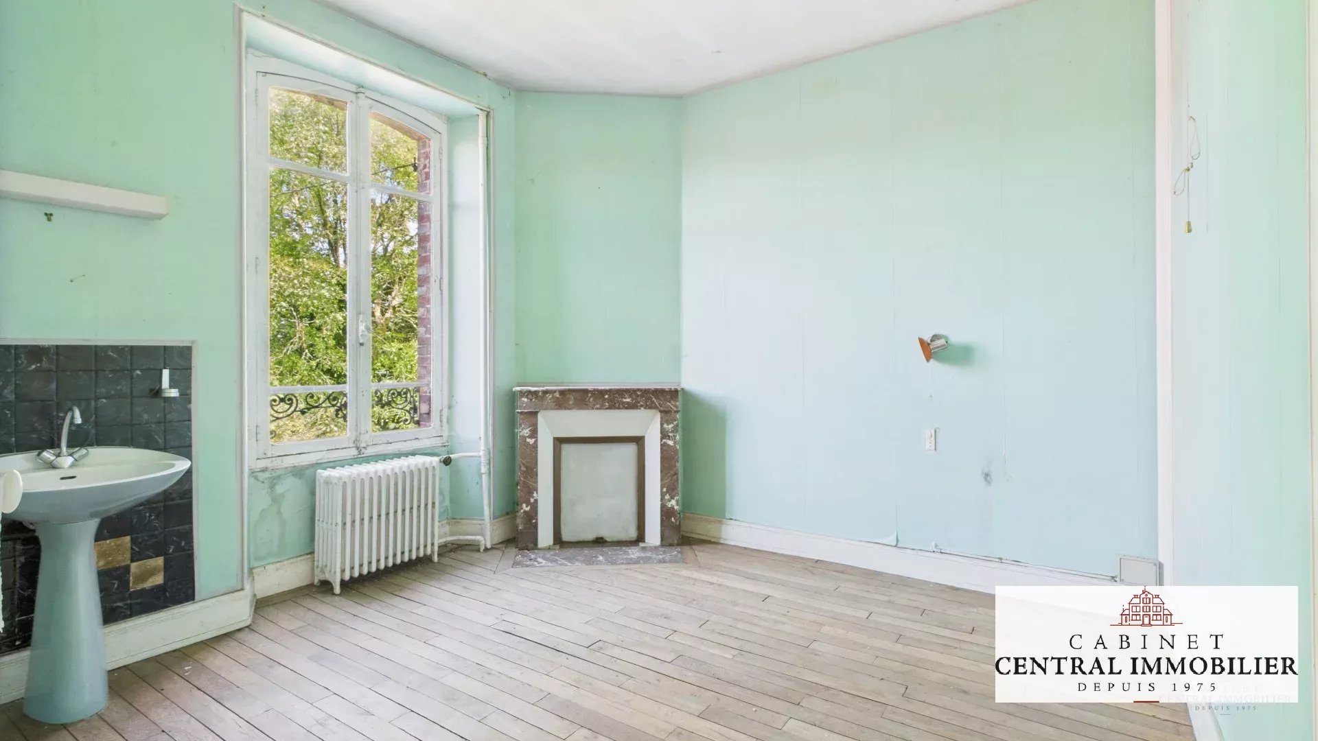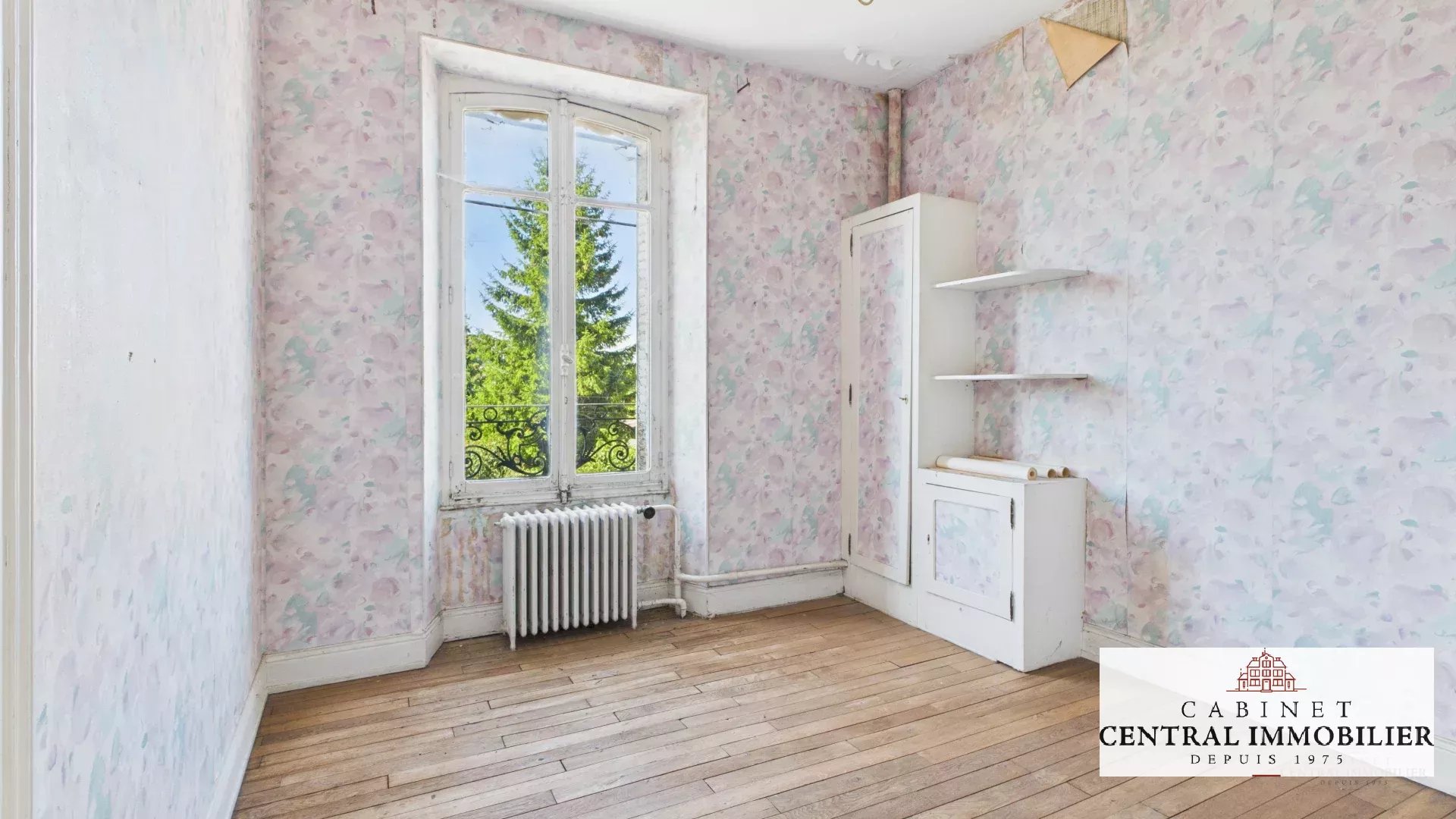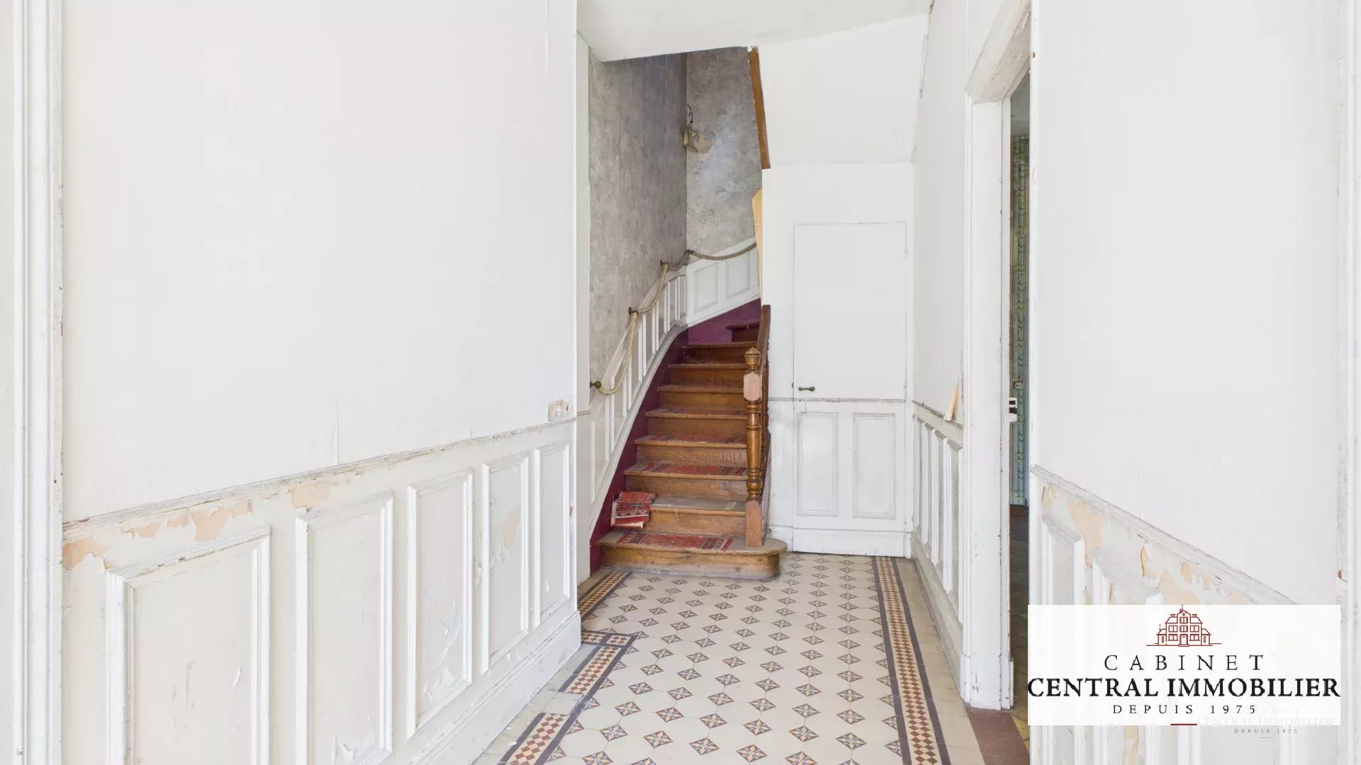 Maison de maître de 1907 comprenant : une entrée sol carreaux de ciment, une ancienne cuisine de 7.75 m², un séjour parqueté de 25.19 m² avec cheminée marbre, un bureau parqueté de 10.44 m² avec cheminée marbre, une deuxième entrée de 6.22 m² avec des placards, un salon (ou chambre) carrelé de 18 m² avec cheminée foyer ouvert et porte fenêtre accès jardin, un WC. Au premier étage : un palier parqueté desservant une chambre parquetée de 12.50 m² avec un point d'eau et cheminée marbre, une chambre parquetée de 15.11 m² avec cheminée marbre, une chambre parquetée de 10.66 m² avec des placards, une chambre parquetée de 15.75 m² avec cheminée marbre, une salle de bain de 5 m² avec double vasque. Au deuxième étage : un grenier aménageable avec une pièce comprenant un point d'eau. Système de chauffage hors service, simple vitrage. Petite maison à rénover de 2 pièces de 22.39m² et 17.91m² avec cheminée. 3 caves. Chaufferie de 6.28 m². Portail manuel. Auvent. Garage avec porte manuelle. Terrain clos de 1092m²