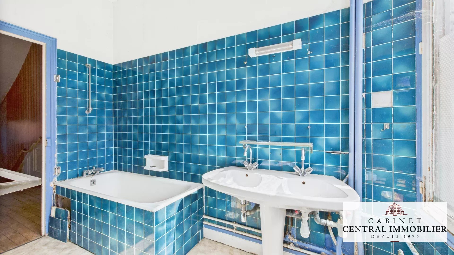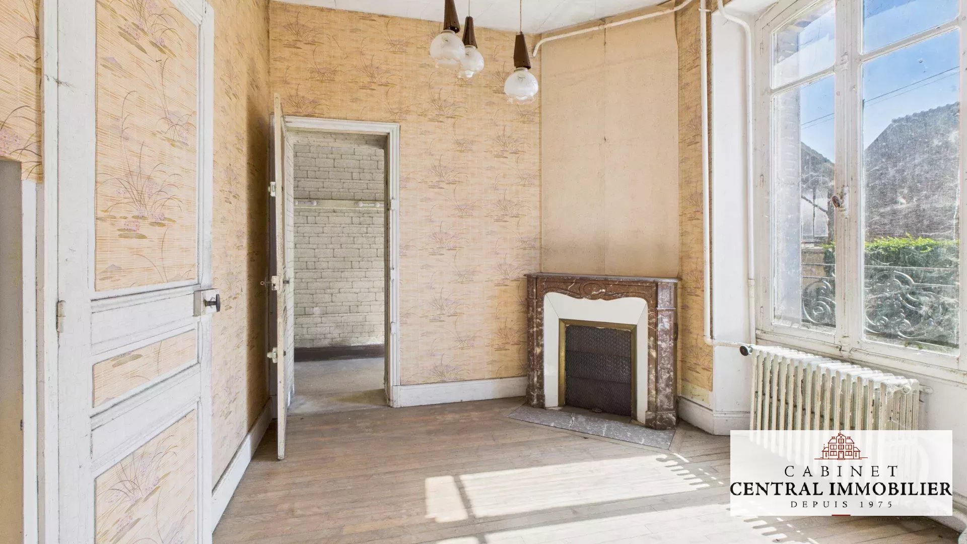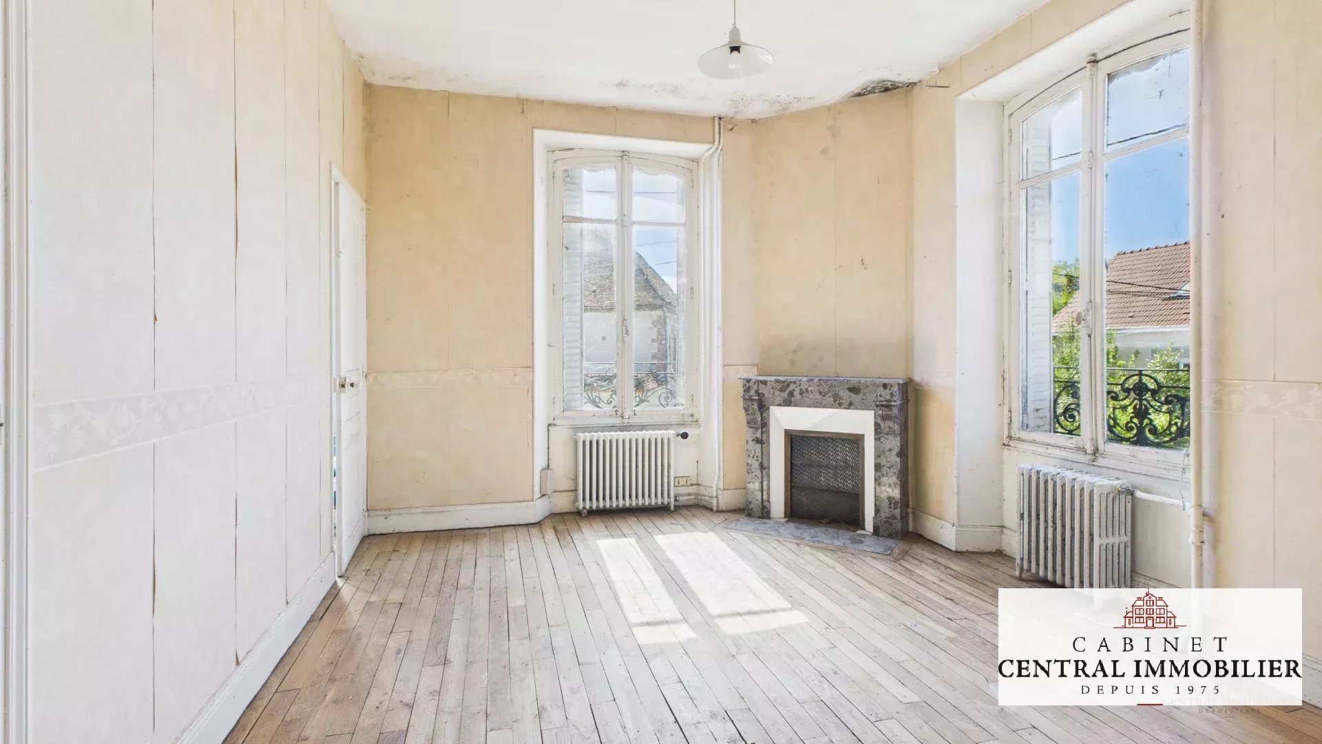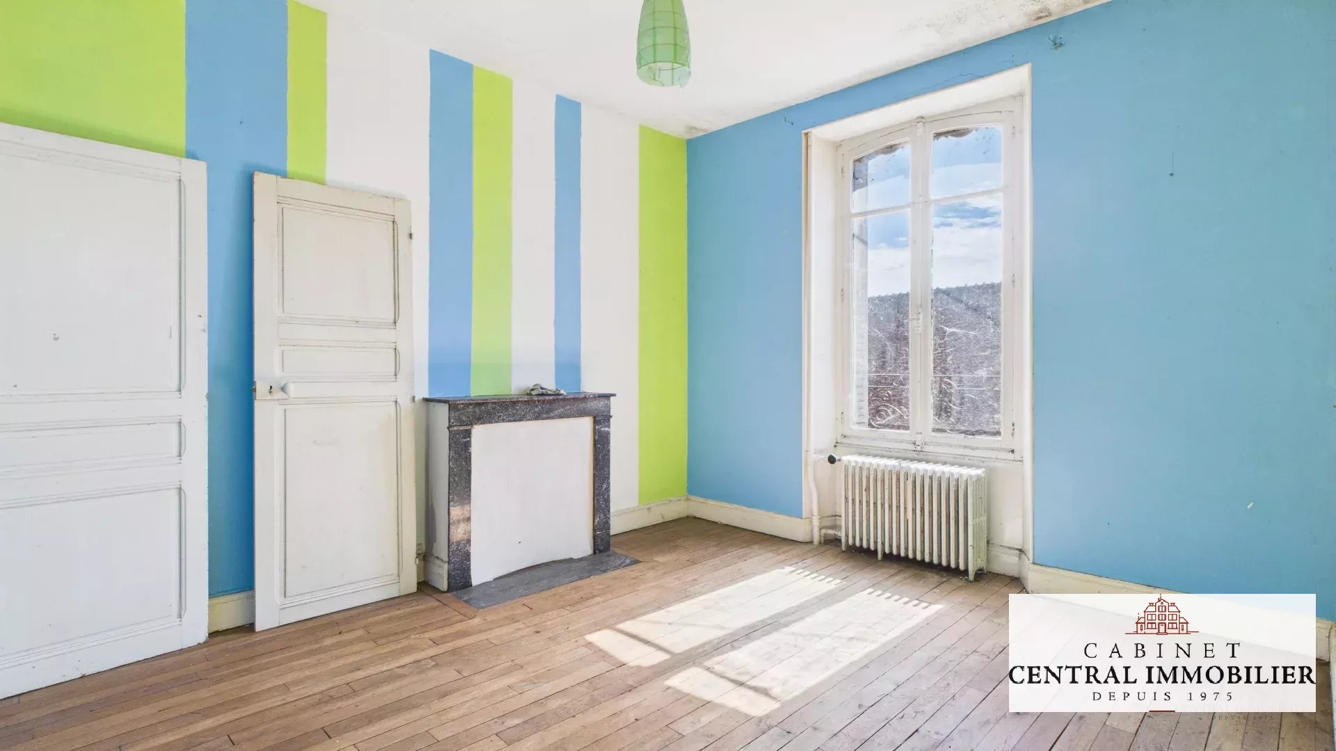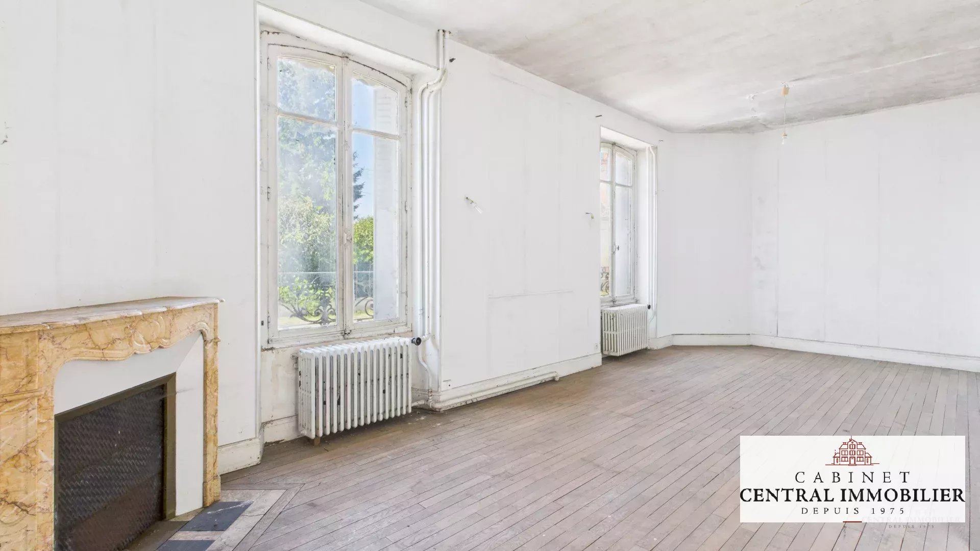 Maison de maître de 1907 comprenant : une entrée sol carreaux de ciment, une ancienne cuisine de 7.75 m², un séjour parqueté de 25.19 m² avec cheminée marbre, un bureau parqueté de 10.44 m² avec cheminée marbre, une deuxième entrée de 6.22 m² avec des placards, un salon (ou chambre) carrelé de 18 m² avec cheminée foyer ouvert et porte fenêtre accès jardin, un WC. Au premier étage : un palier parqueté desservant une chambre parquetée de 12.50 m² avec un point d'eau et cheminée marbre, une chambre parquetée de 15.11 m² avec cheminée marbre, une chambre parquetée de 10.66 m² avec des placards, une chambre parquetée de 15.75 m² avec cheminée marbre, une salle de bain de 5 m² avec double vasque. Au deuxième étage : un grenier aménageable avec une pièce comprenant un point d'eau. Système de chauffage hors service, simple vitrage. Petite maison à rénover de 2 pièces de 22.39m² et 17.91m² avec cheminée. 3 caves. Chaufferie de 6.28 m². Portail manuel. Auvent. Garage avec porte manuelle. Terrain clos de 1092m²