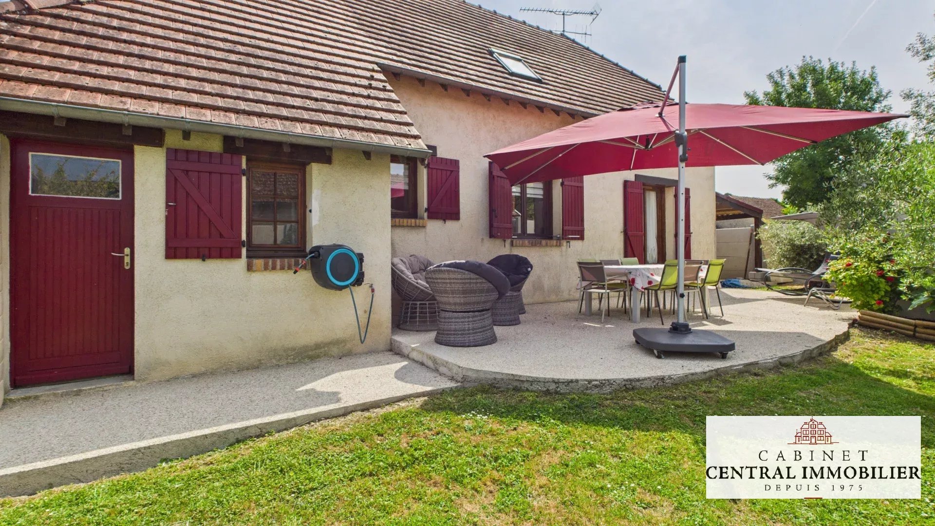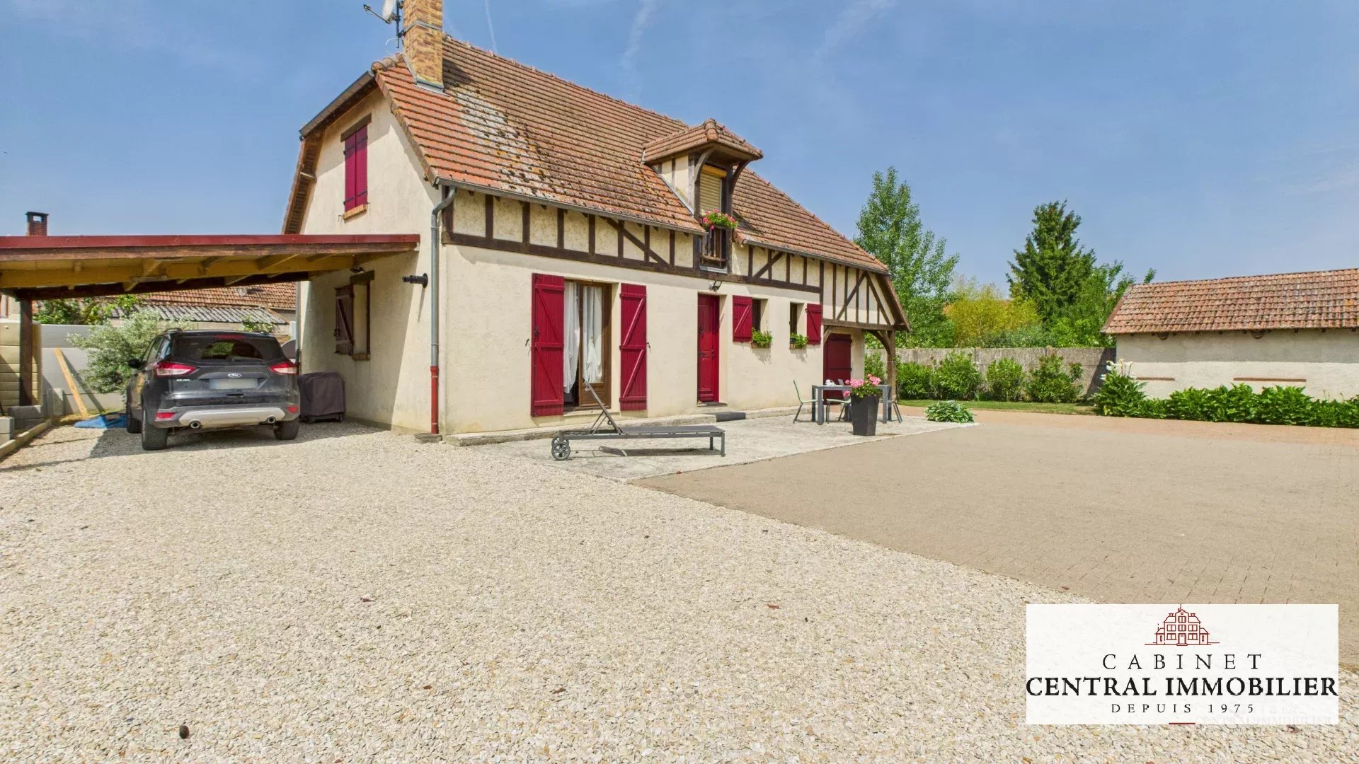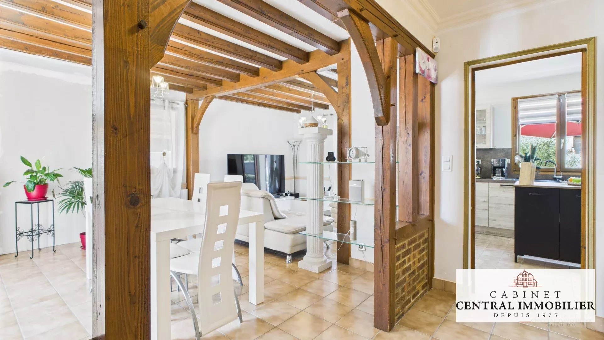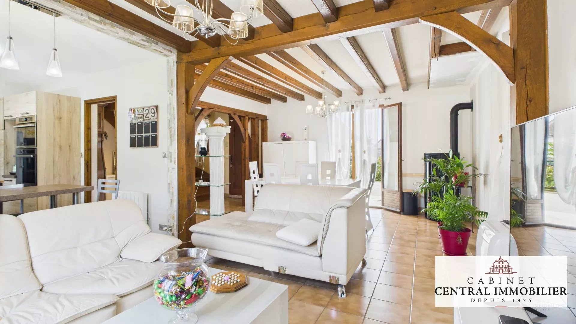 Coup de cœur assuré pour cette charmante maison comprenant une entrée carrelée de 9.54m², un séjour/salon carrelée de 27.20m² avec poutres apparentes, poêle à granulés et portes-fenêtres accès terrasse, ouvert sur la cuisine aménagée et équipée de 15.68m² avec un coin cellier /buanderie carrelé, un WC avec lave mains carrelé. 1er étage: un palier desservant une chambre avec vélux de 20.77m² ,un WC, une salle d'eau carrelée avec sèche-serviettes de 6.91m², une chambre parquet flottant de 9.48m², une chambre de 18m² avec placards. Double vitrage, chauffage électrique. Terrain clos de 676m² avec garage (porte manuelle), 2 remises en dur, carport, deux agréables terrasses.