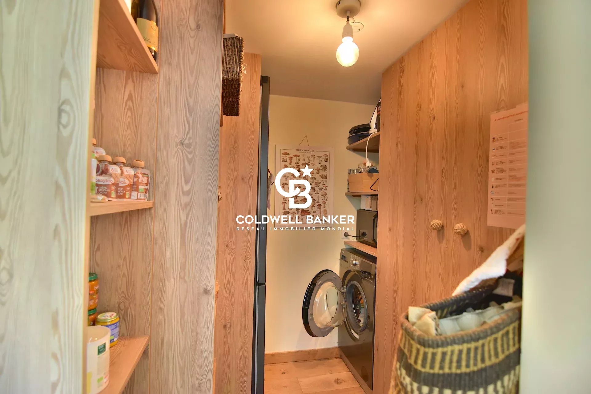 Cet appartement situé à Argentière, entièrement rénové avec goût, d’une surface de 74,57 m², est situé au rez-de-jardin d’une maison mitoyenne, dans une petite copropriété du secteur des Grassonnets. Il se compose d’un sas d'entrée avec rangements, d'une cuisine équipée ouverte sur une agréable pièce de vie avec poêle à bois, donnant un accès direct à une belle terrasse et à un jardin privatif avec un sauna. Il bénéficie d'une très belle vue sur le Mont Blanc. Un cellier/buanderie, une salle de bains, un espace de rangement ainsi que deux chambres complètent ce bien. En annexe : un garage séparé et fermé. Charges de 16€/mois comprenant l'assurance de copropriété.