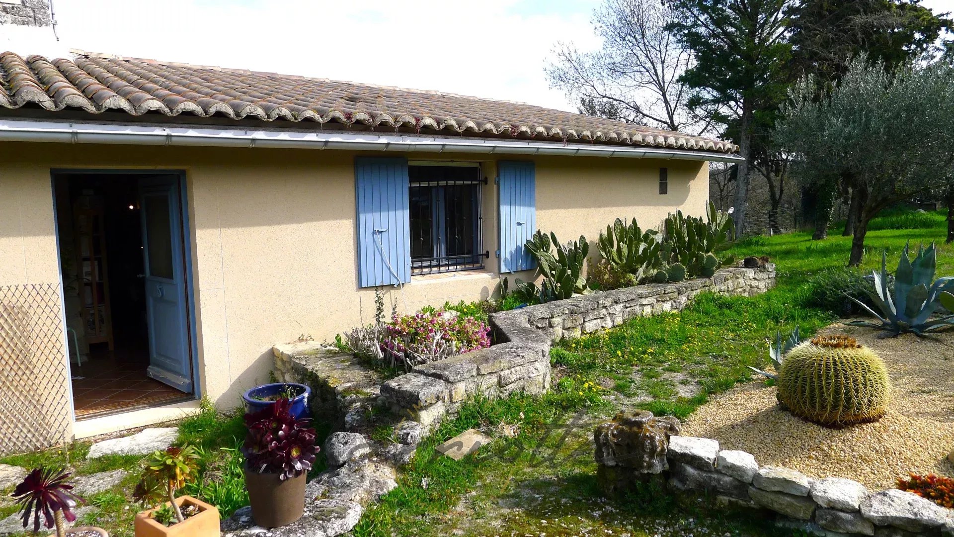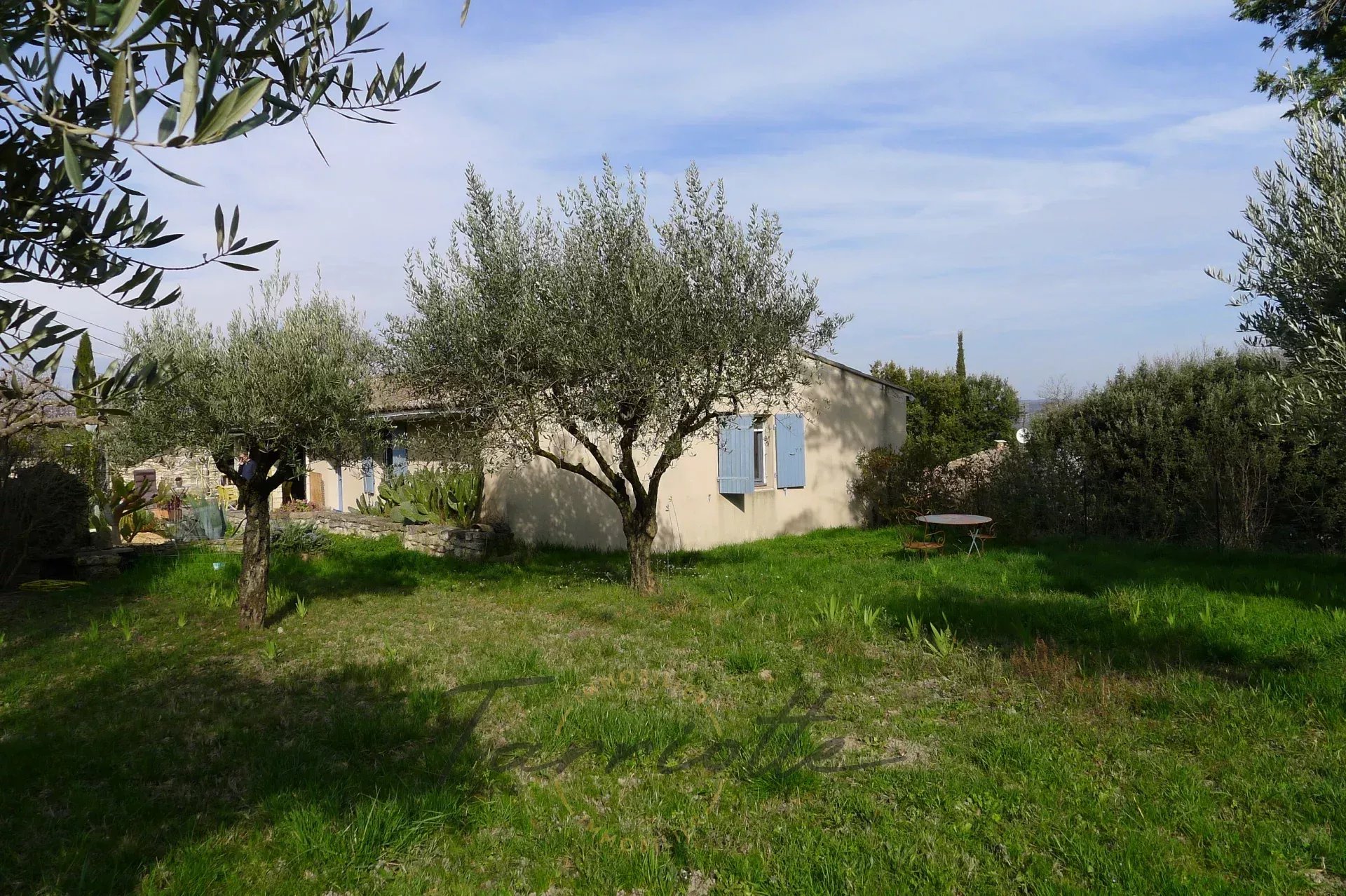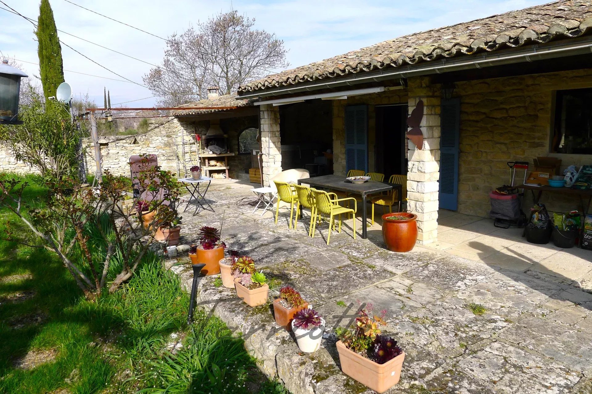 Chantemerle les Grignan, En bordure d'un charmant village provençal. Maison ancienne en pierre agrandie en 2006, elle développe coté Sud 130m² habitables de plain pied sur le jardin, une terrasse couverte avec spa, agréable et protégée du mistral, une belle pièce de vie lumineuse avec poêle à bois et climatisation, trois chambres, plus un studio indépendant pouvant être loué. Garage /atelier de 42m², le terrain abrite de beaux oliviers, l'environnement est paisible tout en n'étant pas isolé. C'est une maison confortable, sans escaliers, qui vous permettra d'accueillir facilement famille et amis à 10 minutes de Grignan.