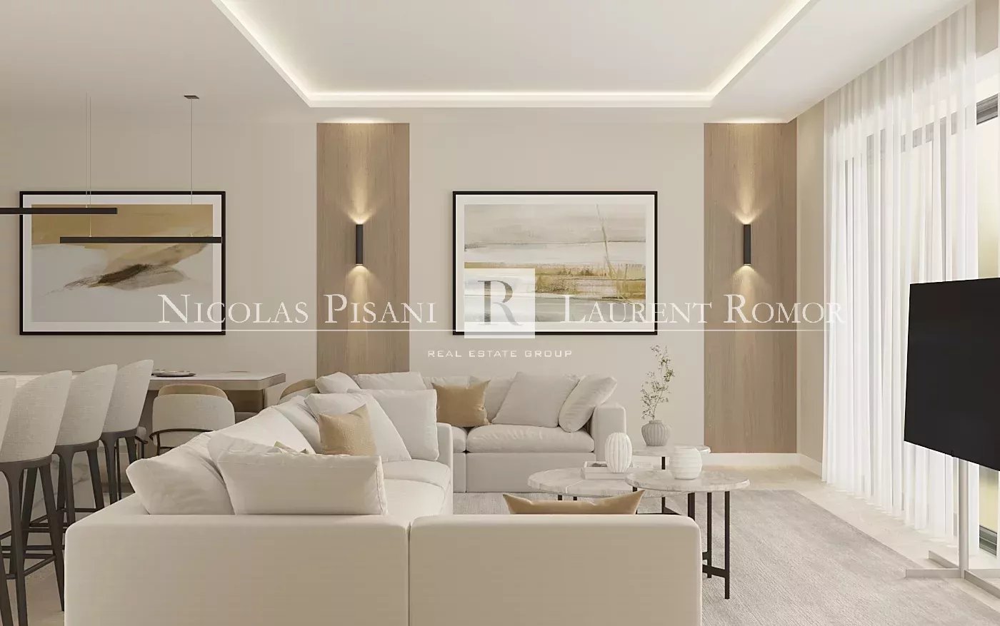 Dans un ensemble immobilier de prestige situé à EZE, à proximité de la principauté de MONACO, bel appartement d'environ 121m², terrasse d'environ 16m², le tout offrant une vue panoramique sur la mer et le Village d'EZE. l'appartement sera distribué comme suit : Entrée, cuisine /séjour (46 m²), 3 chambres, 3 salles de bains, wc, dégagement, Jardin, terrasse. 2 garages Résidence de prestige avec au total 5 appartements. EN COURS DE CONSTRUCTION - LIVRAISON JUIN 2026. Honoraires à la charge du Vendeur