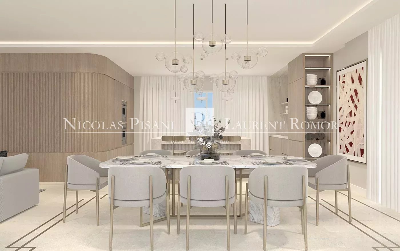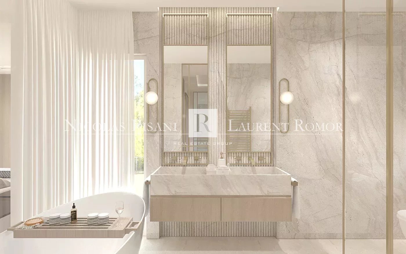 Dans un ensemble immobilier de prestige situé à EZE, à proximité de la principauté de MONACO, bel appartement d'environ 188m², accompagné d'un jardin privatif d'environ 940 m², piscine privée, le tout offrant une vue panoramique sur la mer et le Village d'EZE. l'appartement sera distribué comme suit : Entrée, séjour (60m²), 3 chambres, 3 salles de bains, cuisine, wc, dégagement, buanderie, Jardin, terrasse, piscine. 4 garages Résidence de prestige avec au total 5 appartements. EN COURS DE CONSTRUCTION - LIVRAISON JUIN 2026 Honoraires à la charge du Vendeur