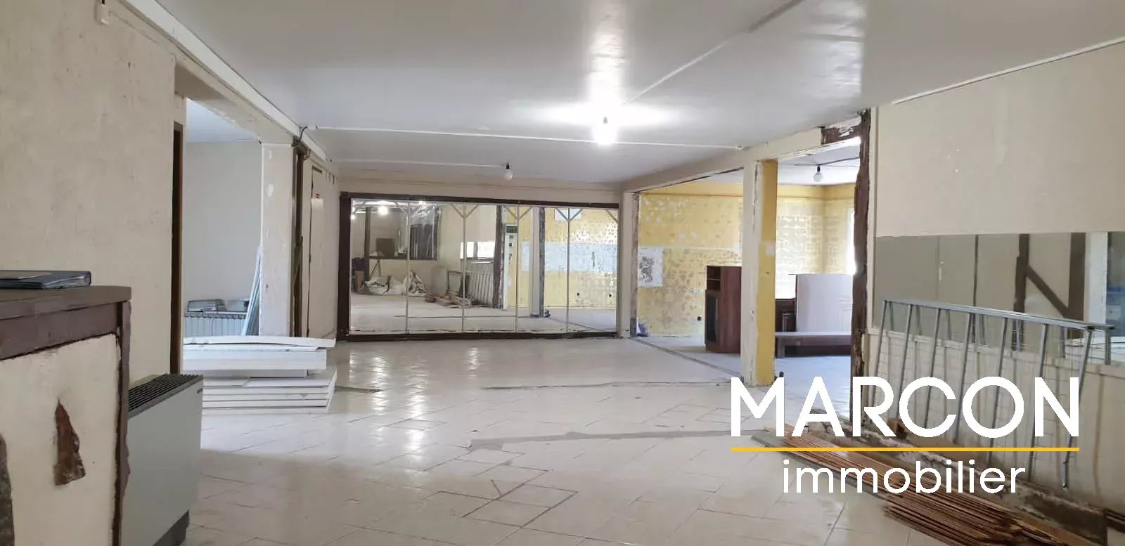 Le rez de chaussée comprend un local commercial de 250 m², accessible handicapés avec une terrasse avant et une autre sur l'arrière. Ce local est équipé de toilettes.