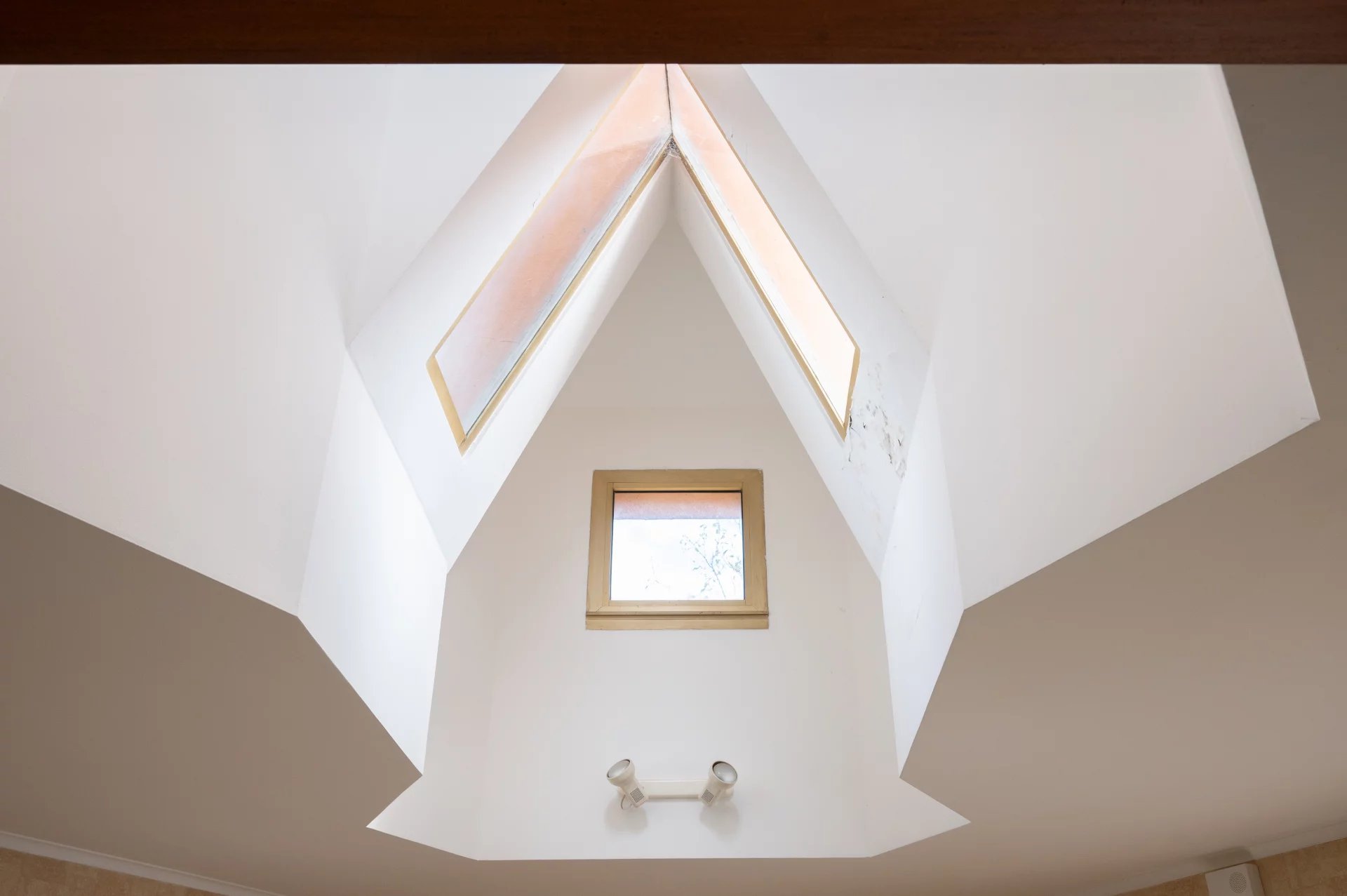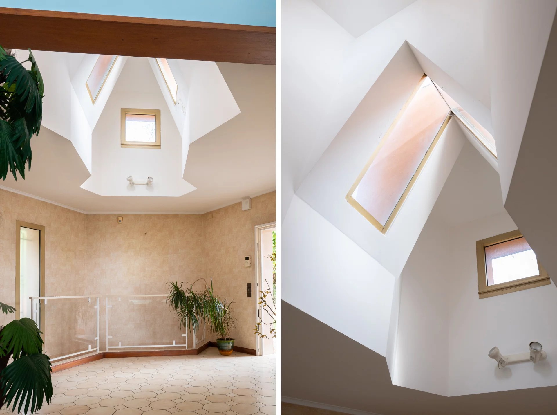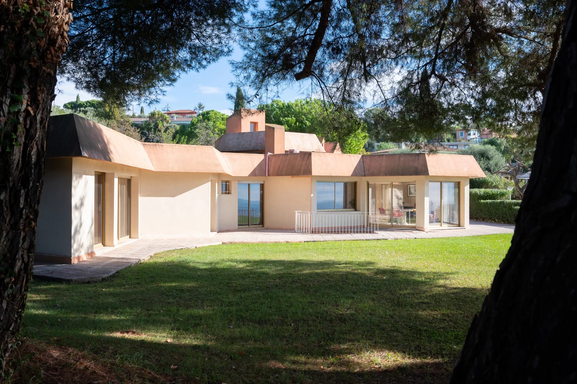 Cette villa de 1988 bénéficie d’une vue unique sur Nice et la Baie des Anges. Les formes hexagonales sont déclinées à l’extrême de l'agencement aux luminaires formant une architecture remarquable.