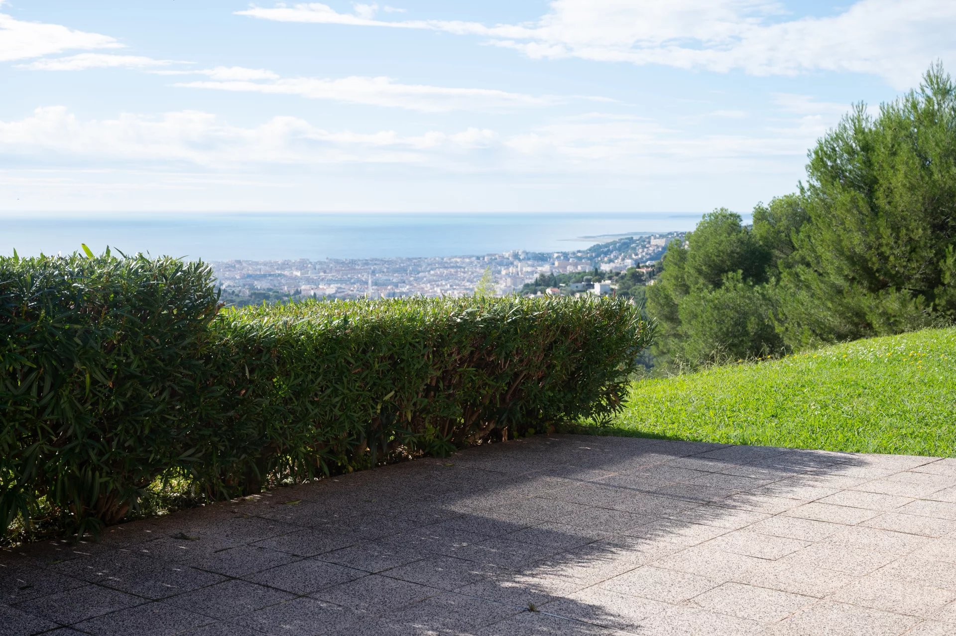 Située sur les hauteurs de Nice, dans le quartier de Rimiez, au coeur d’un domaine clos, cette maison au style moderne et aux formes géométriques est l’oeuvre de l’architecte Patrick CAVENEL.
