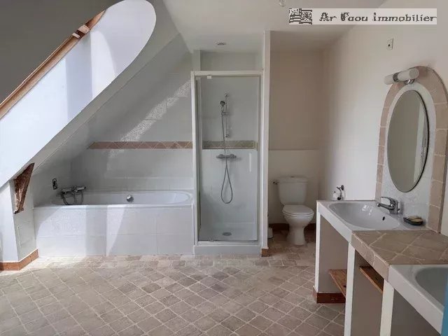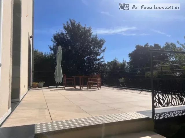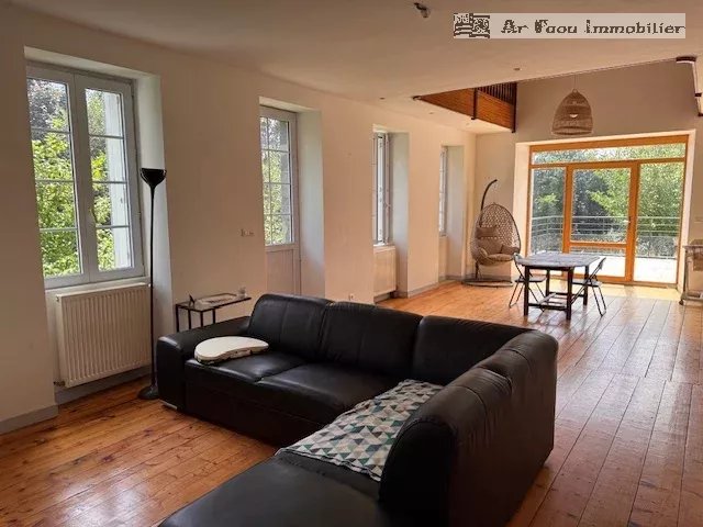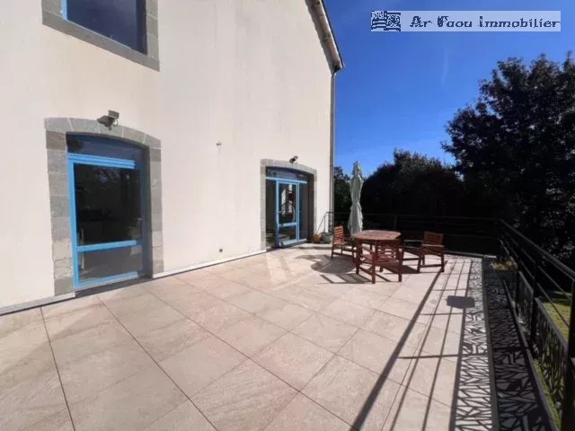 Proche du Faou, au centre de Quimerch, situé dans un environnement calme et verdoyant, cet ancien presbytère entièrement rénové allie charme de l'ancien et confort moderne, développant plus de 200 m² habitables.