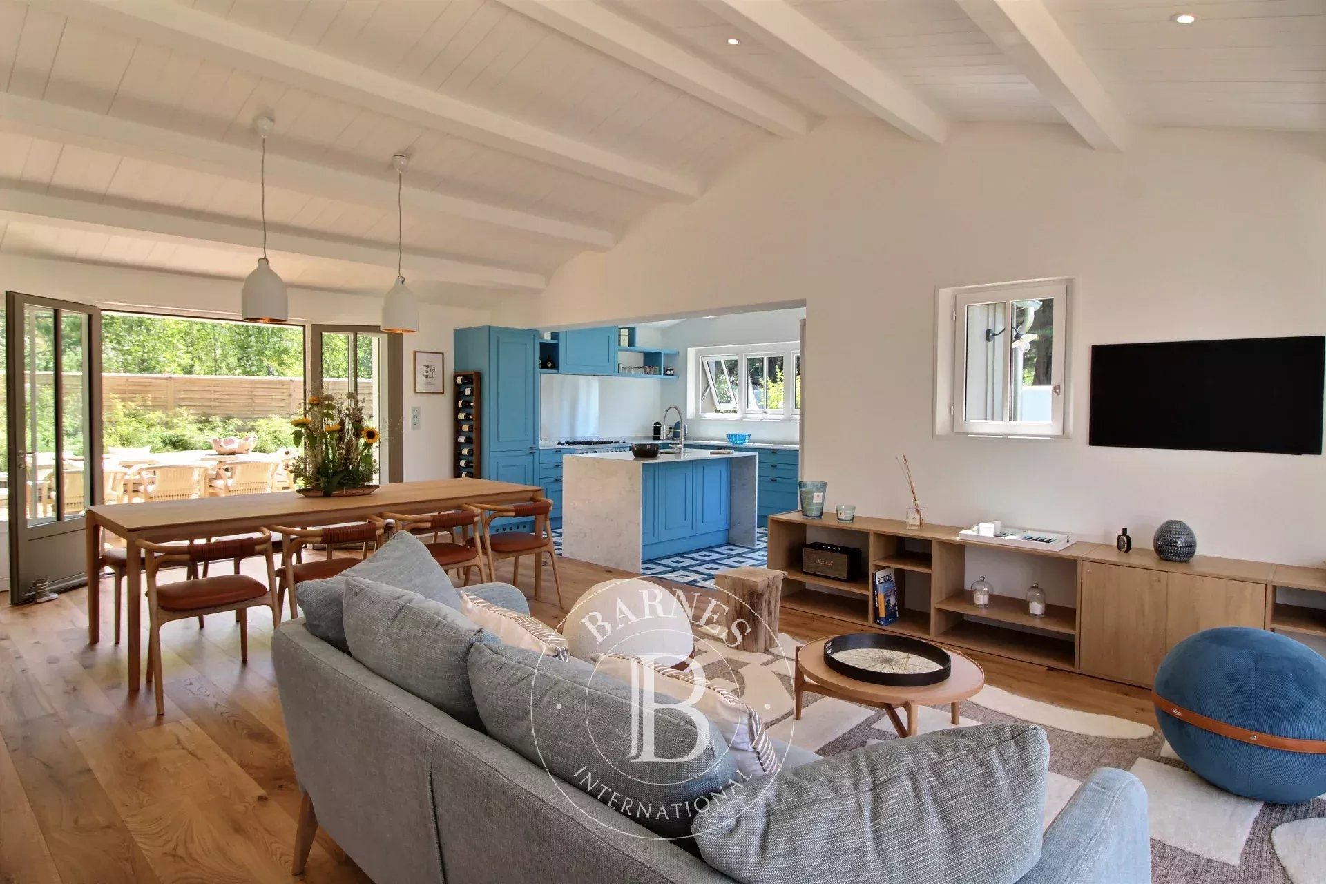Située à 2 pas de la plage, maison récente de 150 m2 offrant un séjour avec une cuisine ouverte aménagée et équipée. Une buanderie, 4 chambres et un bureau/dortoir, 4 salles d'eau. Parcelle de 880 m2 avec terrasses, piscine et stationnements.