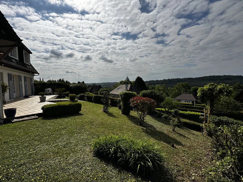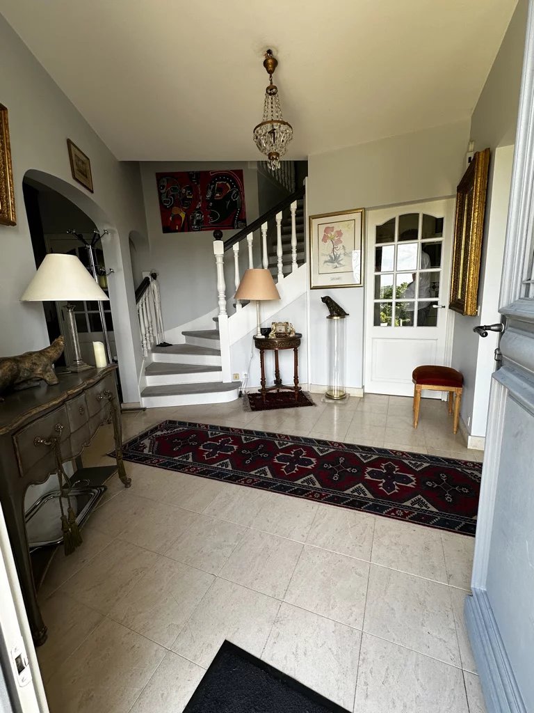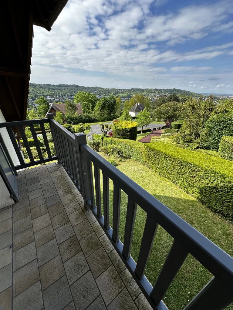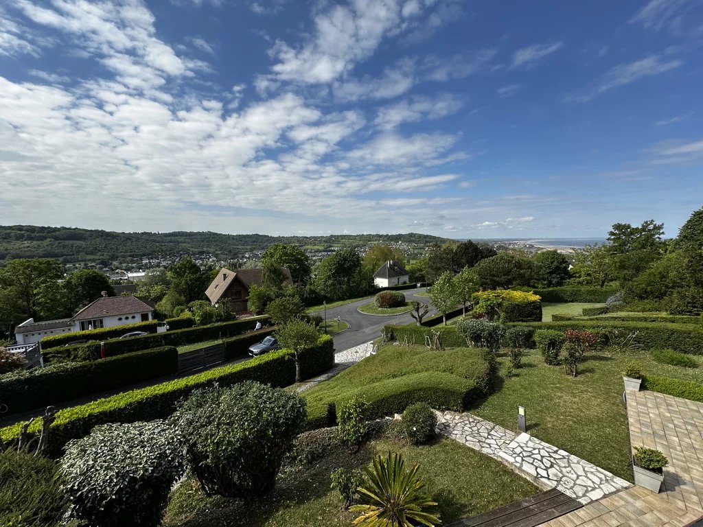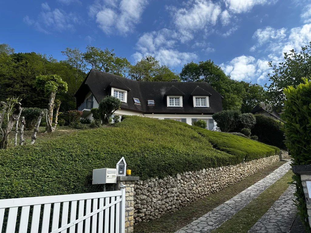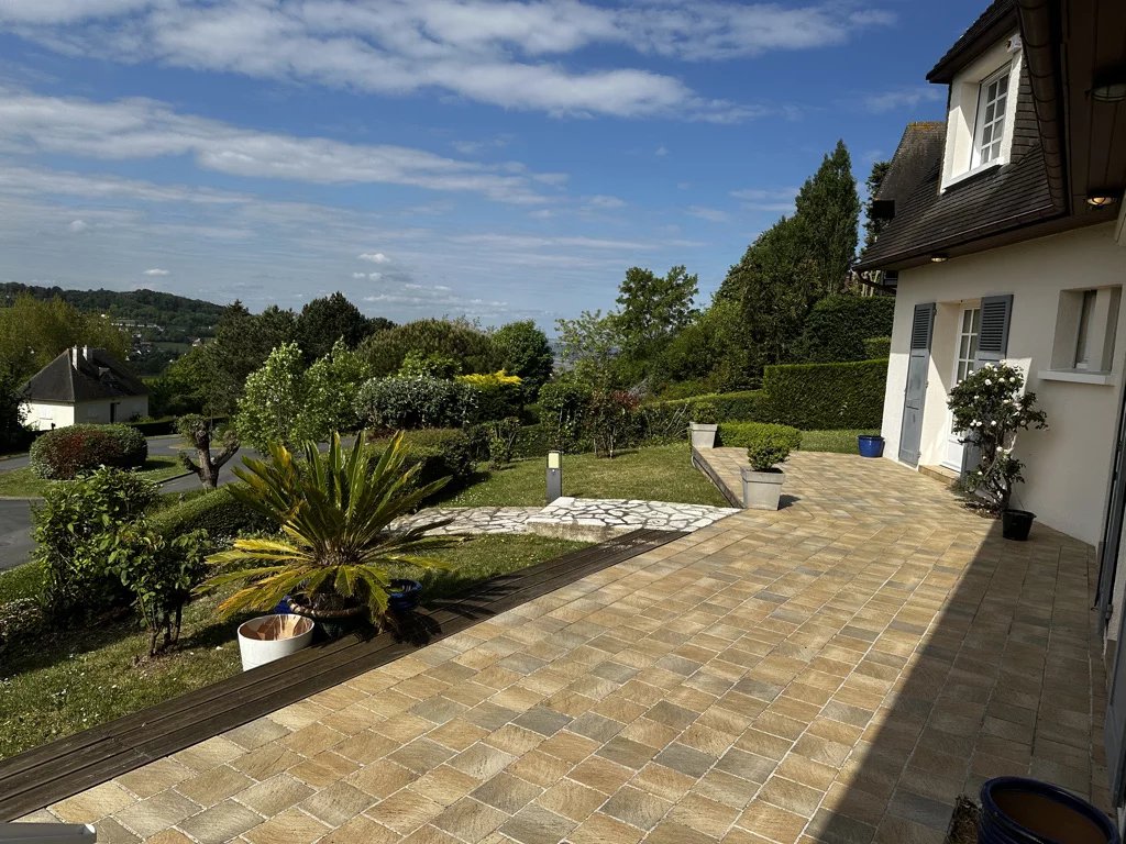 Dans domaine privé, au calme et dominant la côte fleurie, propriété d'environ 190 m2, sur 3 niveaux avec en rez de chaussée, une entrée avec penderie distribuant un salon avec cheminée et accès terrasse, une salle à manger, une cuisine aménagée-équipée, un w-c, une suite parentale avec bureau, chambre, rangement et salle de douche, w-c. À l'étage, trois chambres avec leur pièce d'eau, w-c et une chambre enfant qui complète l'ensemble. Sous sol total avec double garage. Parcelle d'environ 1 600m2 arborée avec portail électrique et magnifique vue dégagée. À VOIR RAPIDEMENT...