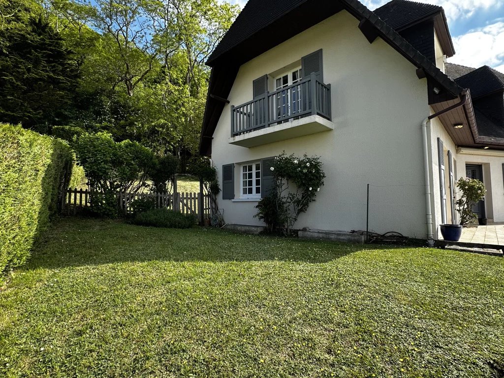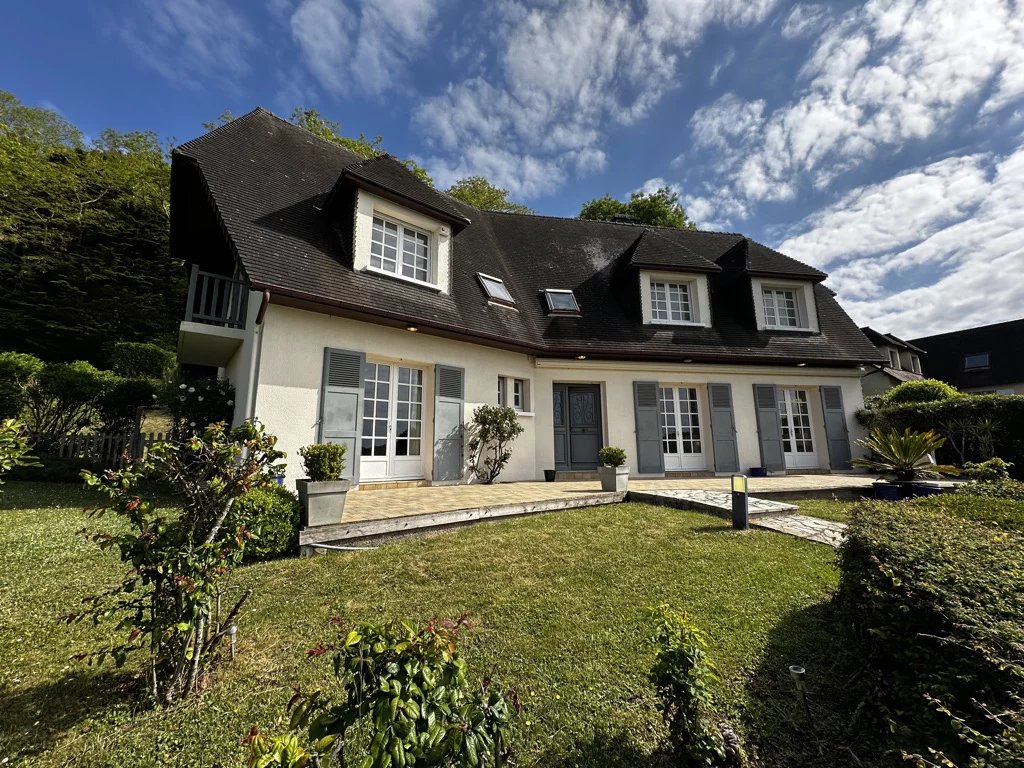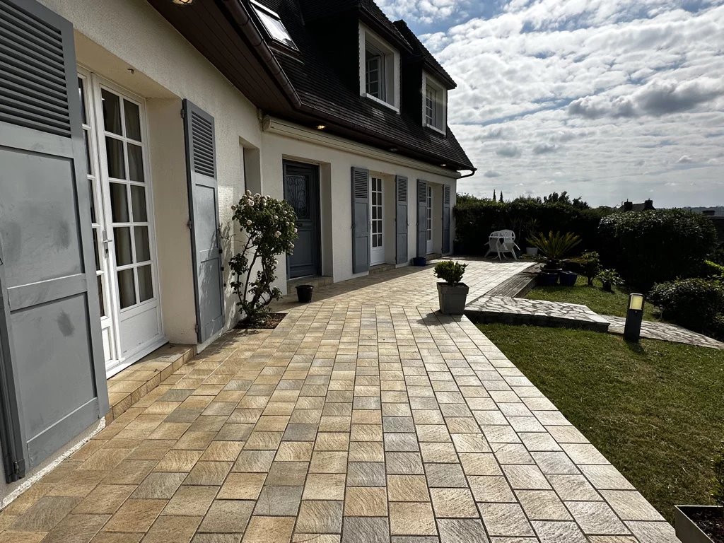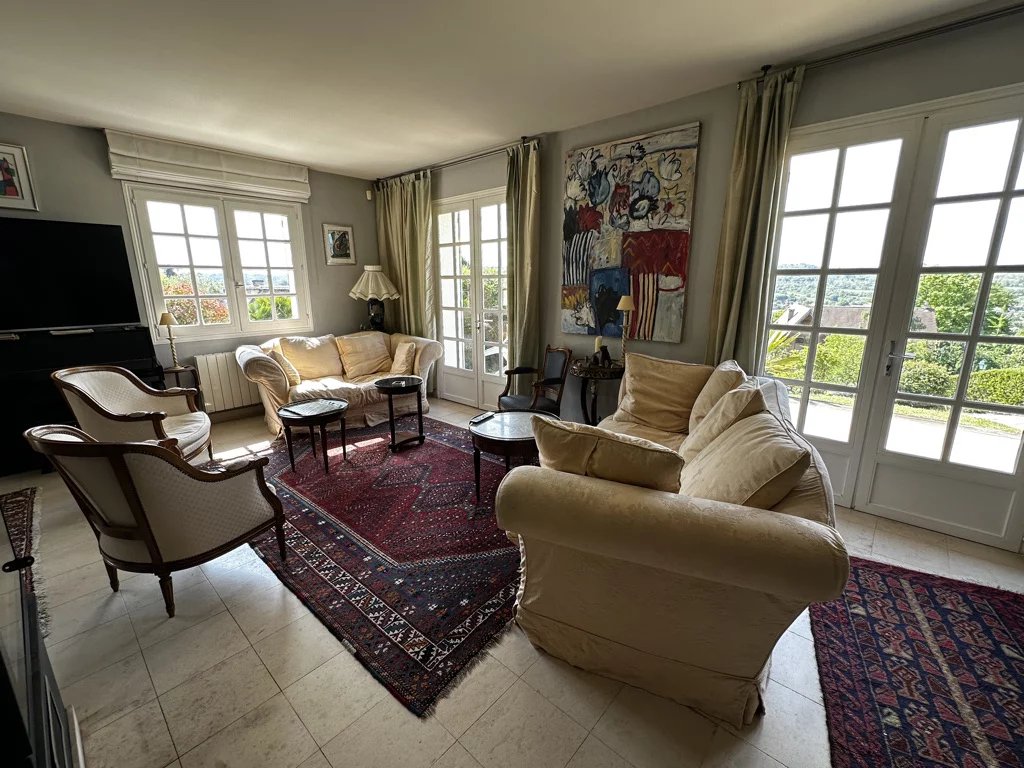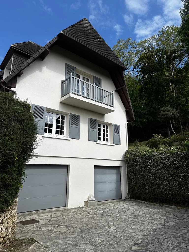 Dans domaine privé, au calme et dominant la côte fleurie, propriété d'environ 190 m2, sur 3 niveaux avec en rez de chaussée, une entrée avec penderie distribuant un salon avec cheminée et accès terrasse, une salle à manger, une cuisine aménagée-équipée, un w-c, une suite parentale avec bureau, chambre, rangement et salle de douche, w-c. À l'étage, trois chambres avec leur pièce d'eau, w-c et une chambre enfant qui complète l'ensemble. Sous sol total avec double garage. Parcelle d'environ 1 600m2 arborée avec portail électrique et magnifique vue dégagée. À VOIR RAPIDEMENT...