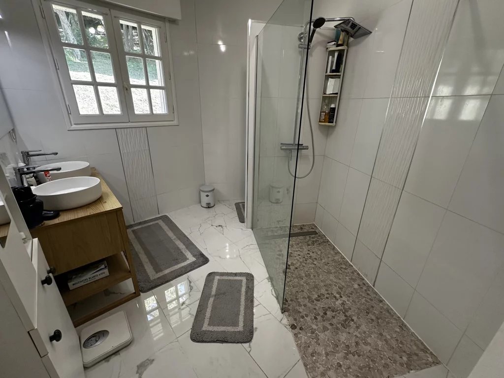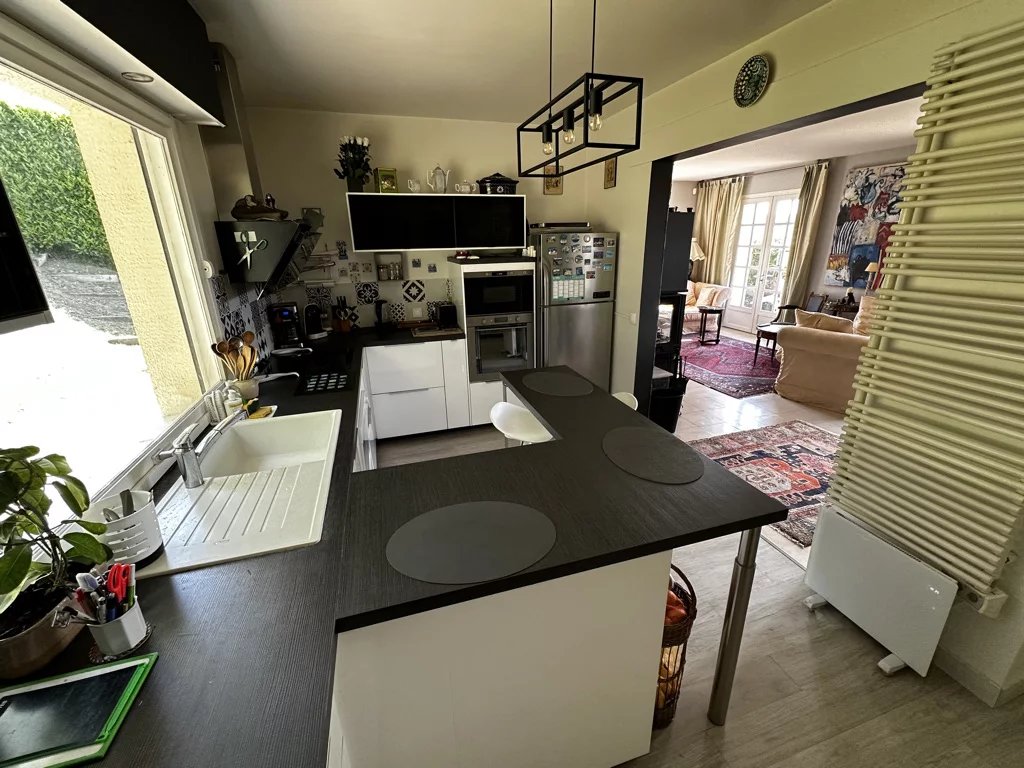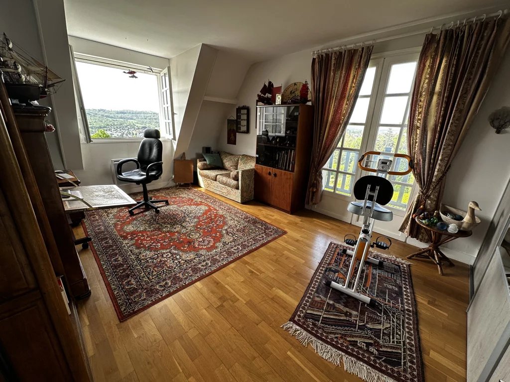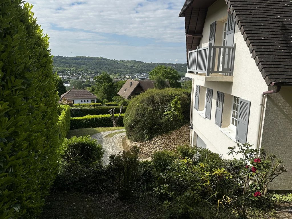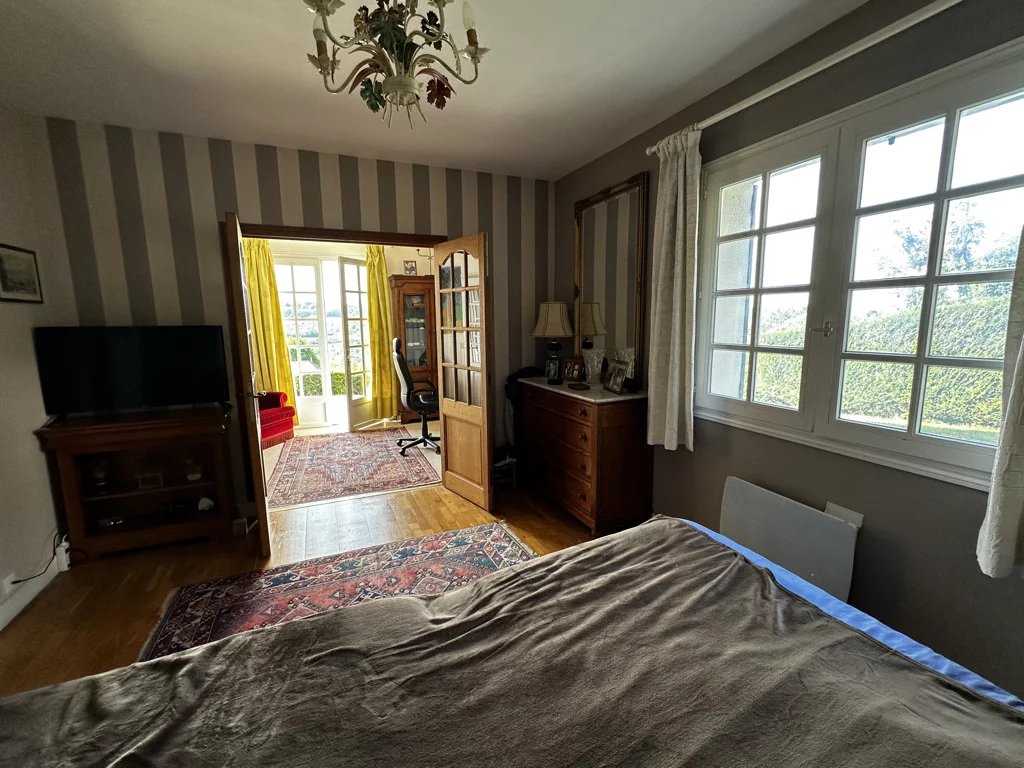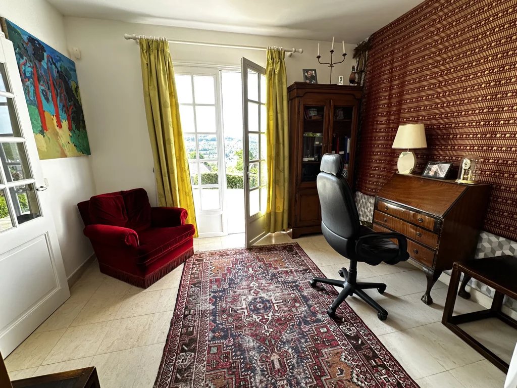 Dans domaine privé, au calme et dominant la côte fleurie, propriété d'environ 190 m2, sur 3 niveaux avec en rez de chaussée, une entrée avec penderie distribuant un salon avec cheminée et accès terrasse, une salle à manger, une cuisine aménagée-équipée, un w-c, une suite parentale avec bureau, chambre, rangement et salle de douche, w-c. À l'étage, trois chambres avec leur pièce d'eau, w-c et une chambre enfant qui complète l'ensemble. Sous sol total avec double garage. Parcelle d'environ 1 600m2 arborée avec portail électrique et magnifique vue dégagée. À VOIR RAPIDEMENT...